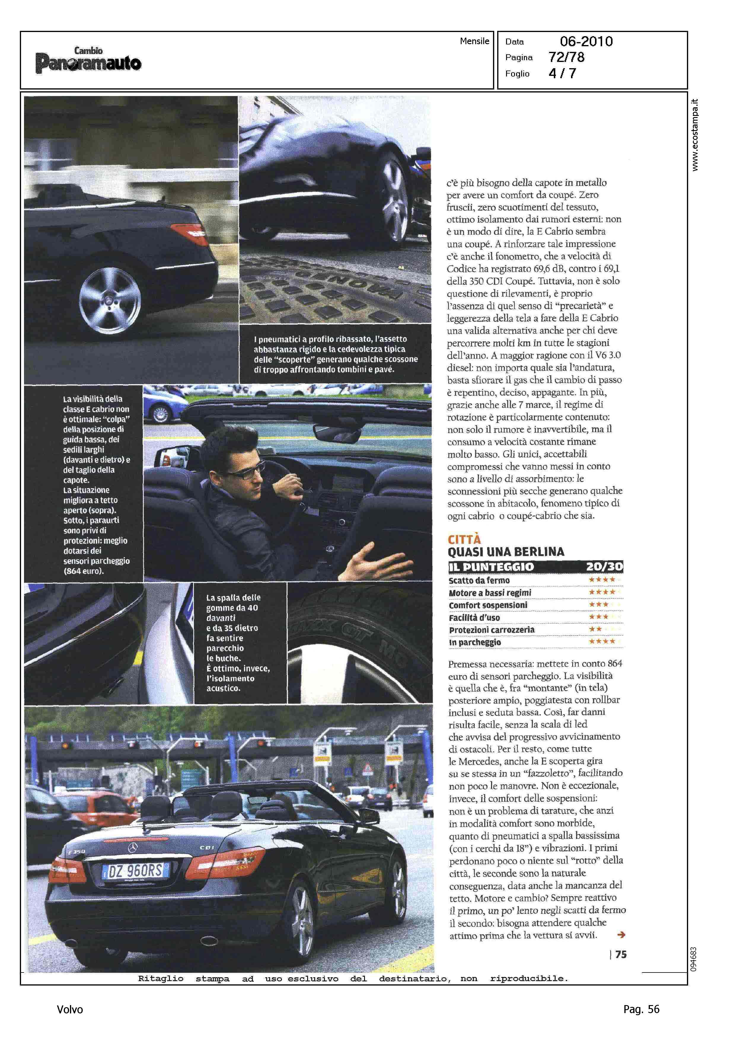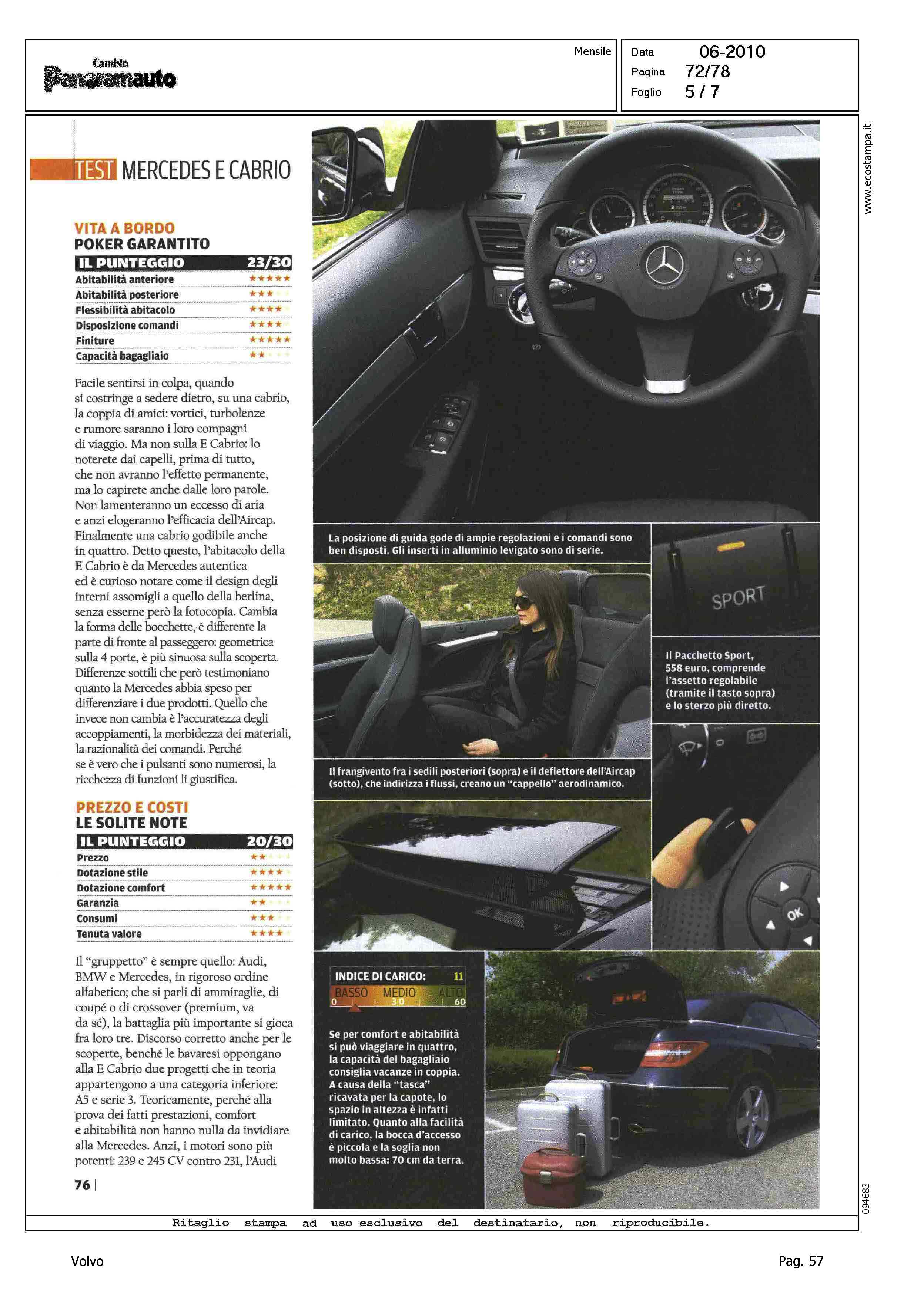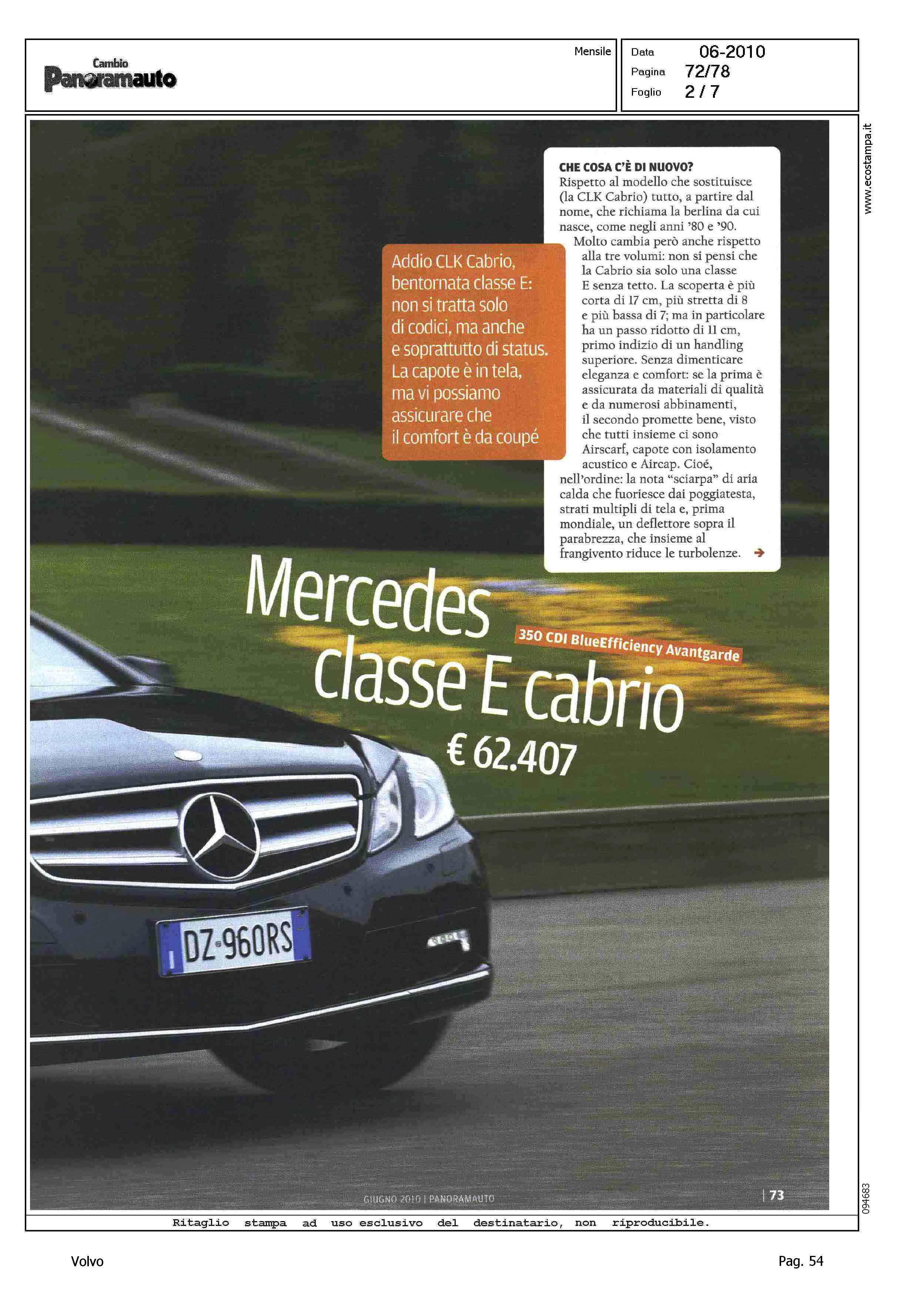 Highlight: VOLVO C70 CONVERTIBLE 2.4 D5 20V SUMMUM - SCHEDA TECNICA - TABELLA "IN PIU', IN MENO" - COMPETITOR VS CLASSE E CABRIO 350 CDI BLUEFFICIENCY AVANTGARDE
