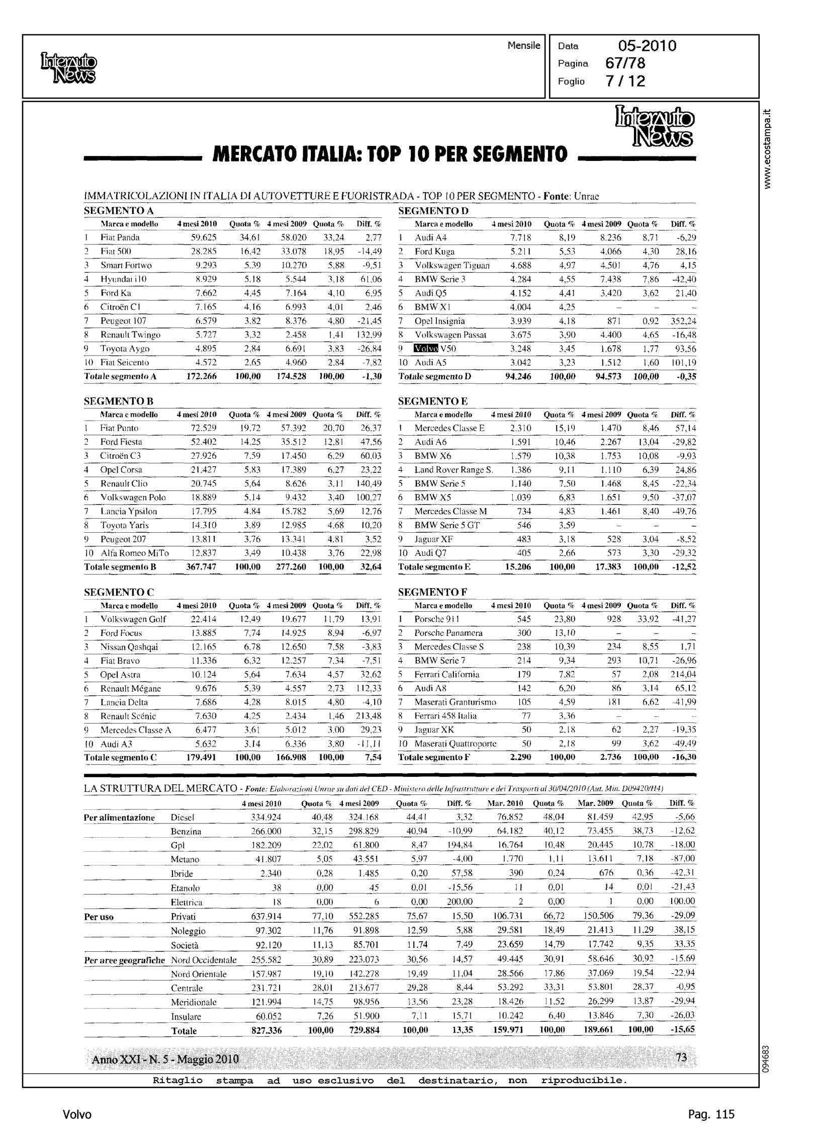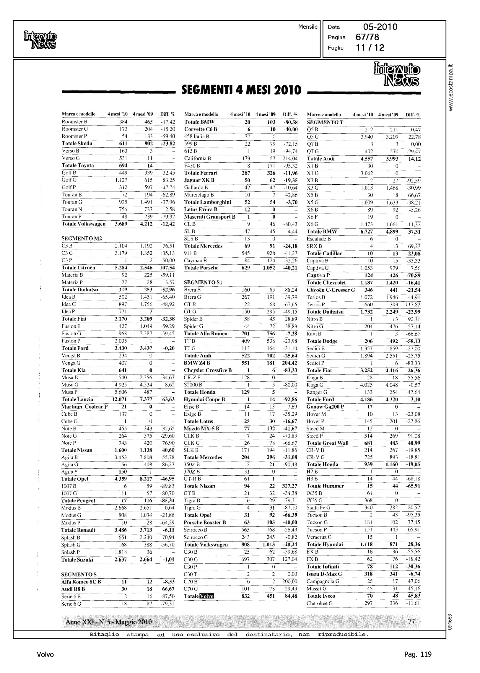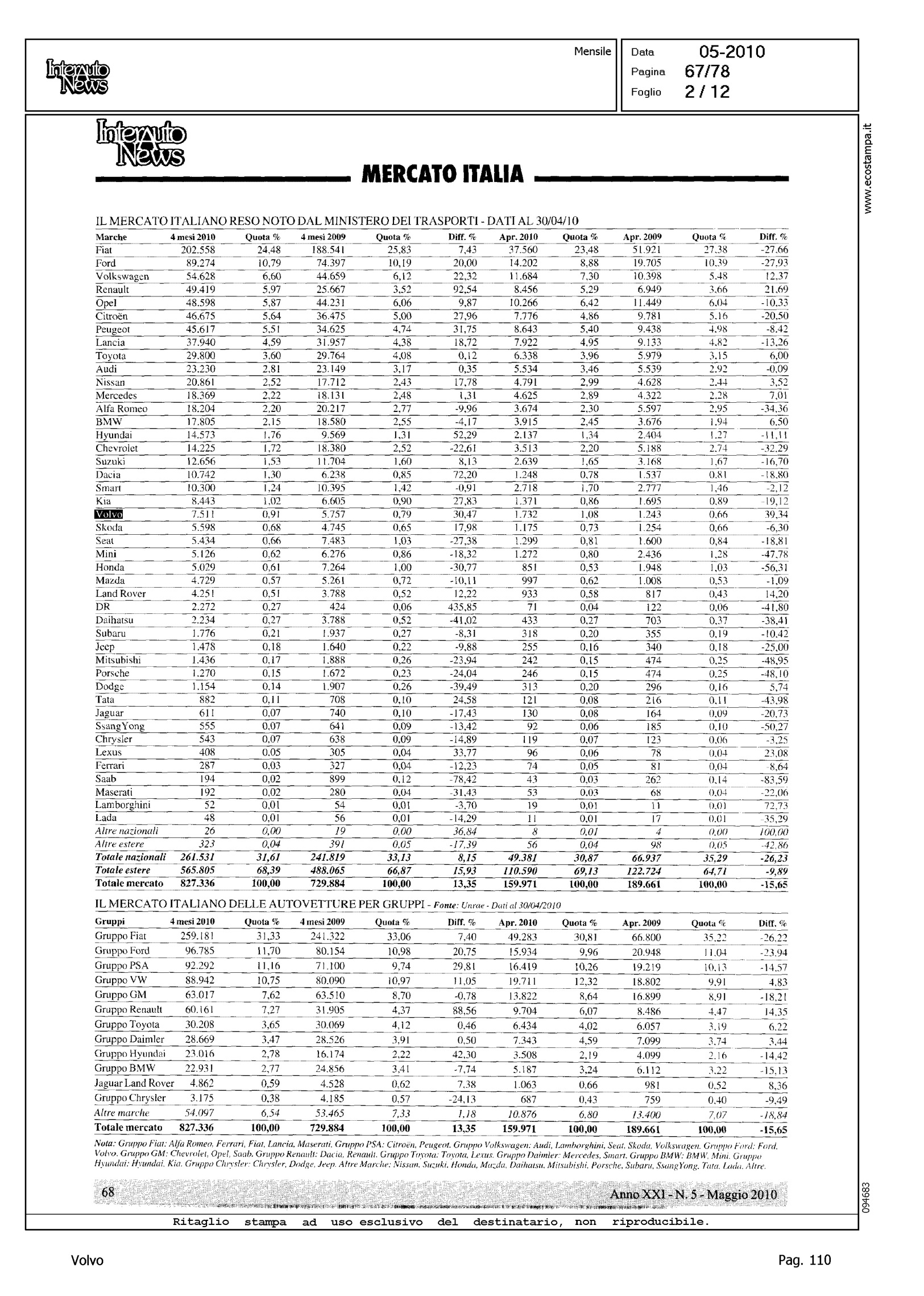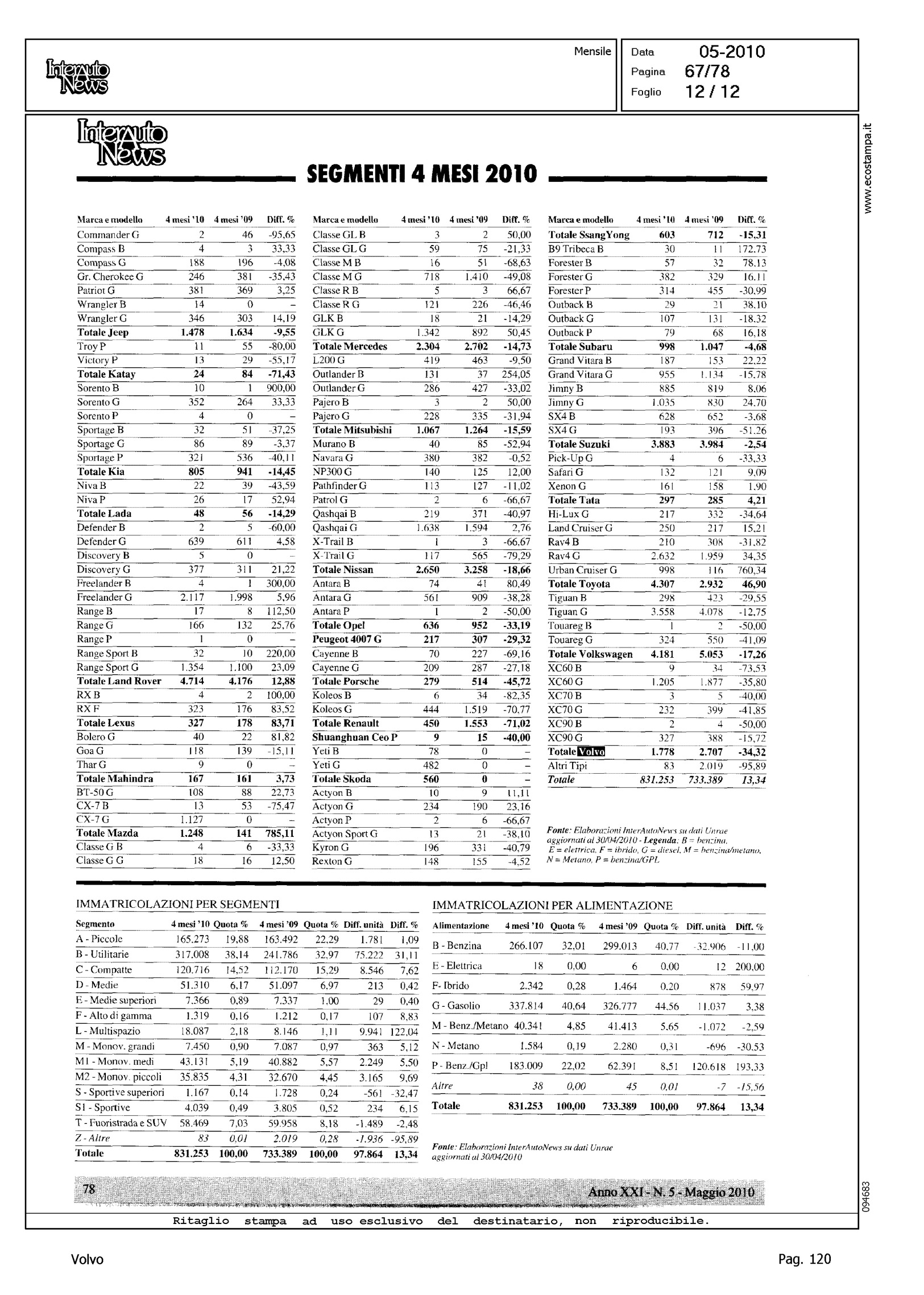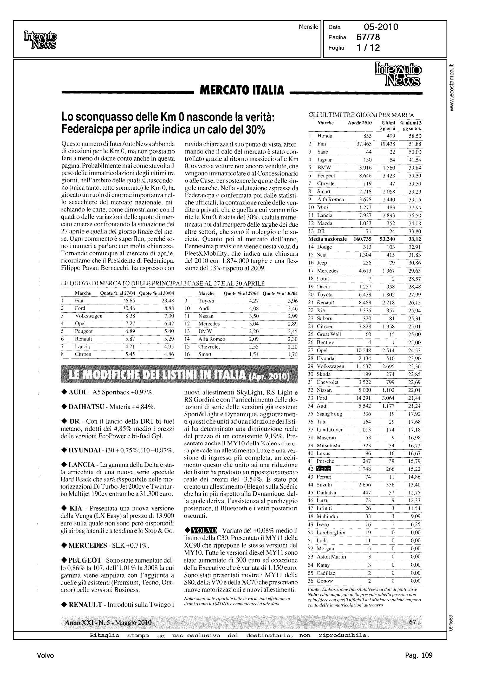 Author: Line: Corporate Model: Corporate Subject: - Title: LO SCONQUASSO DELLE KM 0 NASCONDE LA VERITA': FEDERAICPA PER APRILE INDICA UN CLO DEL 30%Highlight: TABELLE