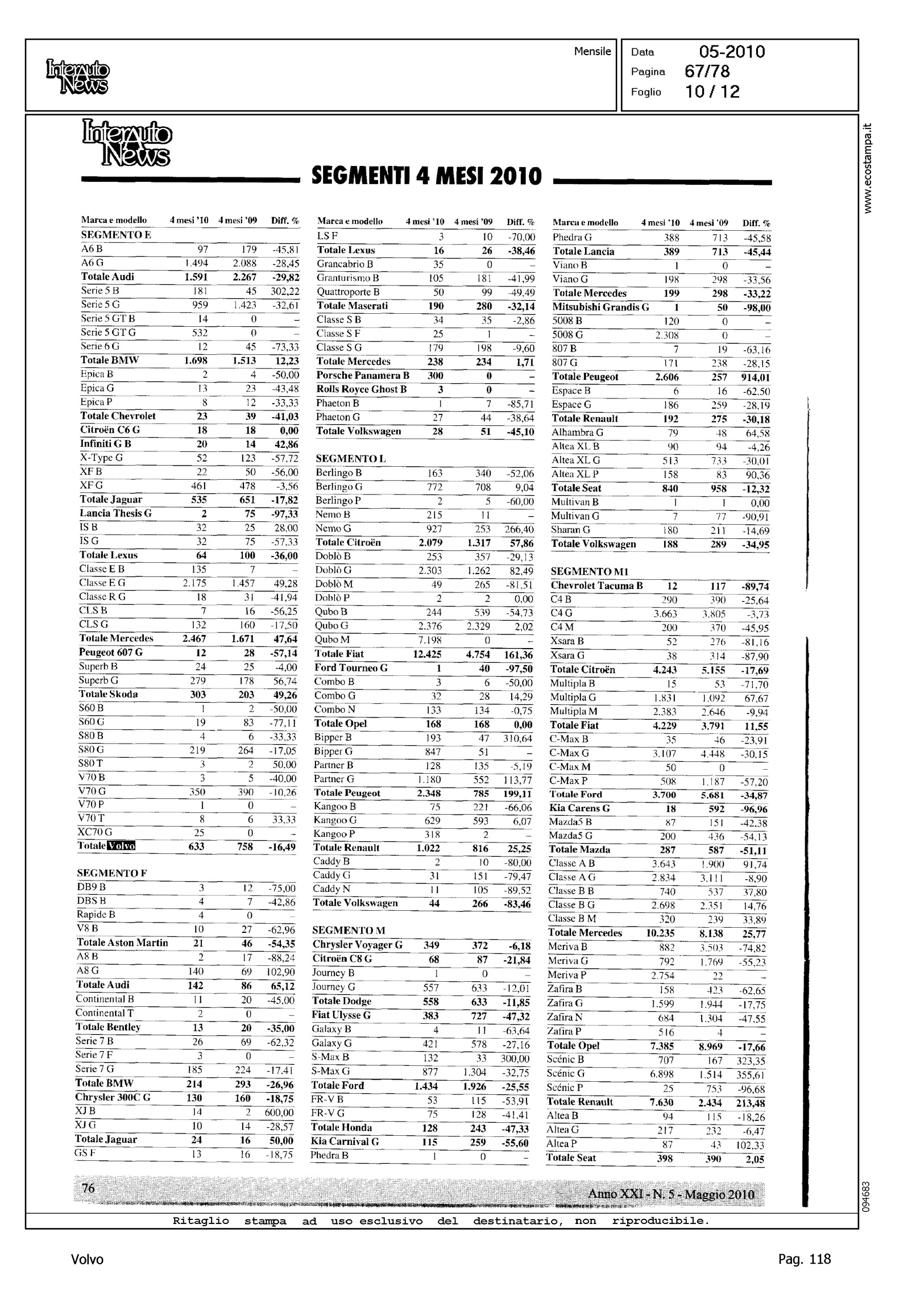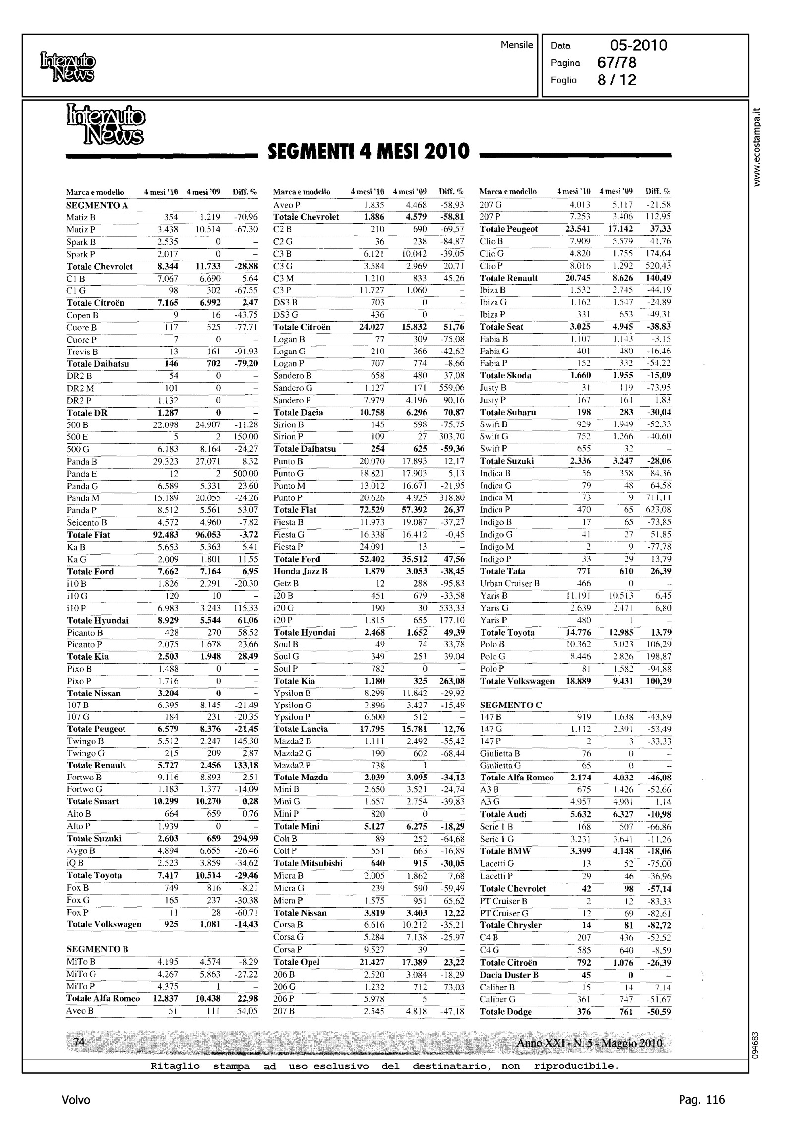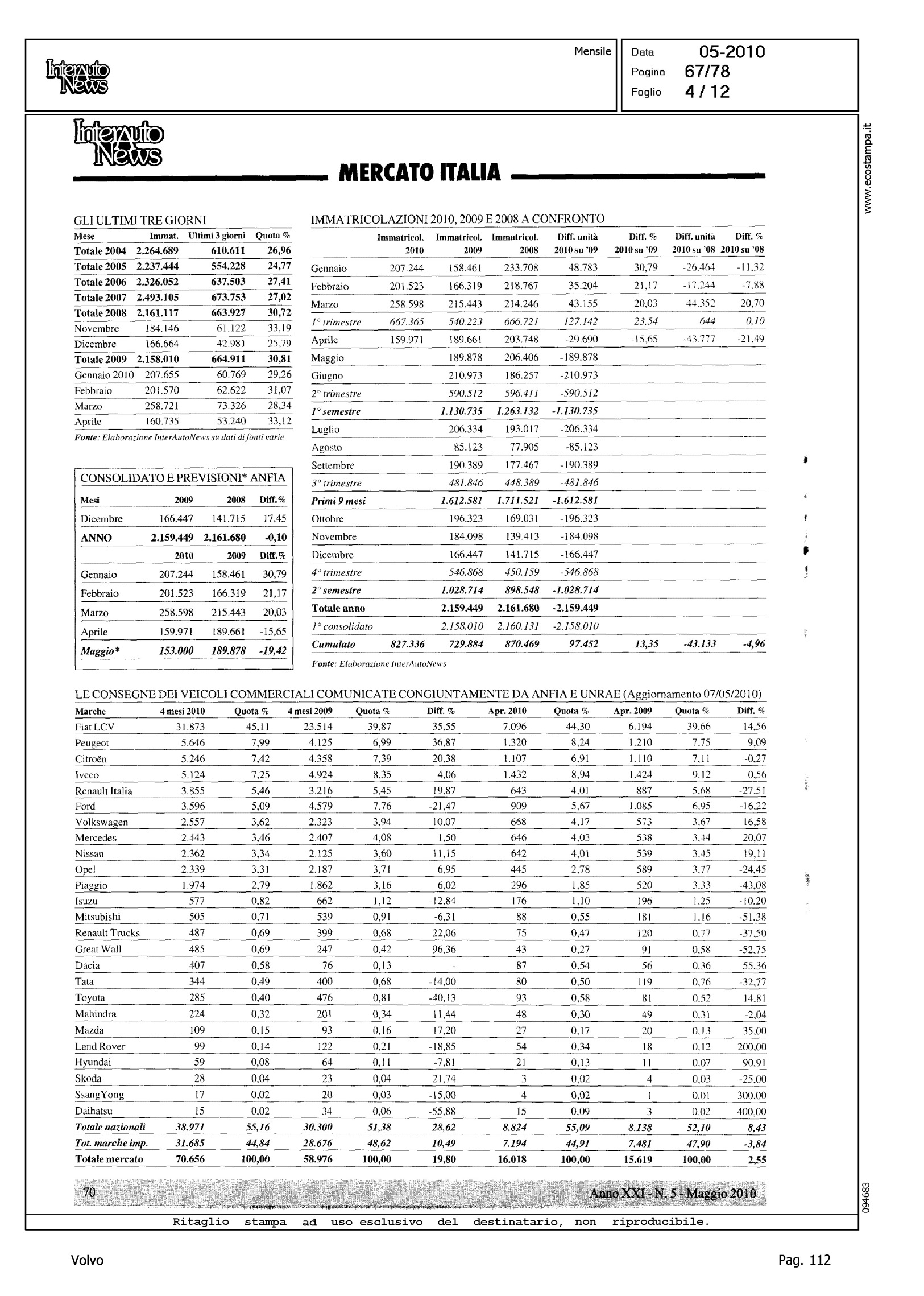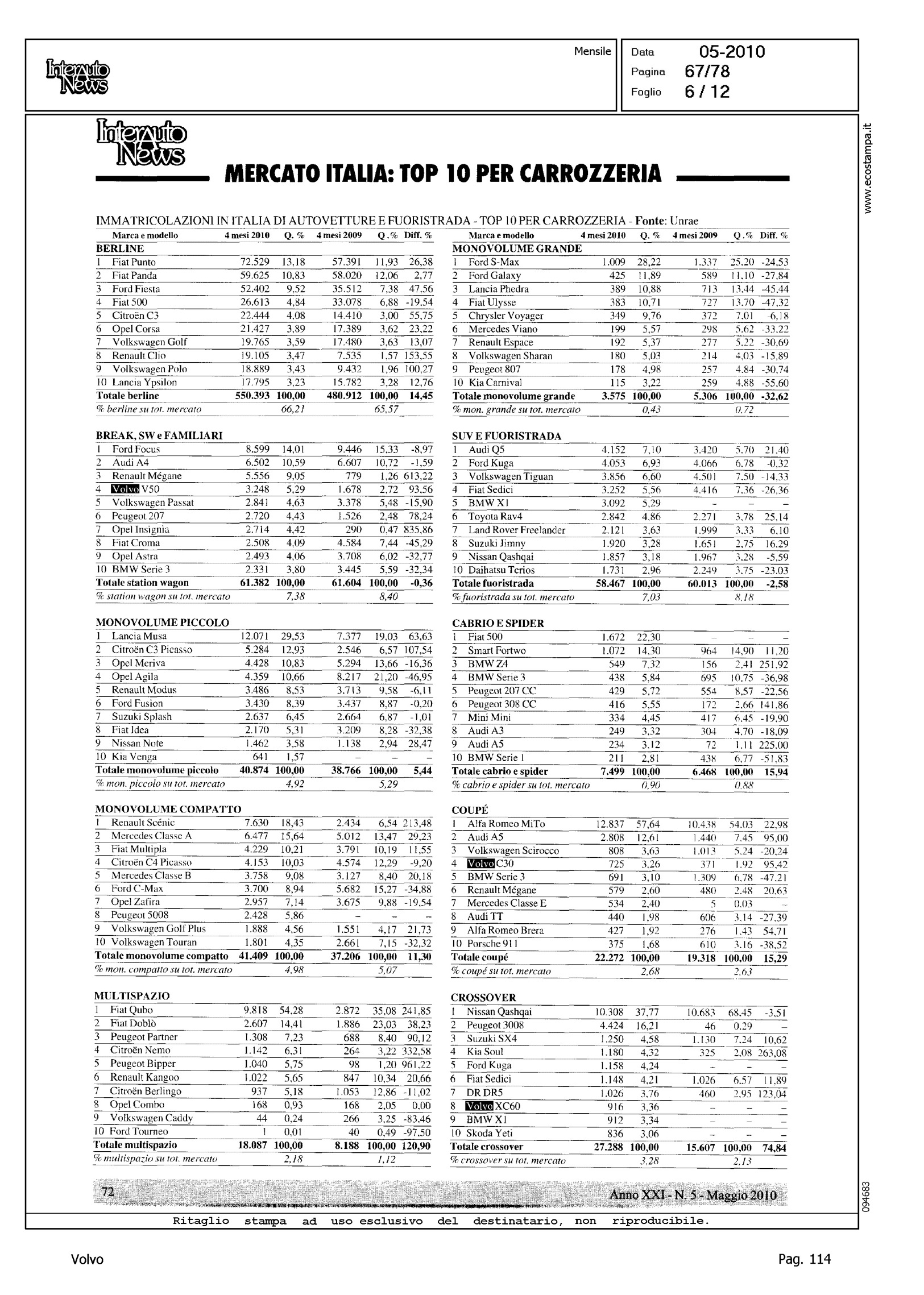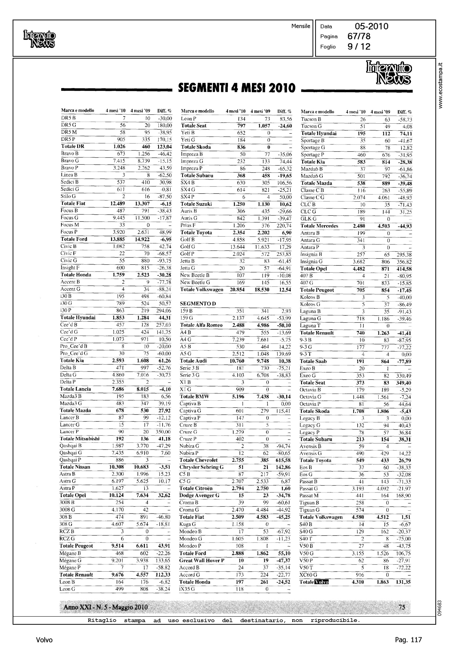 Author: Line: Corporate Model: Corporate Subject: - Title: LO SCONQUASSO DELLE KM 0 NASCONDE LA VERITA': FEDERAICPA PER APRILE INDICA UN CLO DEL 30%Highlight: TABELLE
