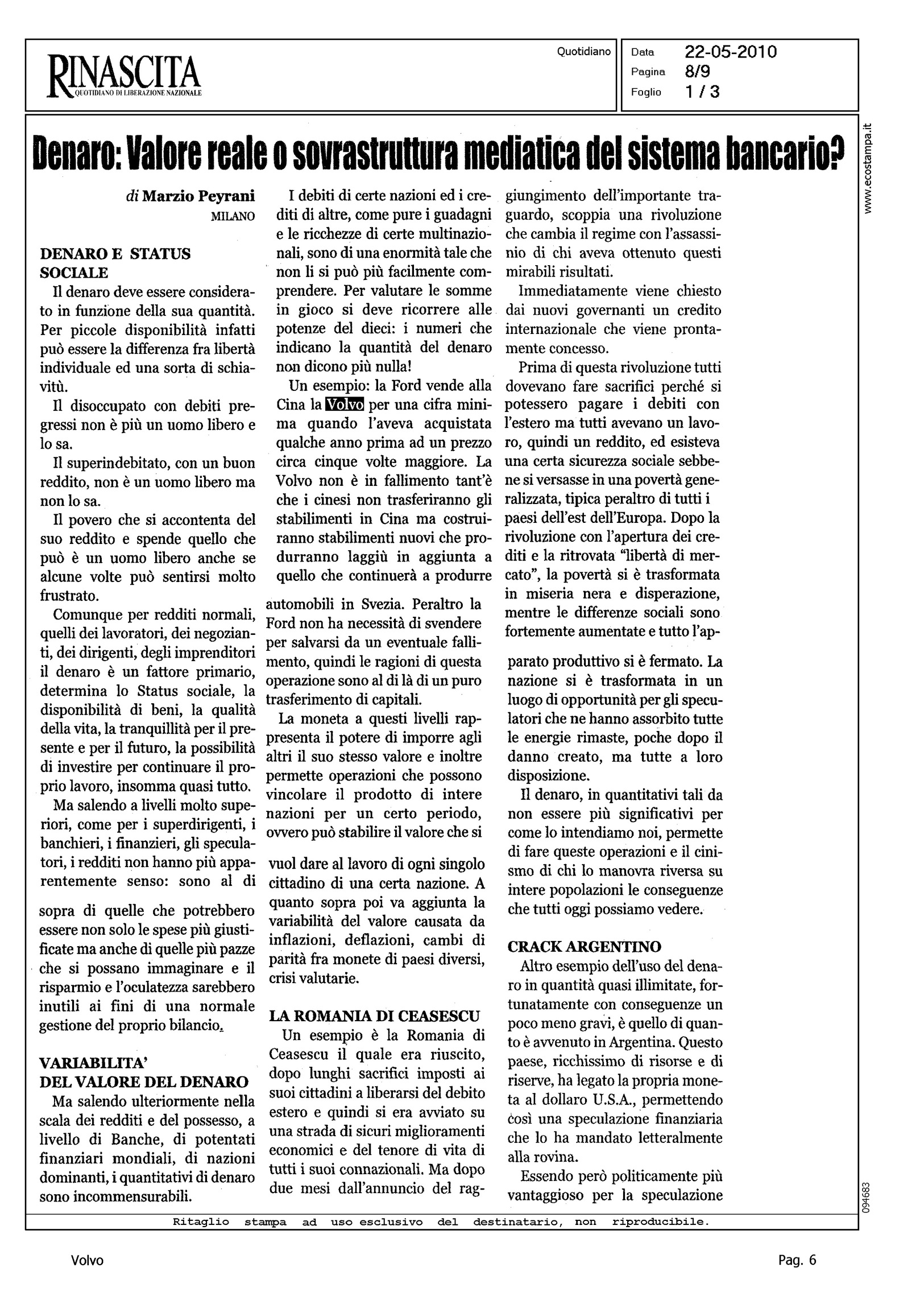 Author: PEYRANI, MARZIOLine: Corporate Model: Corporate Subject: - Title: DENARO: VALORE REALE O SOVRSTRUTTURA MEDIATICA DELL SISTEMA BANCARIOHighlight: CITAZIONE