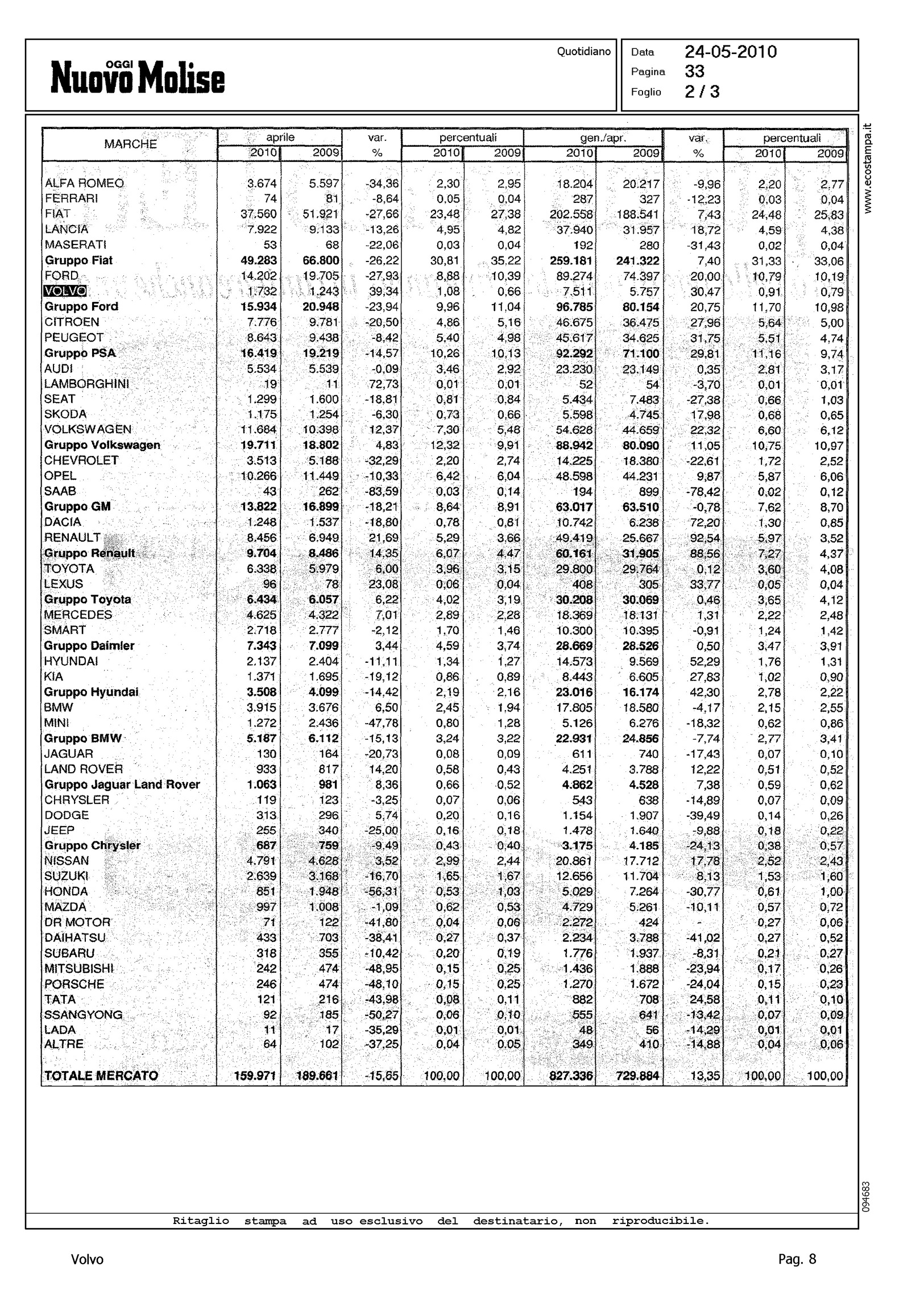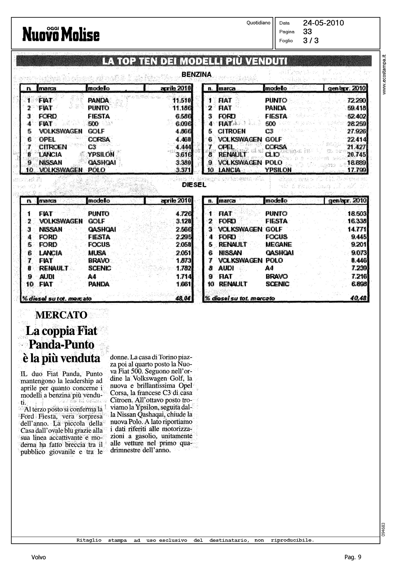 Author: ARCESE, MASSIMOLine: Corporate Model: Corporate Subject: - Title: MERCATO IN FLESSIONEHighlight: TABELLE MERCATO ITALIA APRILE