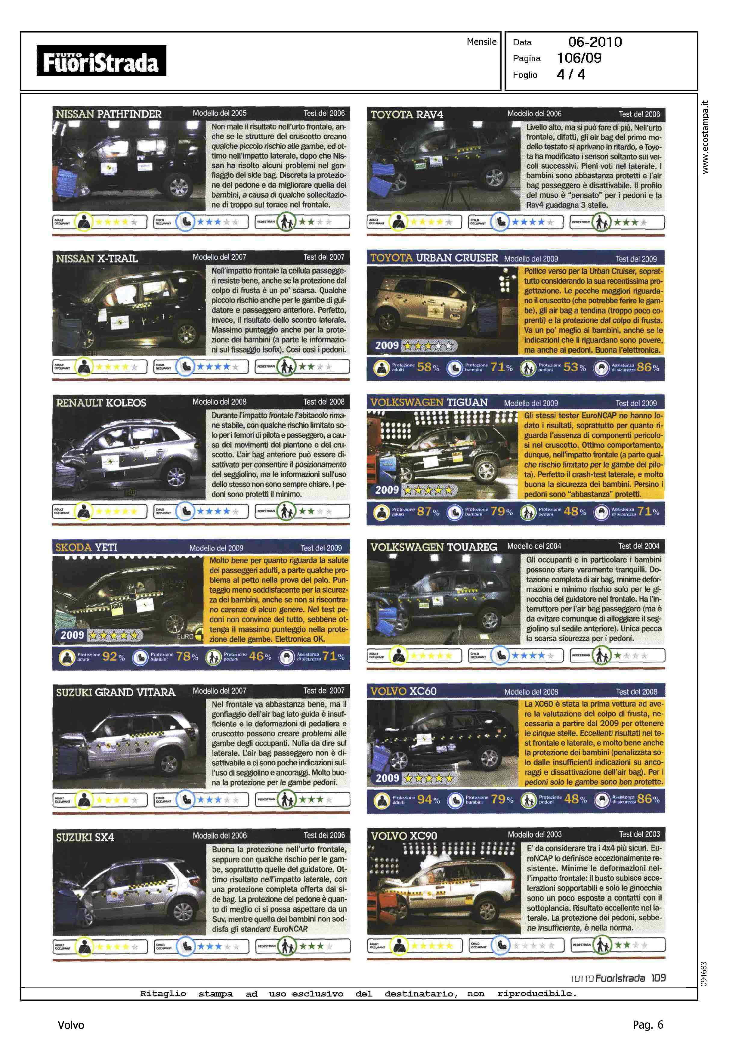 Author: Line: Corporate Model: Corporate Subject: - Title: CRASH TEST - 4X4 E SICUREZZAHighlight: TEST EURONCAP, RISULTATI XC60, XC90 - SCHEDA COMMENTO E VALUTAZIONE EURONCAP