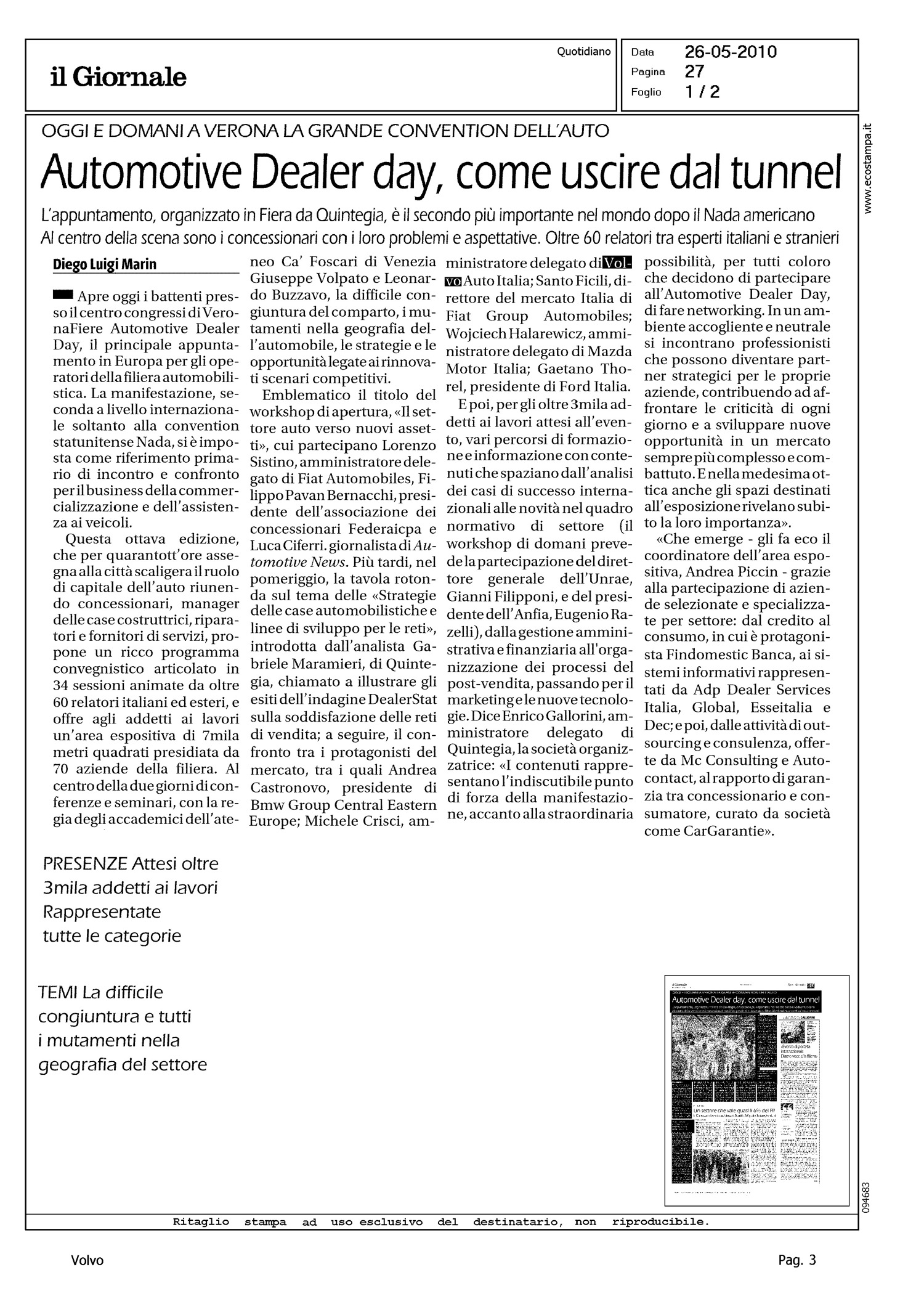 Author: MARIN, DIEGO LUIGILine: Corporate Model: Corporate Subject: - Title: AUTOMOTIVE DEALER DAY, COME USCIRE DAL TUNNELHighlight: PARTECIPAZIONE VOLVO A DEALER DAY