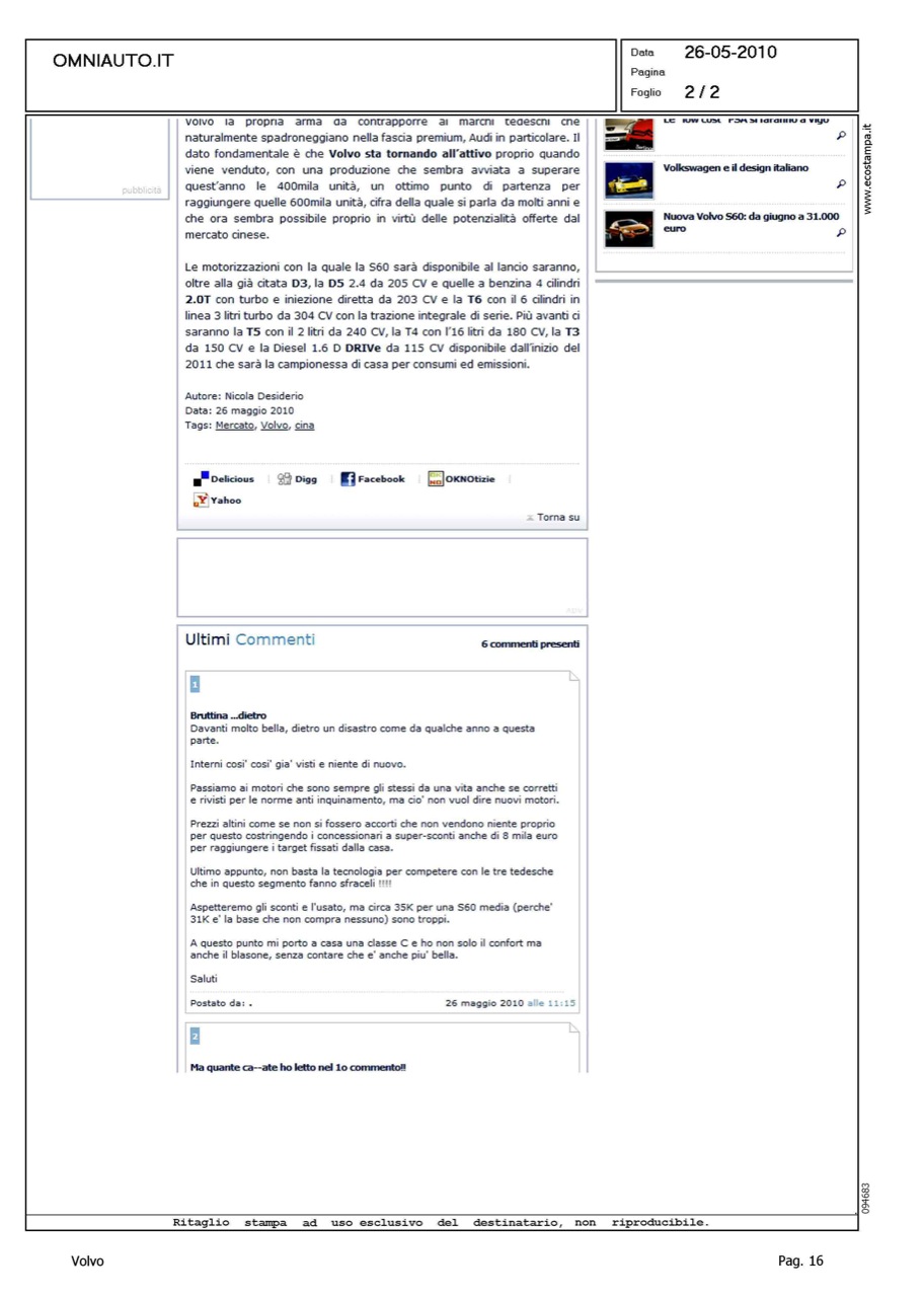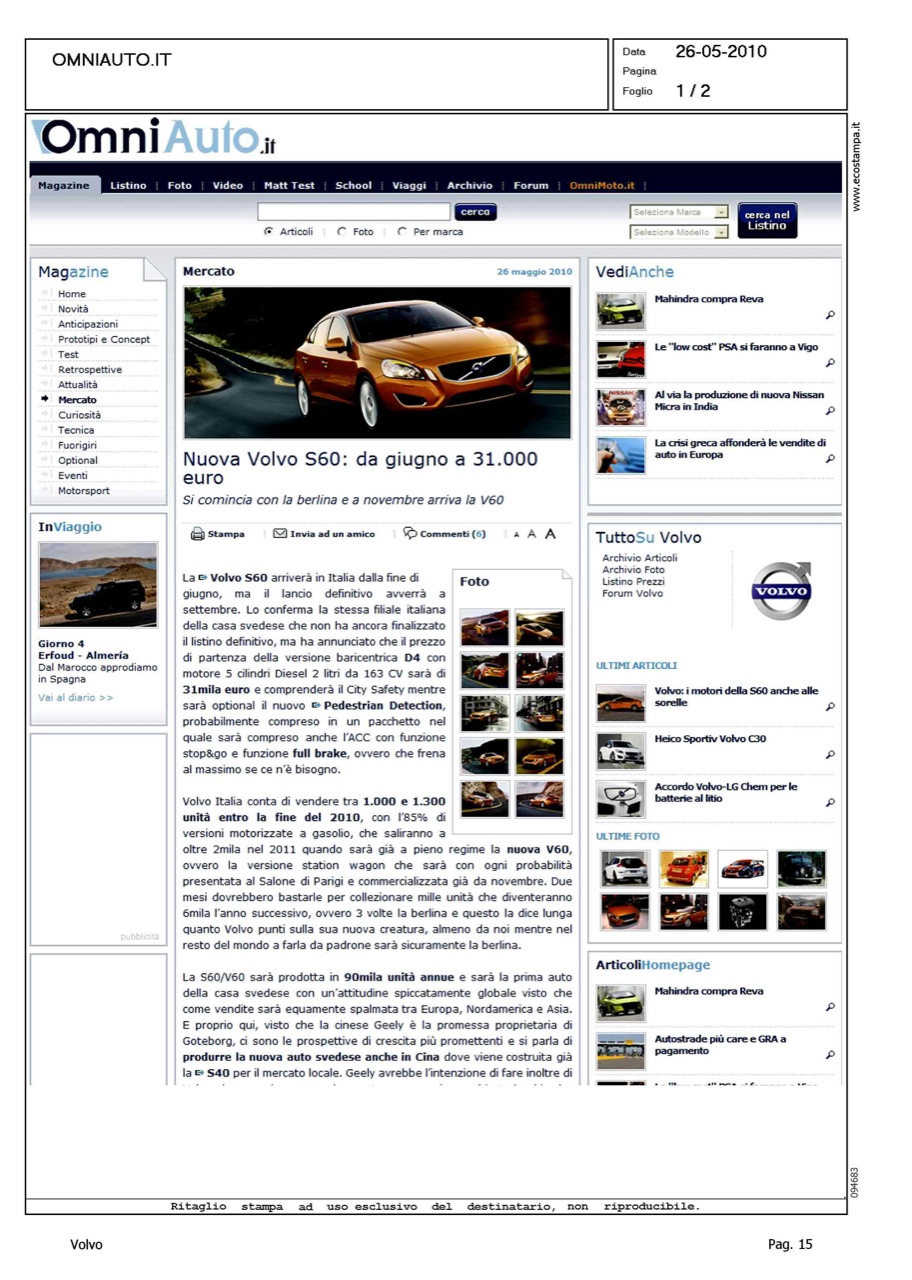 Title: NUOVA VOLVO S60: DA GIUGNO A 31.000 EURO