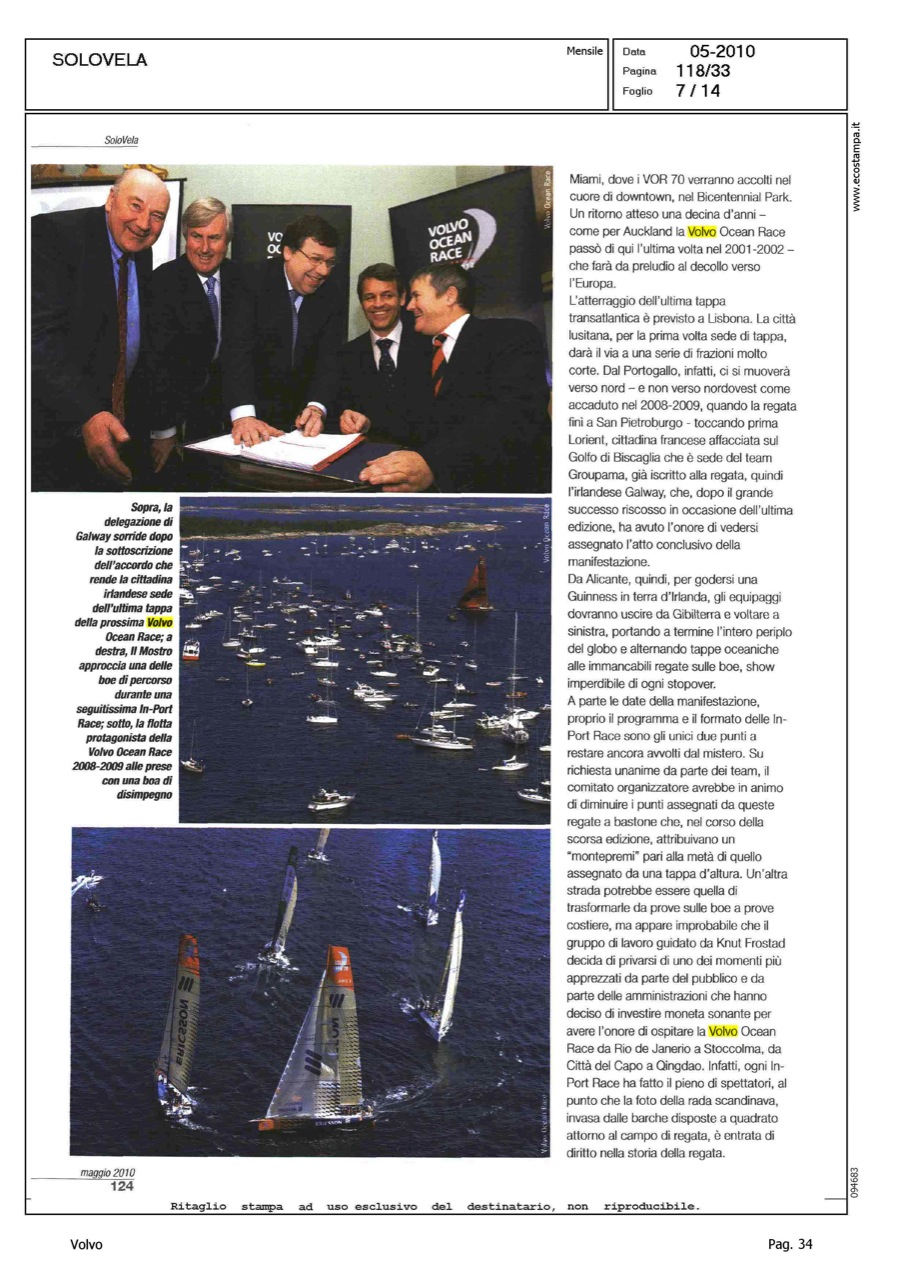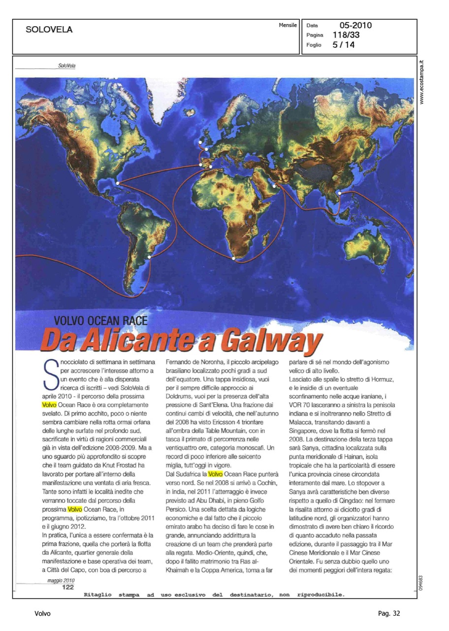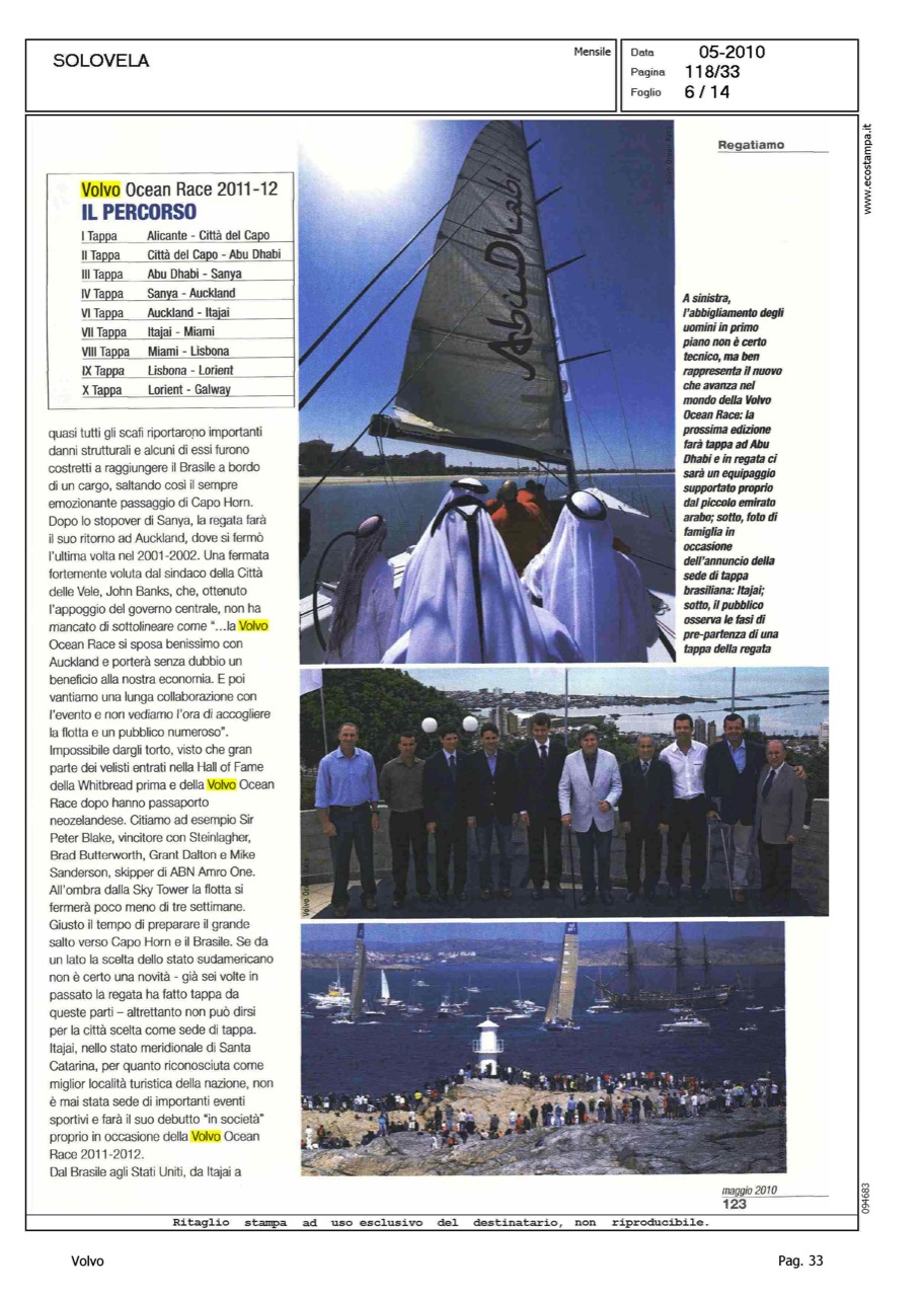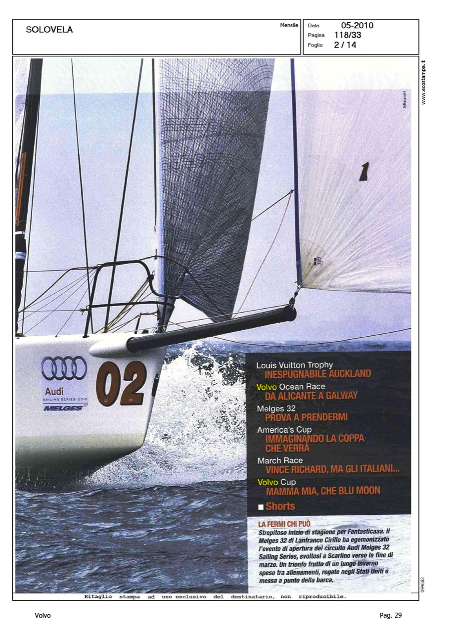 Author: MELANDRI, MAUROLine: Corporate Model: Corporate Subject: Volvo Ocean Race Title: SOLO VELA - REGATIAMOHighlight: REGATE, DALLA VOR ALLA CUP