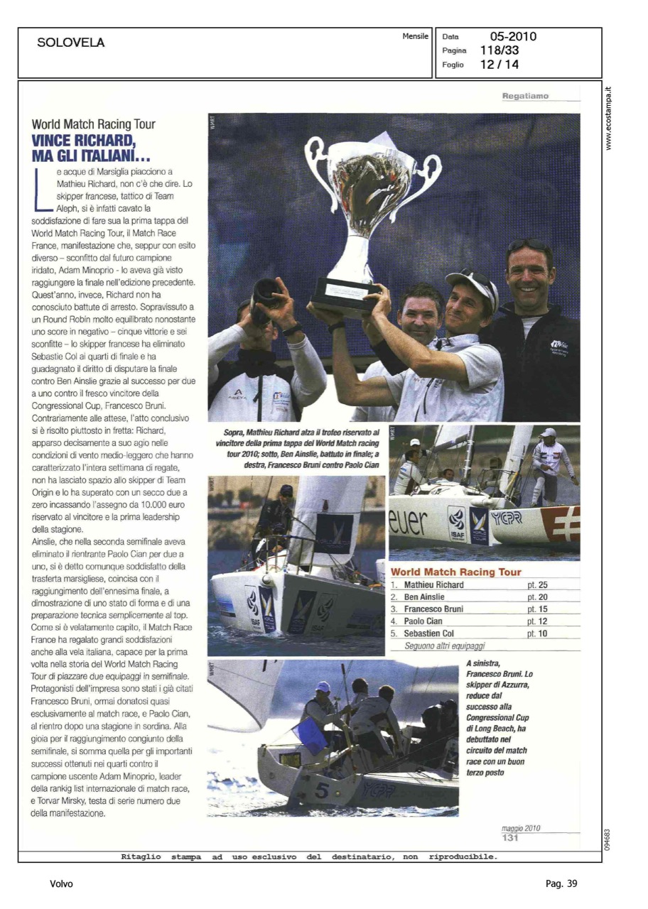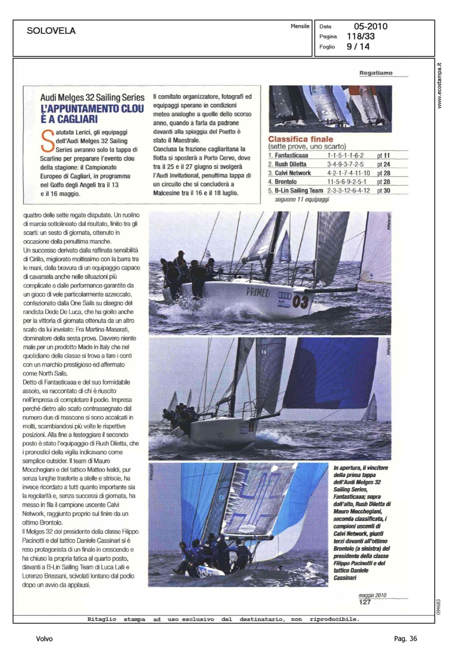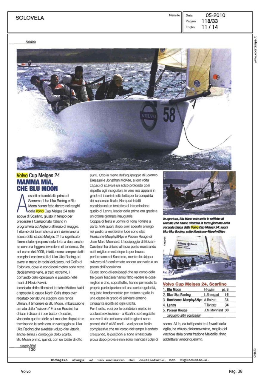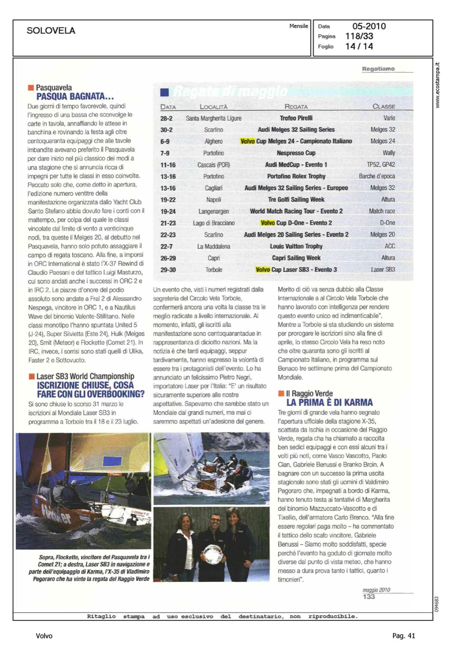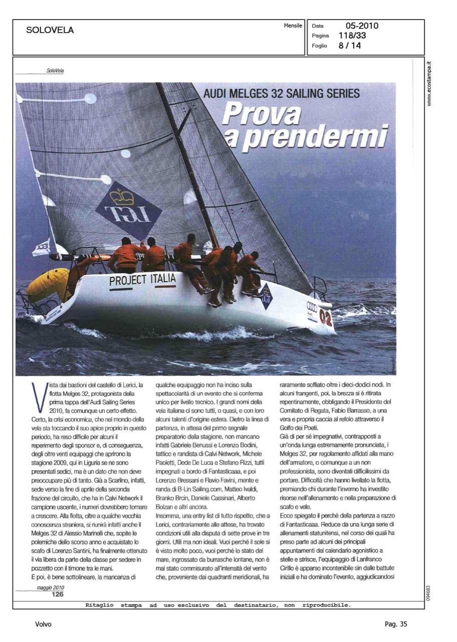 Author: MELANDRI, MAUROLine: Corporate Model: Corporate Subject: Volvo Ocean Race Title: SOLO VELA - REGATIAMOHighlight: REGATE, DALLA VOR ALLA CUP