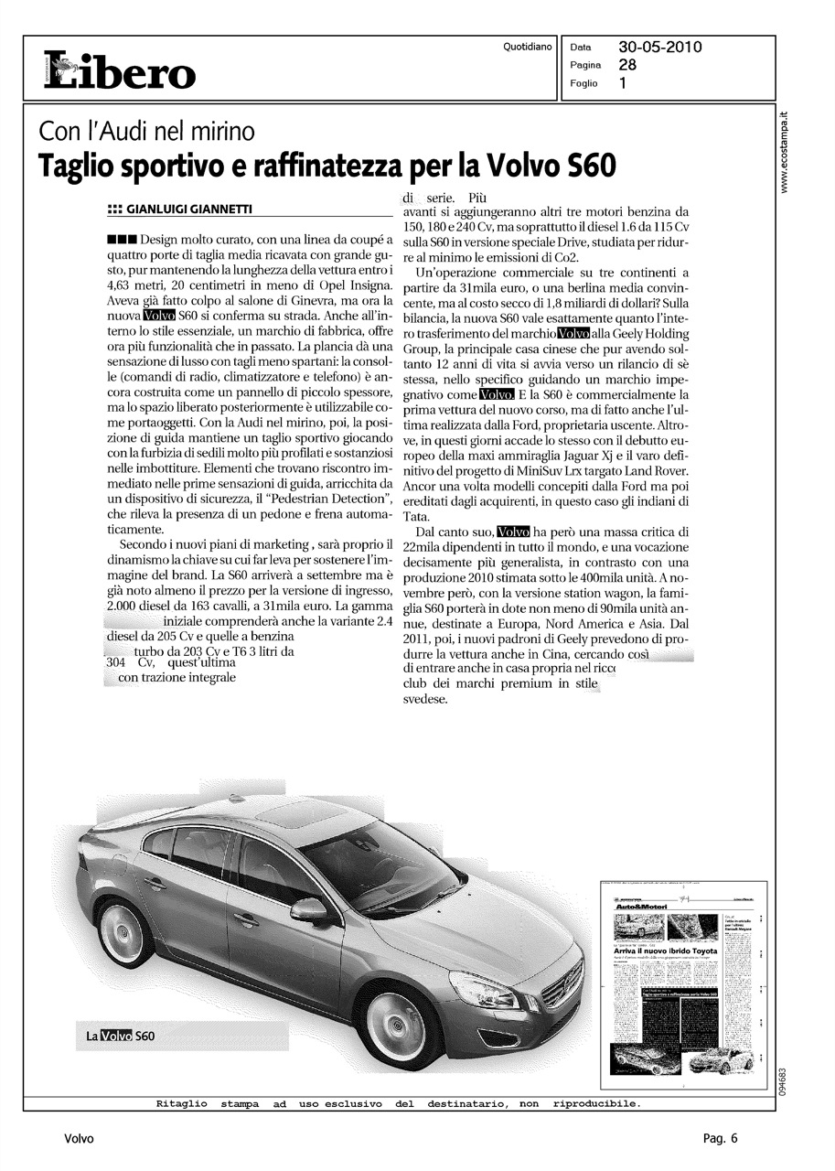 Title: CON L'AUDI NEL MIRINO - TAGLIO SPORTIVO E RAFFINATEZZA PER LA VOLVO S60