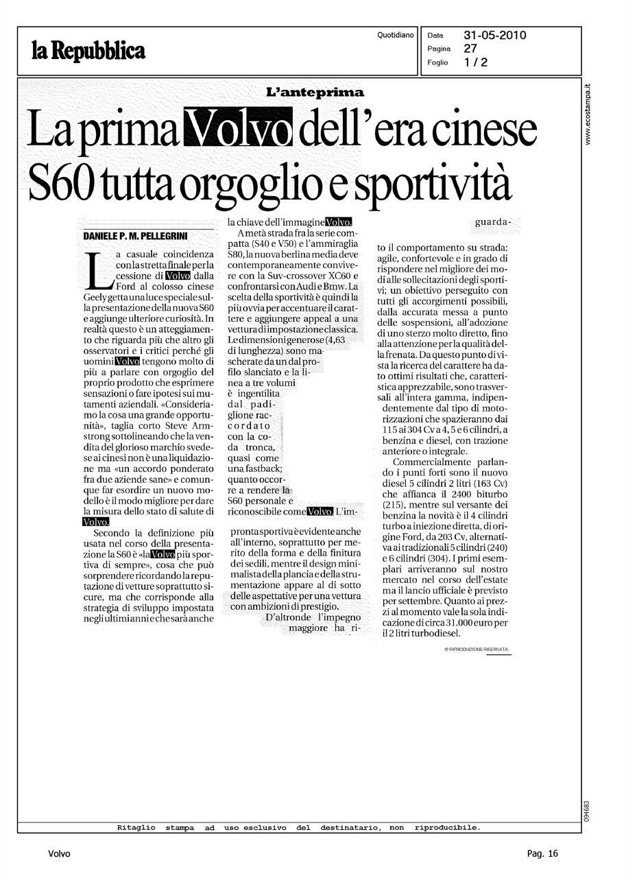 Title: LA PRIMA VOLVO DELL'ERA CINESE S60 TUTTA ORGOGLIO E SPORTIVITA'