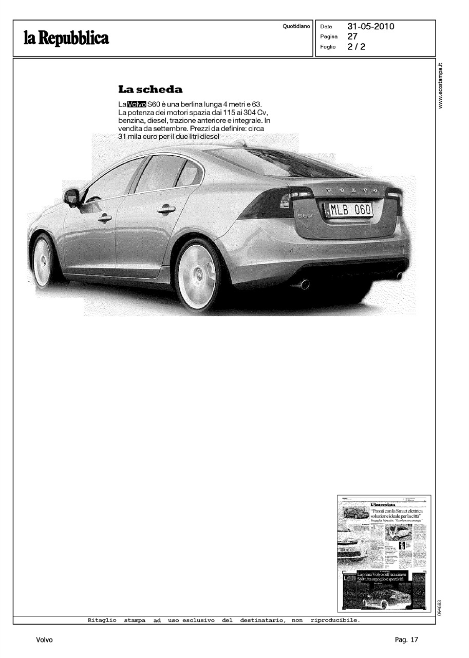 Line: S60 Model: Linea S60 Testdrive Subject: -