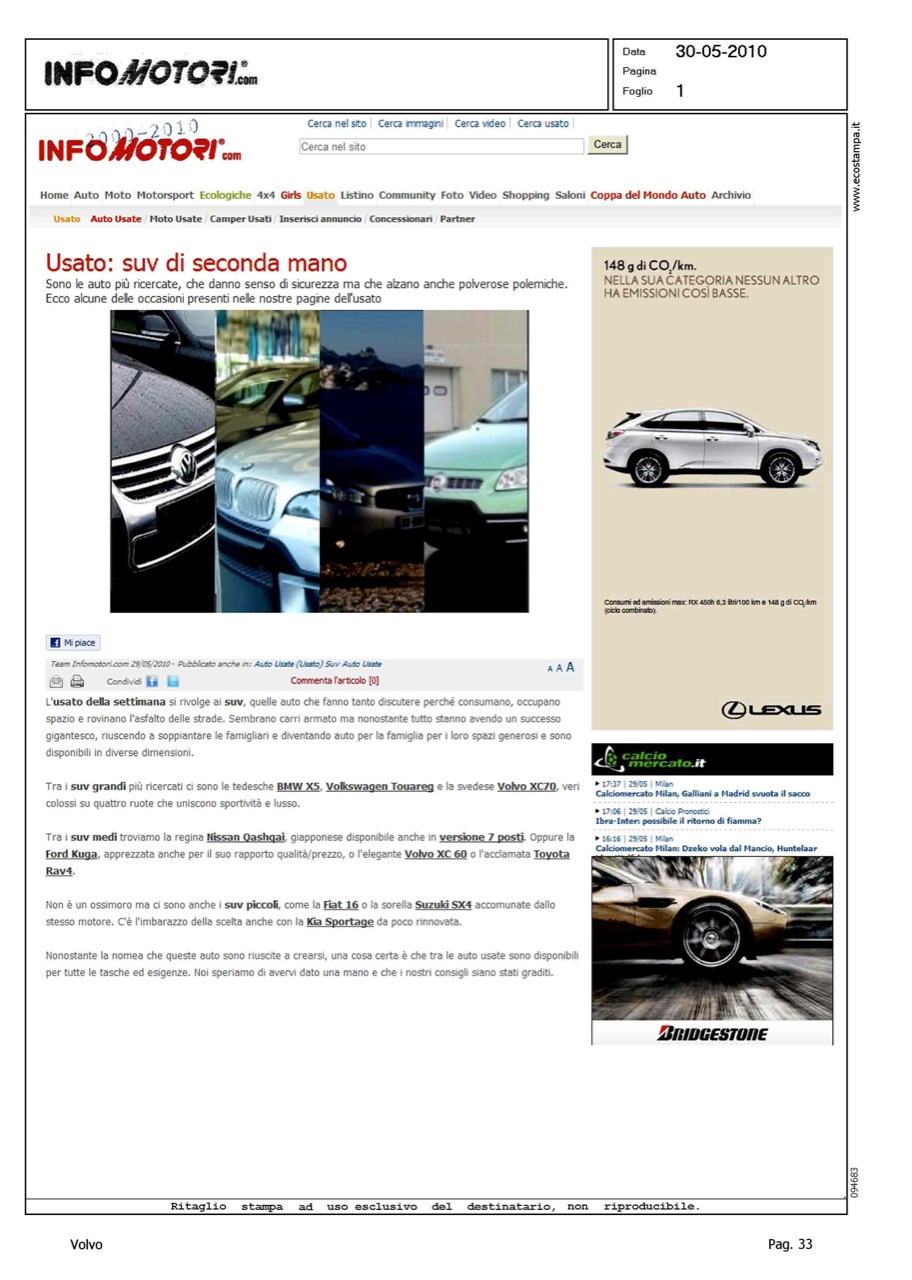 Author: Line: Corporate Model: Volvo XC70 Subject: - Title: USATO: SUV DI SECONDA MANOHighlight: CITAZIONE, MERCATO USATO