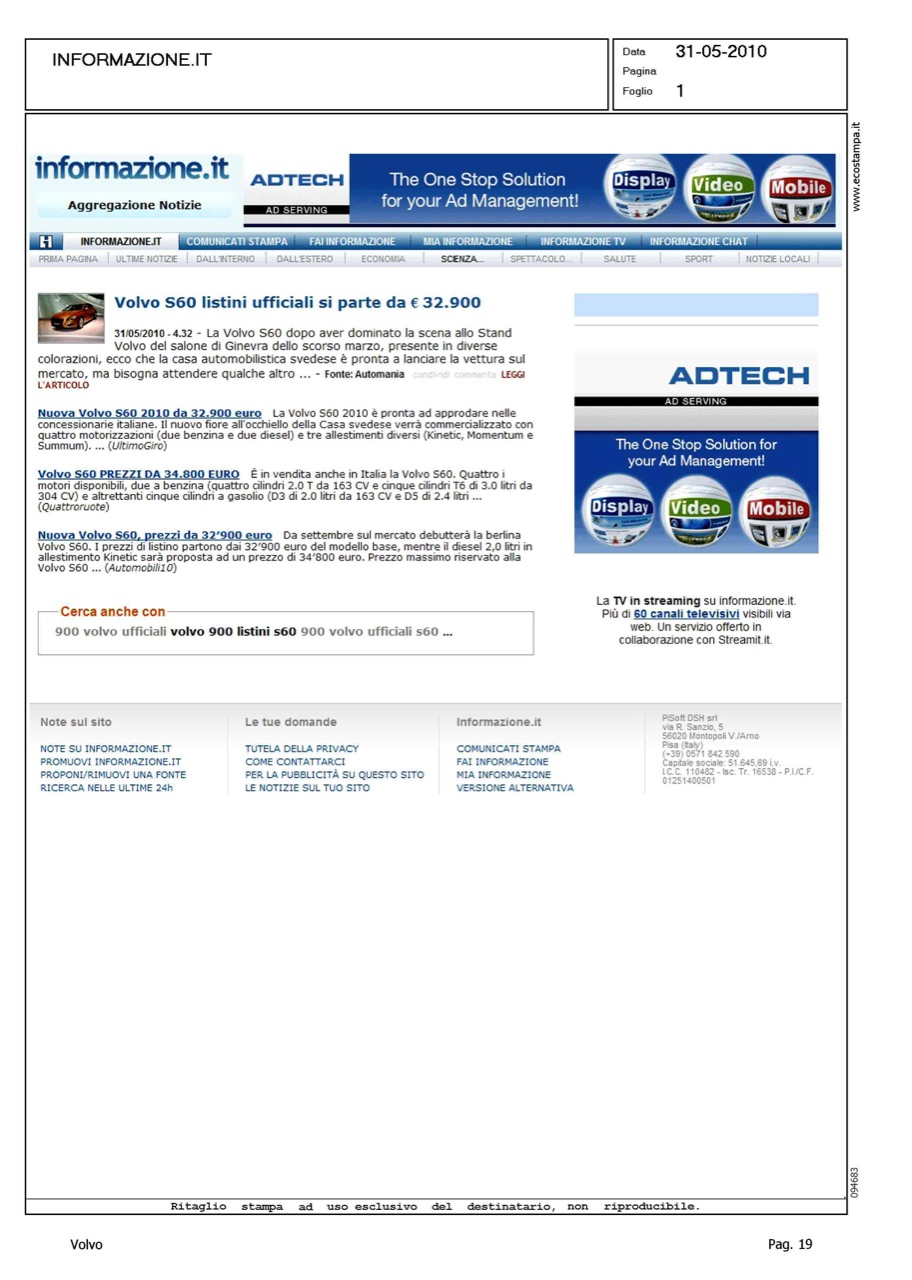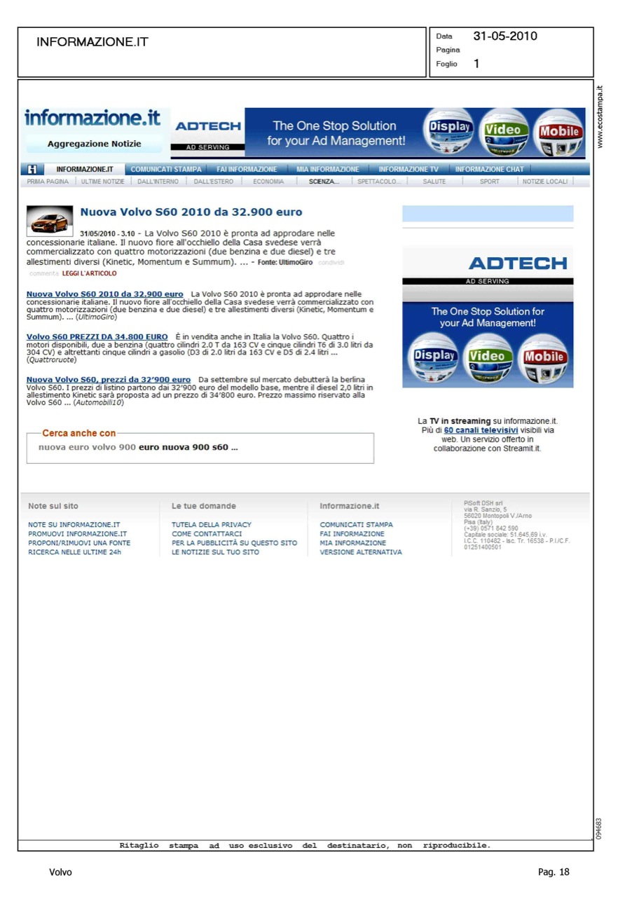 Author: Line: S60 Model: Linea S60 Testdrive Subject: - Title: NUOVA VOLVO S60 DA 32.900 EUROHighlight: ANNUNCIO PREZZI
