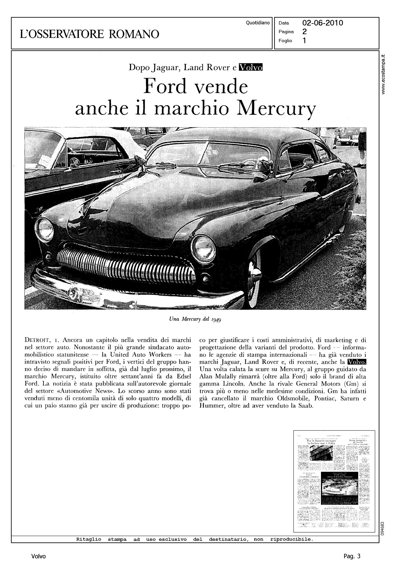 Author: Line: Corporate Model: Corporate Subject: - Title: DOPO JAGUAR, LAND ROVER E VOLVO - FORD VENDE ANCHE IL MARCHIO MERCURYHighlight: VENDITA VOLVO ALLA GEELY