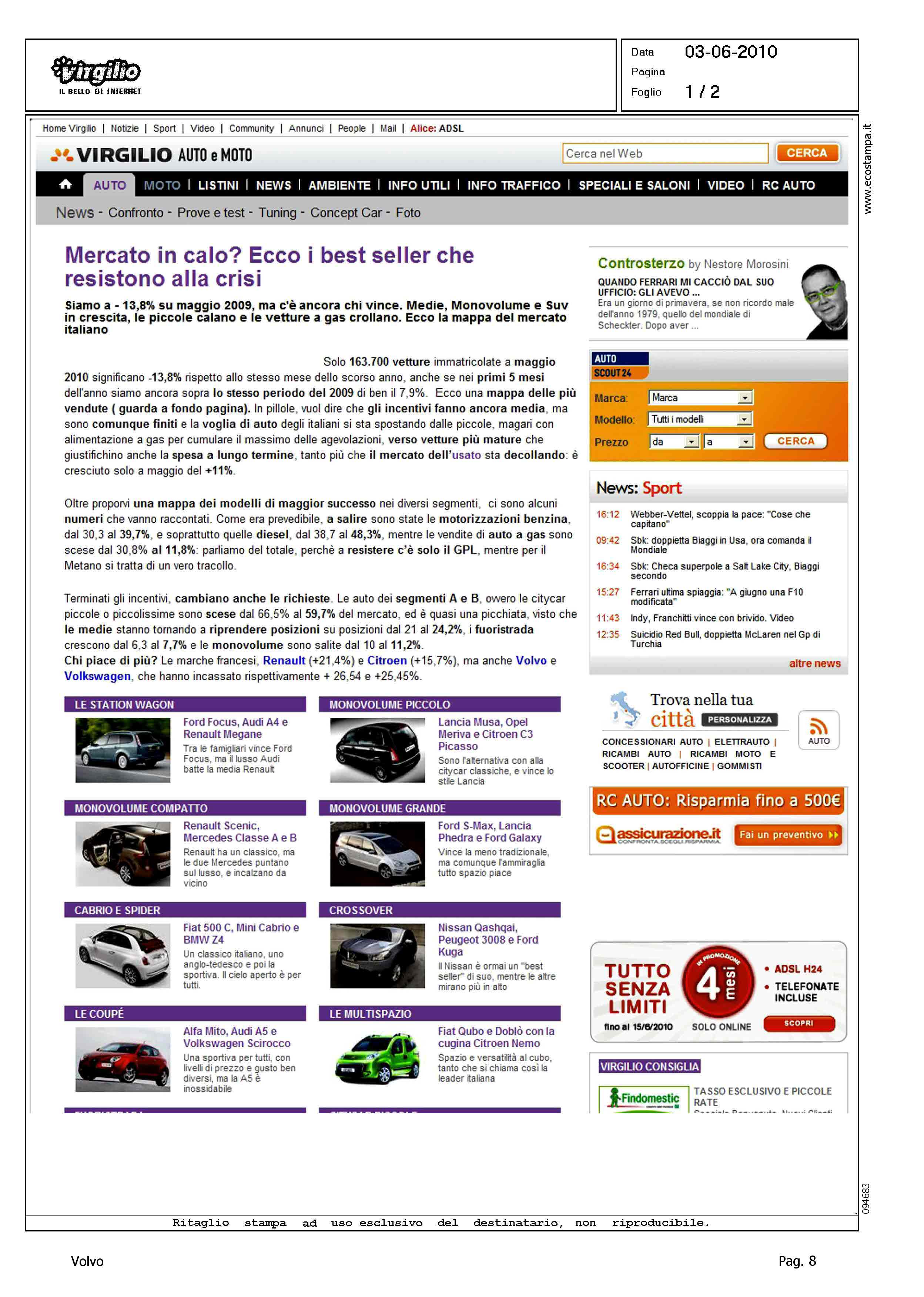 Author: Line: Corporate Model: Corporate Subject: - Title: MERCATO IN CALO? ECCO I BEST SELLER CHE RESISTONO ALLA CRISIHighlight: CITAZIONE - QUOTA ITALIA IN CRESCITA