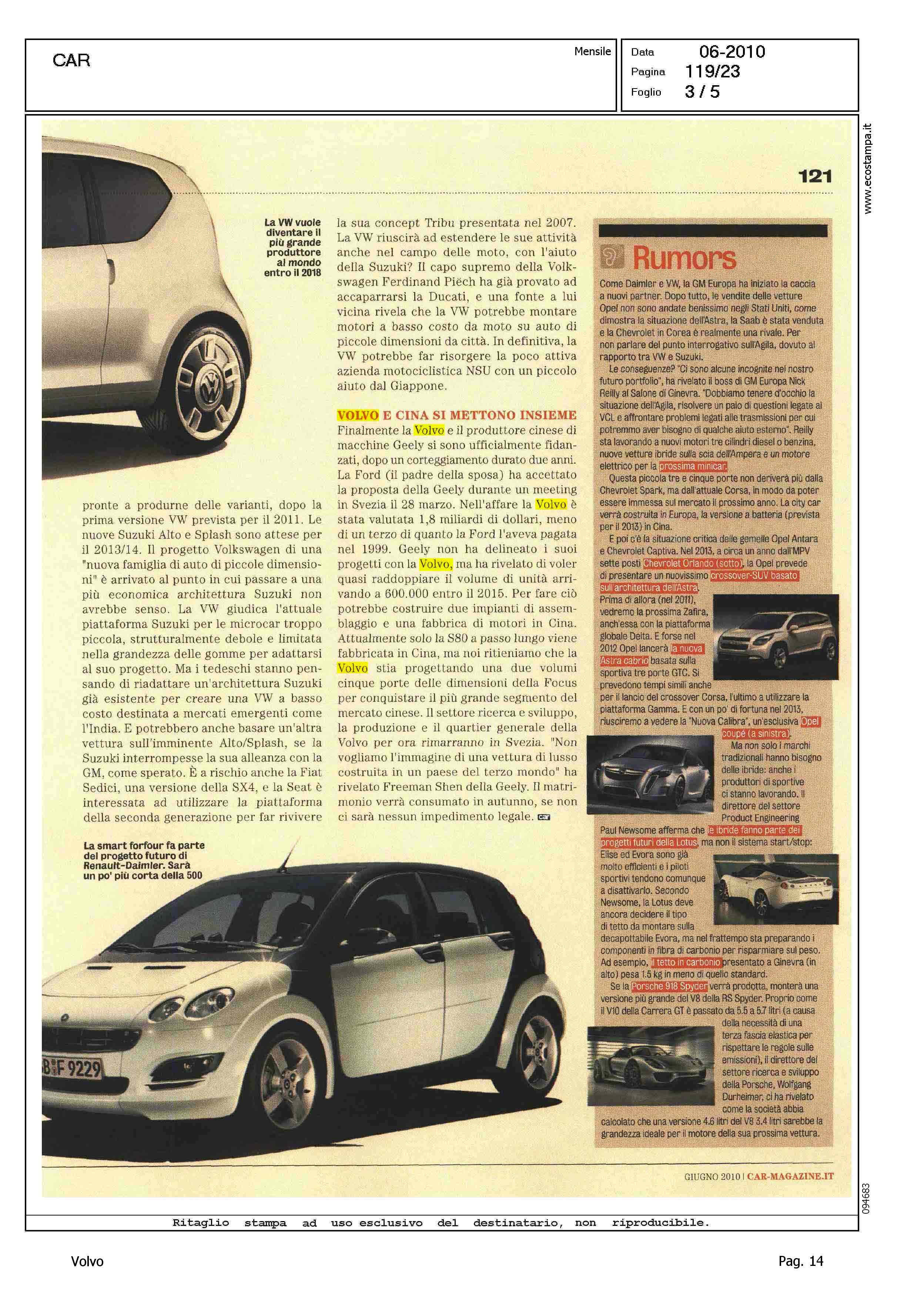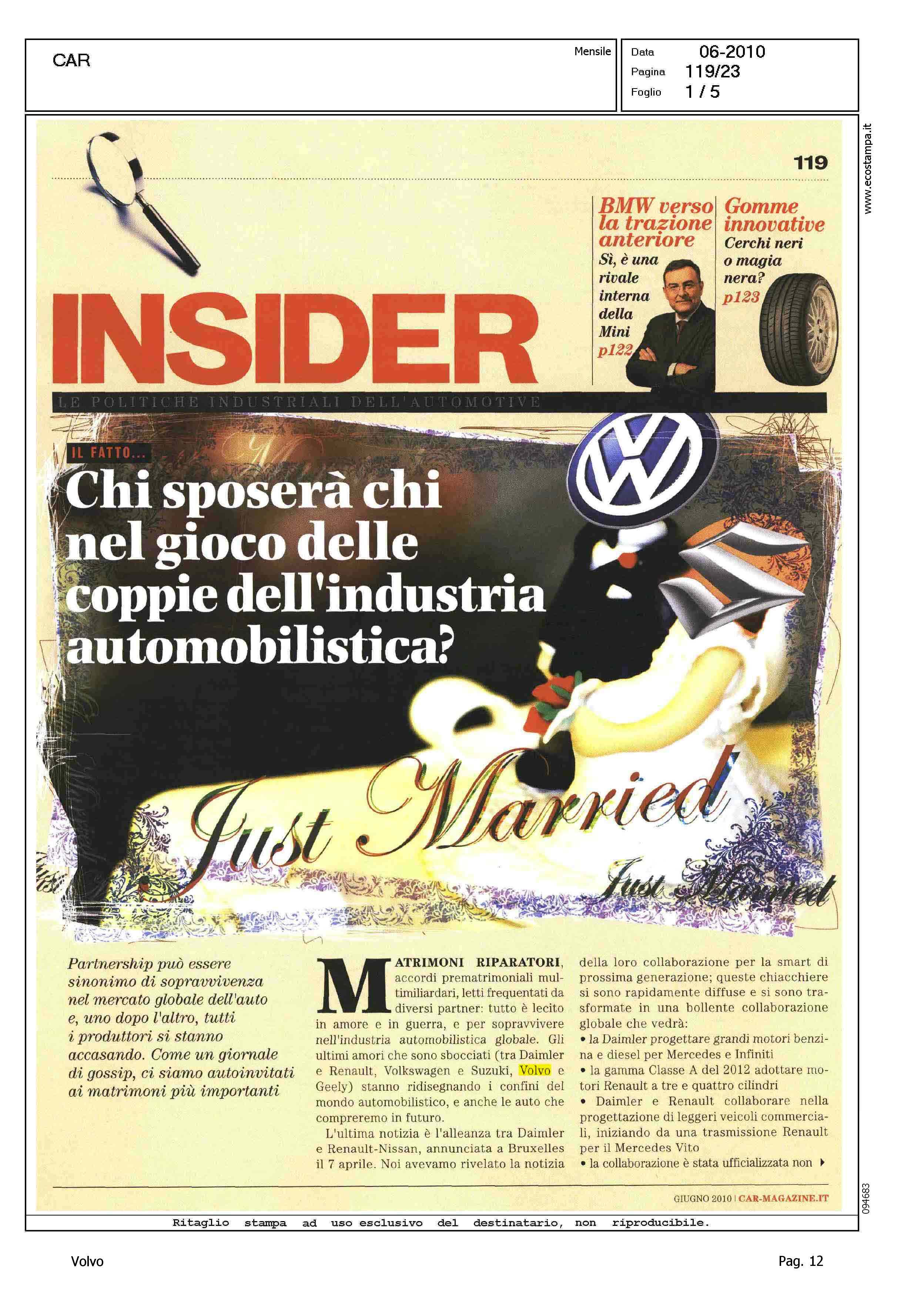 Author: Line: Corporate Model: Corporate Subject: - Title: INSIDER - VOLVO E CINA SI METTONO INSIEMEHighlight: VENDITA VOLVO ALLA GEELY