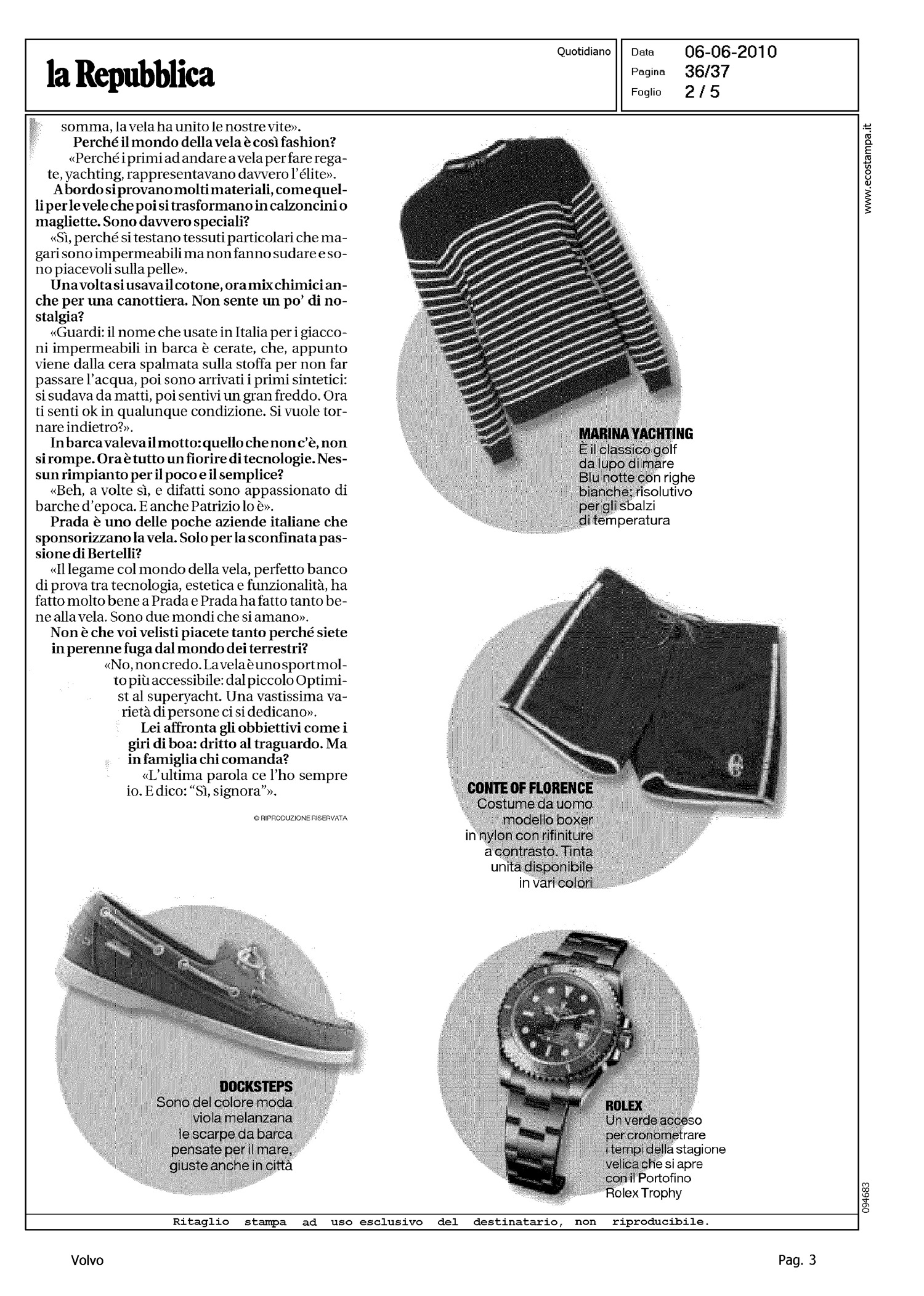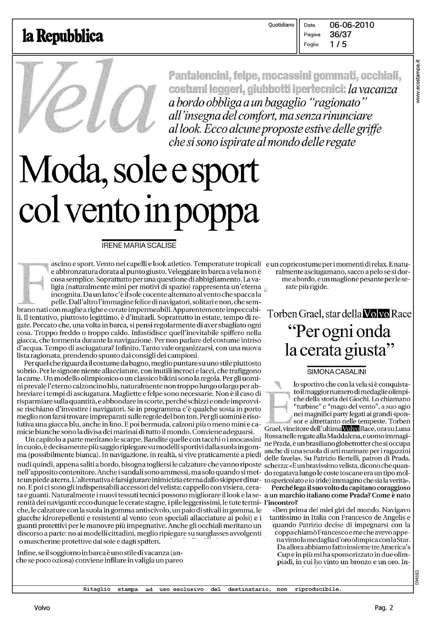 Author: SCALISE, IRENE MARIALine: Corporate Model: Corporate Subject: Volvo Ocean Race Title: VELA - MODA, SOLE E SPORT COL VENTO IN POPPAHighlight: PROFILO TORBEN GRAEL - INTERVISTA