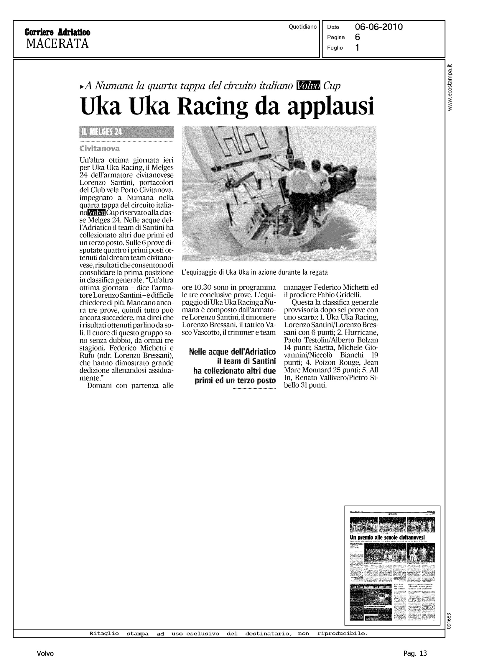 Author: Line: Corporate Model: Corporate Subject: Volvo Cup Title: UKA UKA RACING DA APPLAUSIHighlight: (EDIZIONE MACERATA) - REGATA DI NUMANA