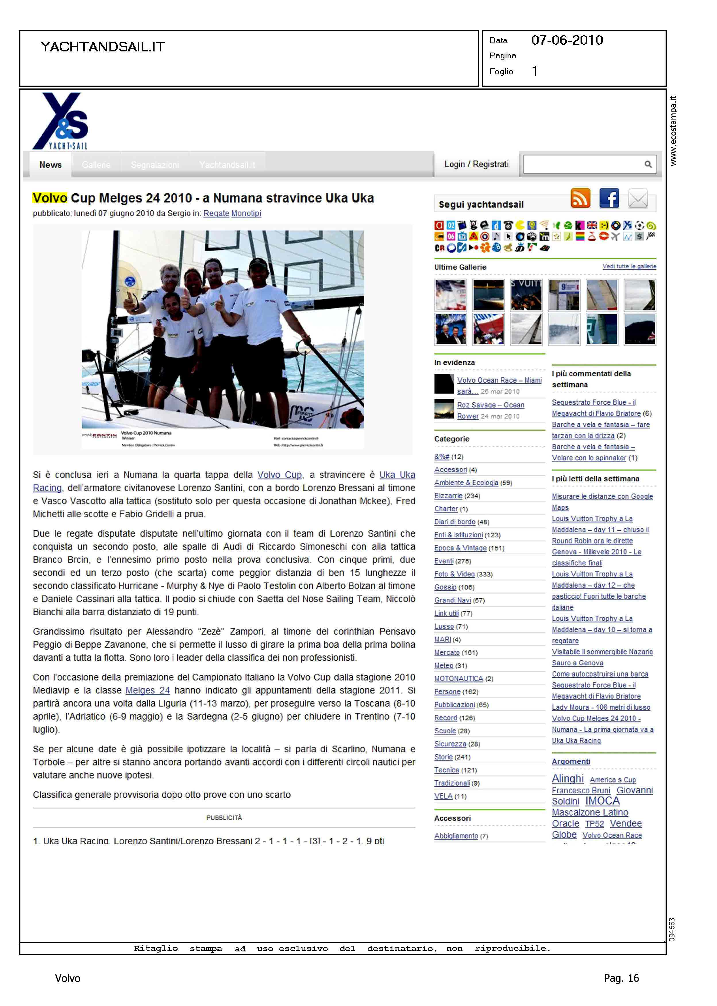 Author: Line: Corporate Model: Corporate Subject: Volvo Cup Title: VOLVO CUP MELGES 24 2010 - A NUMANA STRAVINCE UKA UKAHighlight: REGATA DI NUMANA