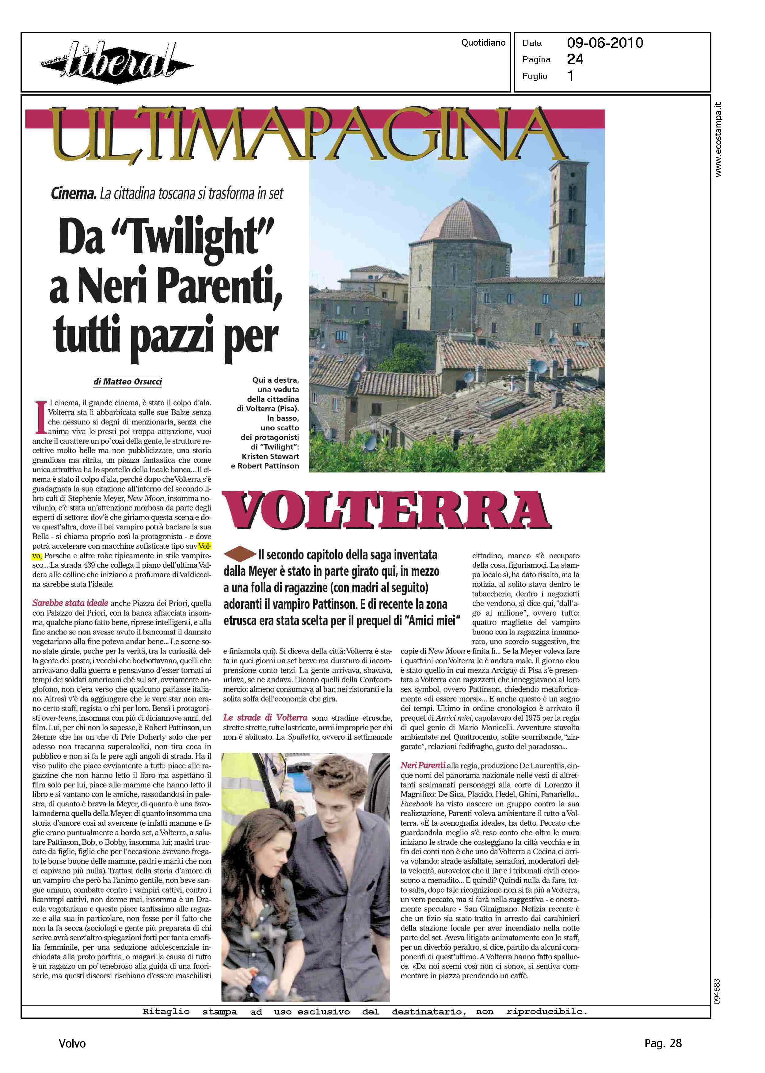 Author: ORSUCCI, MATTEOLine: Corporate Model: Corporate Subject: - Title: DA "TWILIGHT" A NERI PARENTI, TUTTI PAZZI PER VOLTERRAHighlight: CITAZIONE, NEW MOON