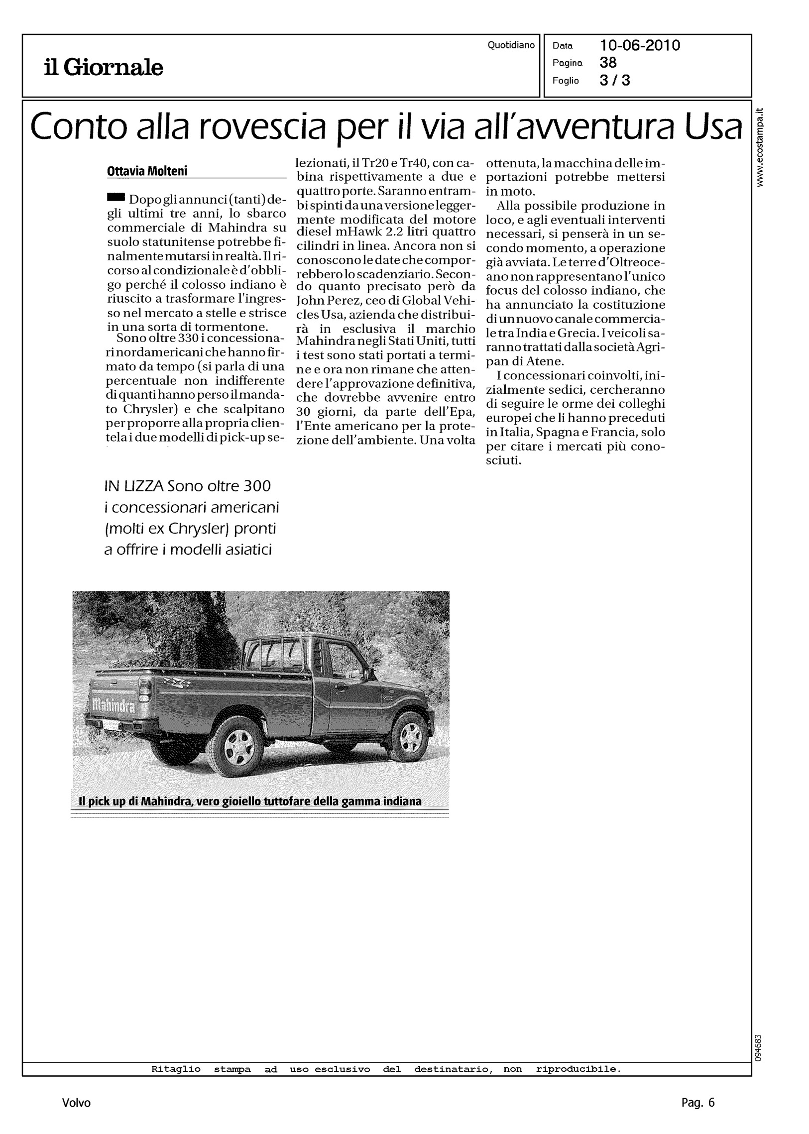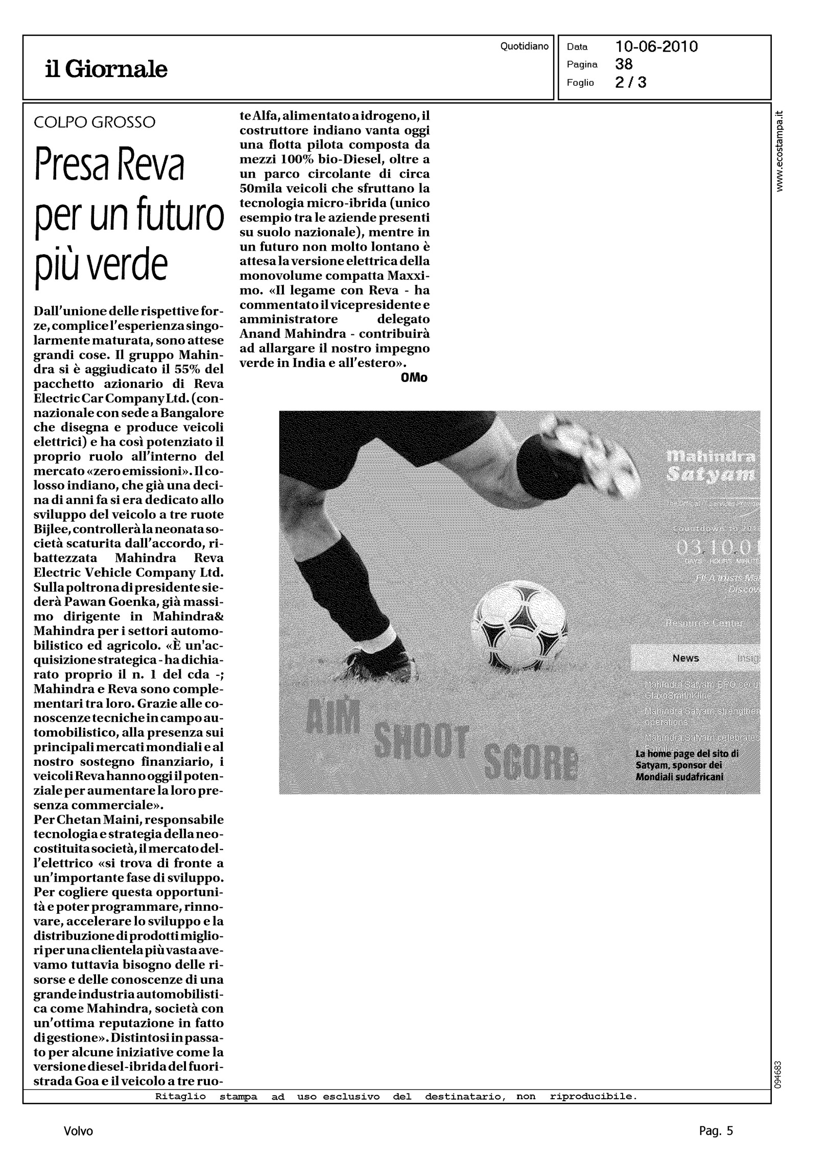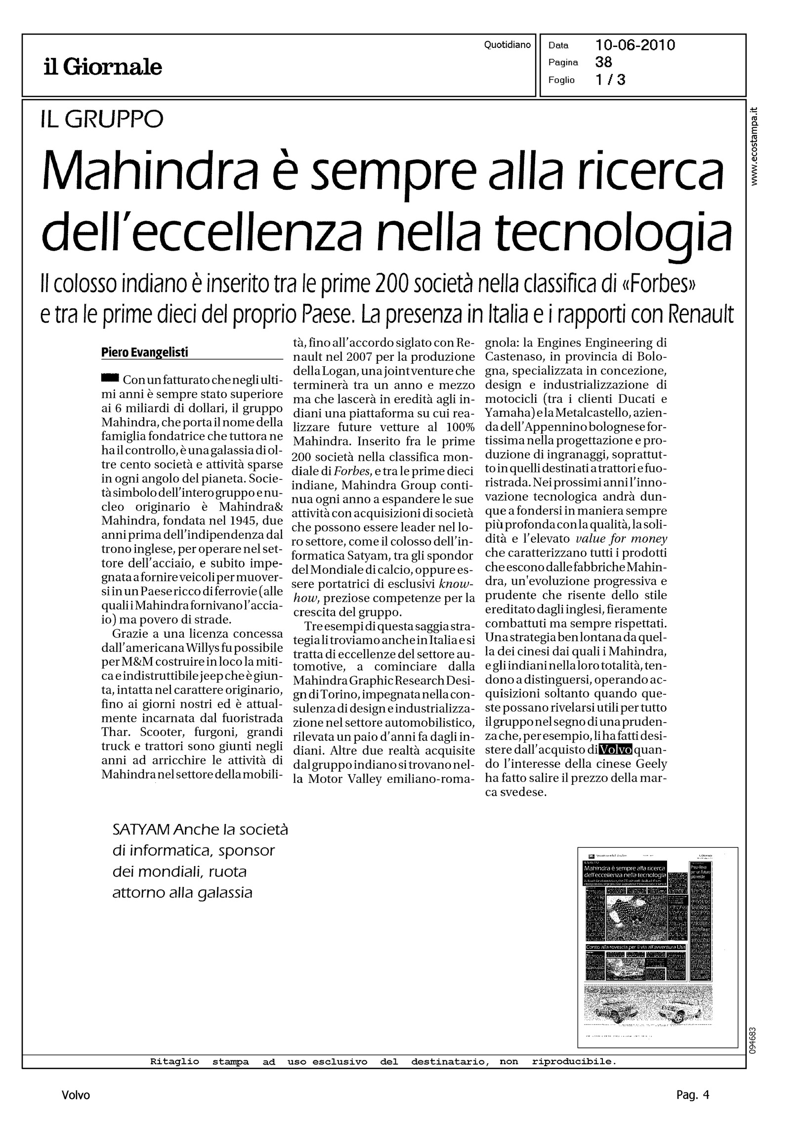 Author: EVANGELISTI, PIEROLine: Corporate Model: Corporate Subject: - Title: MAHINDRA E' SEMPRE ALLA RICERCA DELL'ECCELLENZA NELLA TECNOLOGIAHighlight: CITAZIONE, VENDITA VOLVO ALLA GEELY