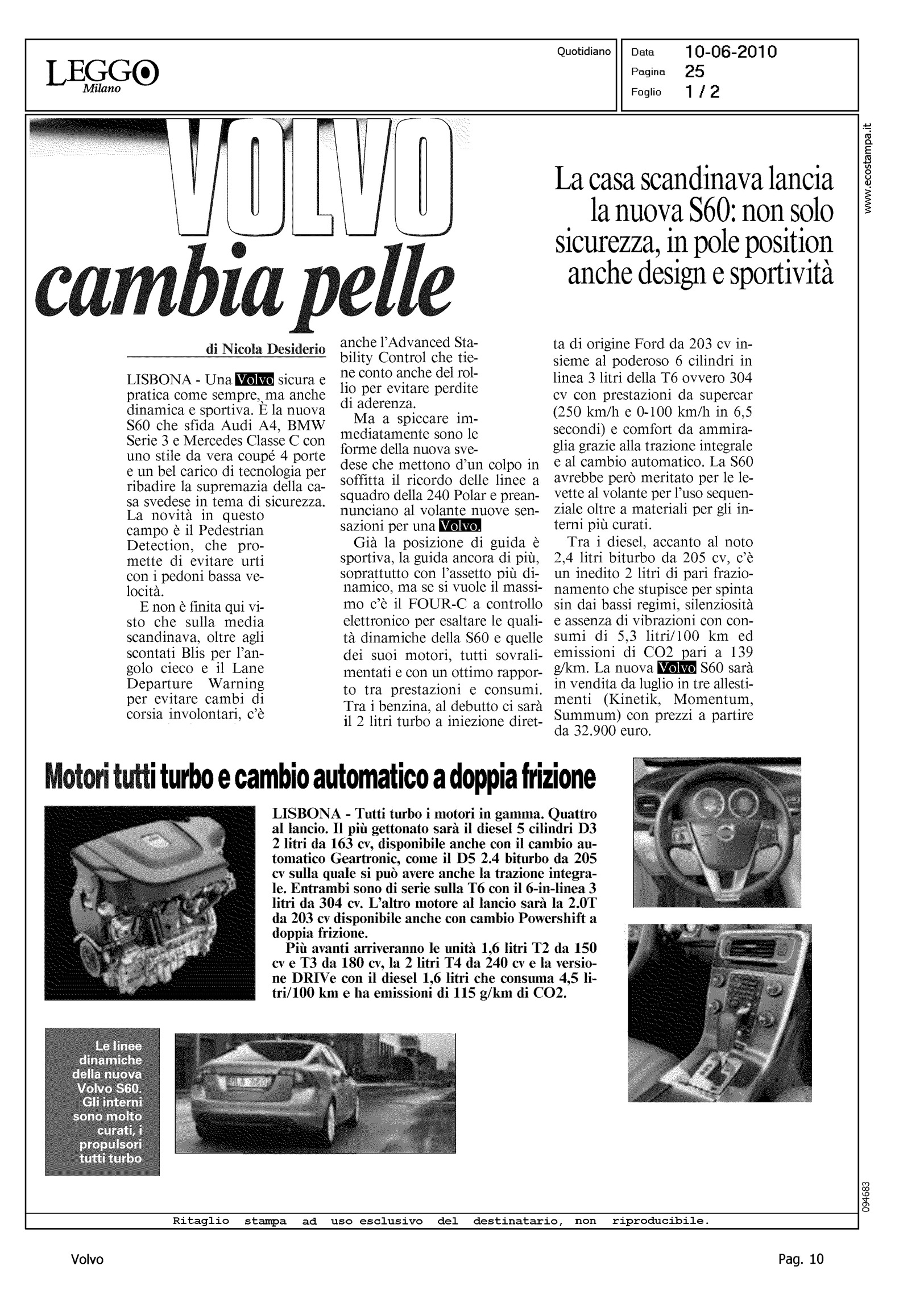 Title: VOLVO CAMBIA PELLE - C'E' UN PEDONE: LA SVEDESE FRENA DA SOLA - SGUARDO AL FUTURO: ECCO LE ELETTRICHE