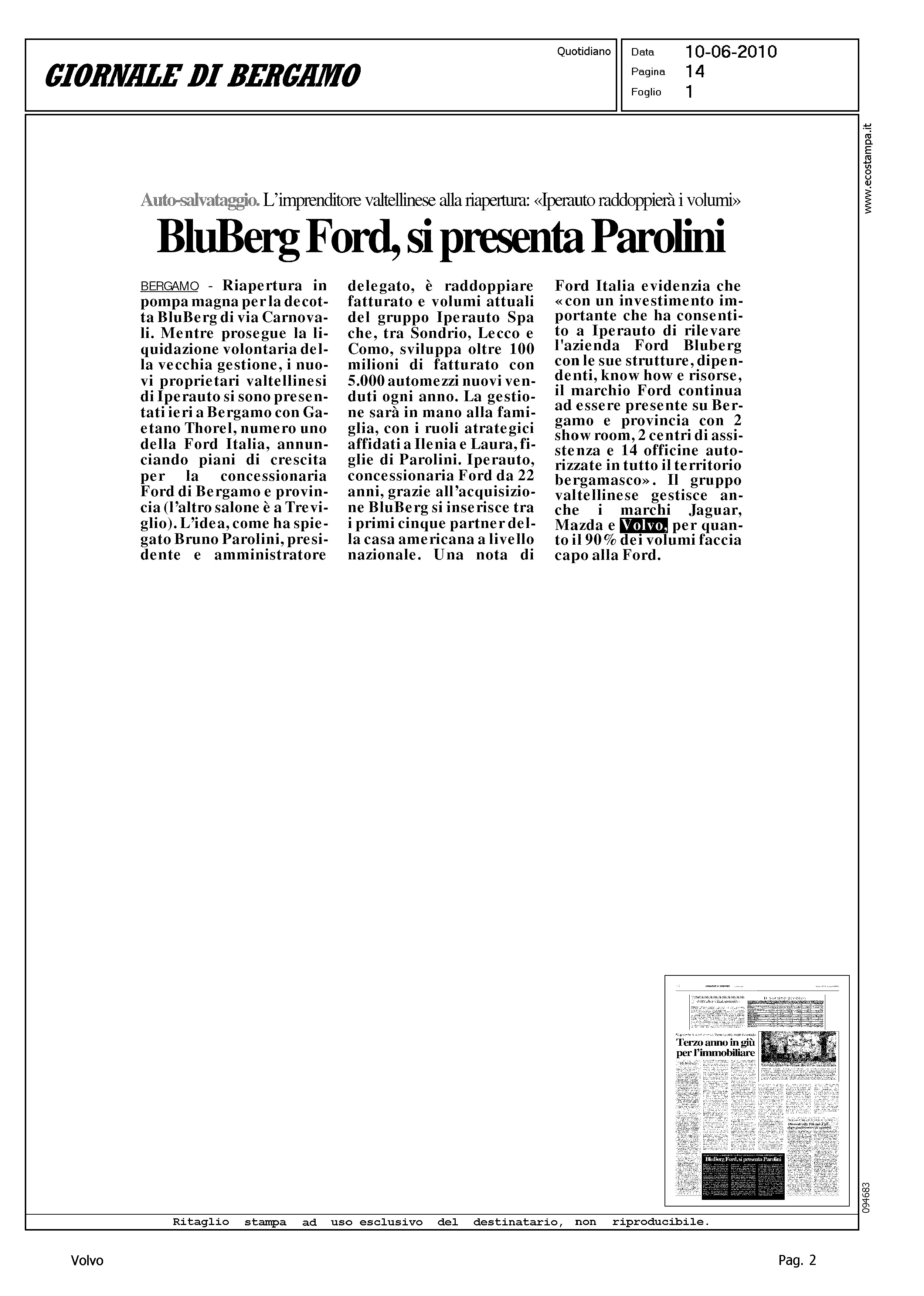Author: Line: Corporate Model: Corporate Subject: - Title: BLUBERG FORD, SI PRESENTA PAROLINIHighlight: BLUBERG-IPERAUTO
