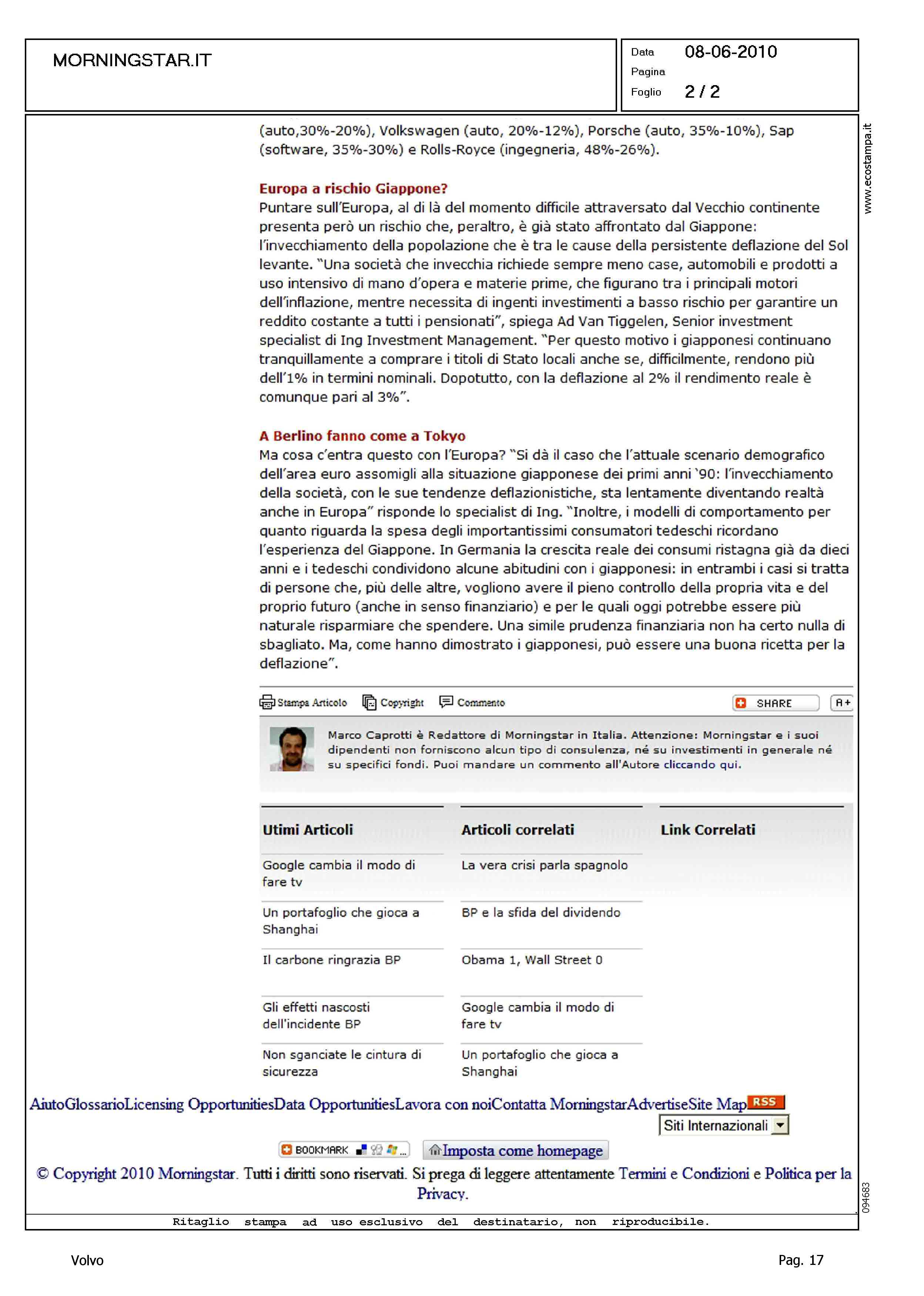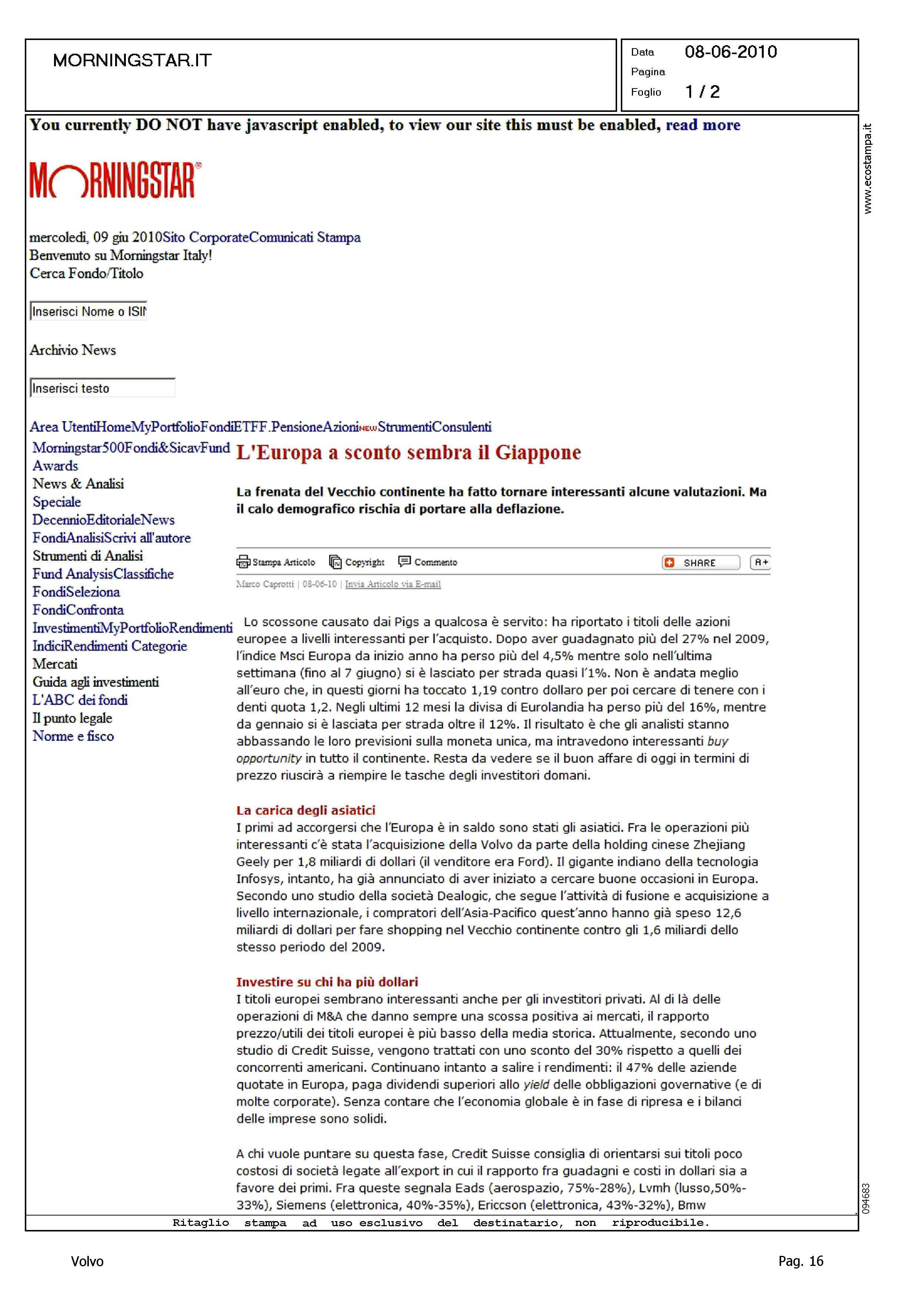 Author: Line: Corporate Model: Corporate Subject: - Title: L'EUROPA A SCONTO SEMBRA IL GIAPPONEHighlight: VENDITA VOLVO ALLA GEELY