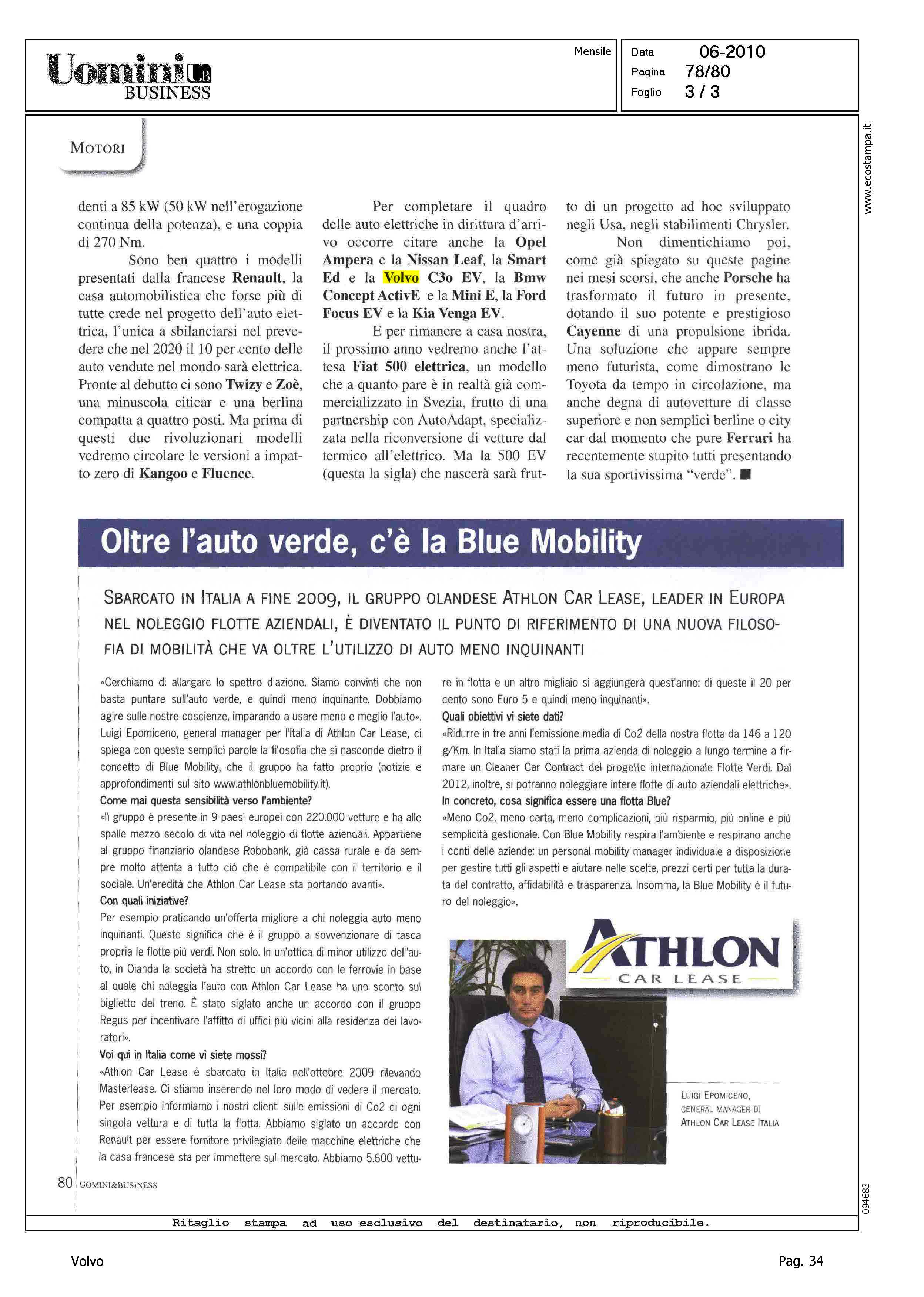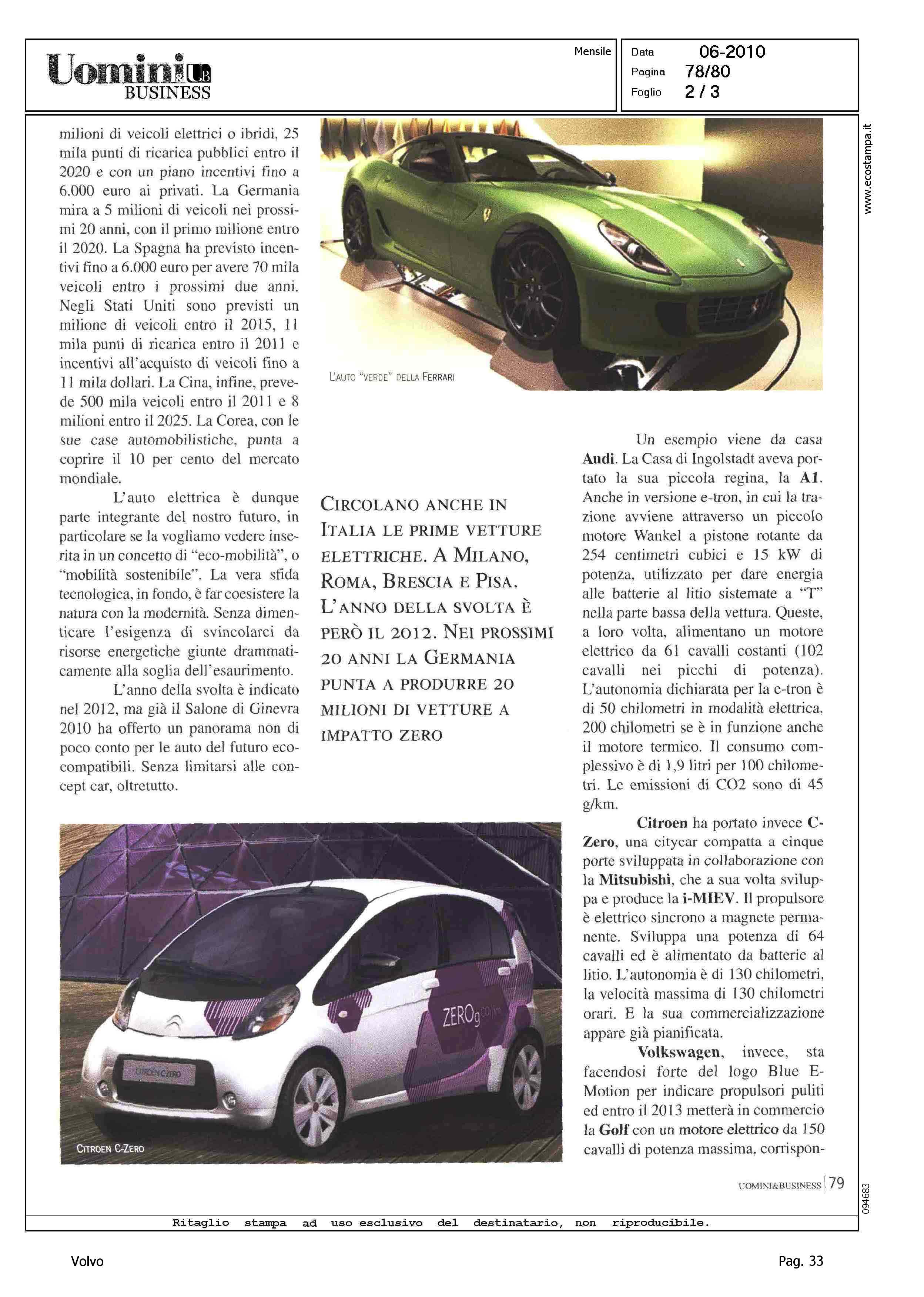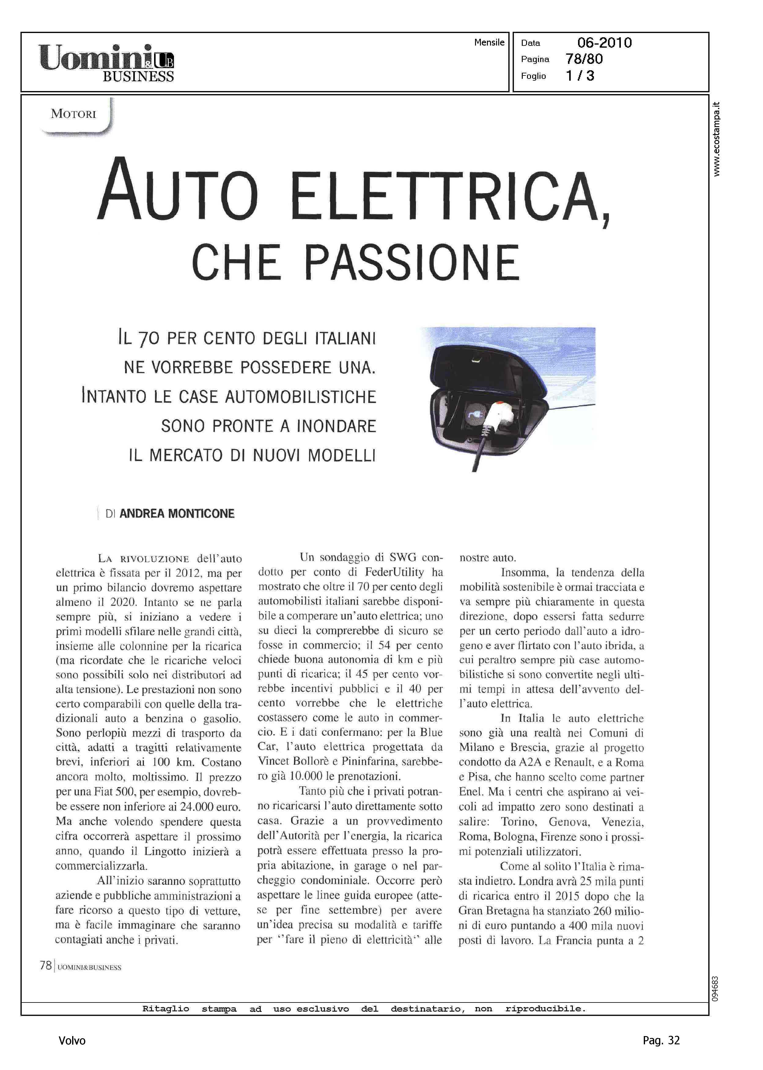 Author: MONTICONE, ANDREALine: Corporate Model: Volvo C30 Subject: - Title: AUTO ELETTRICA CHE PASSIONEHighlight: CITAZIONE, AUTO DI PROSSIMA INTRODUZIONE SUL MERCATO