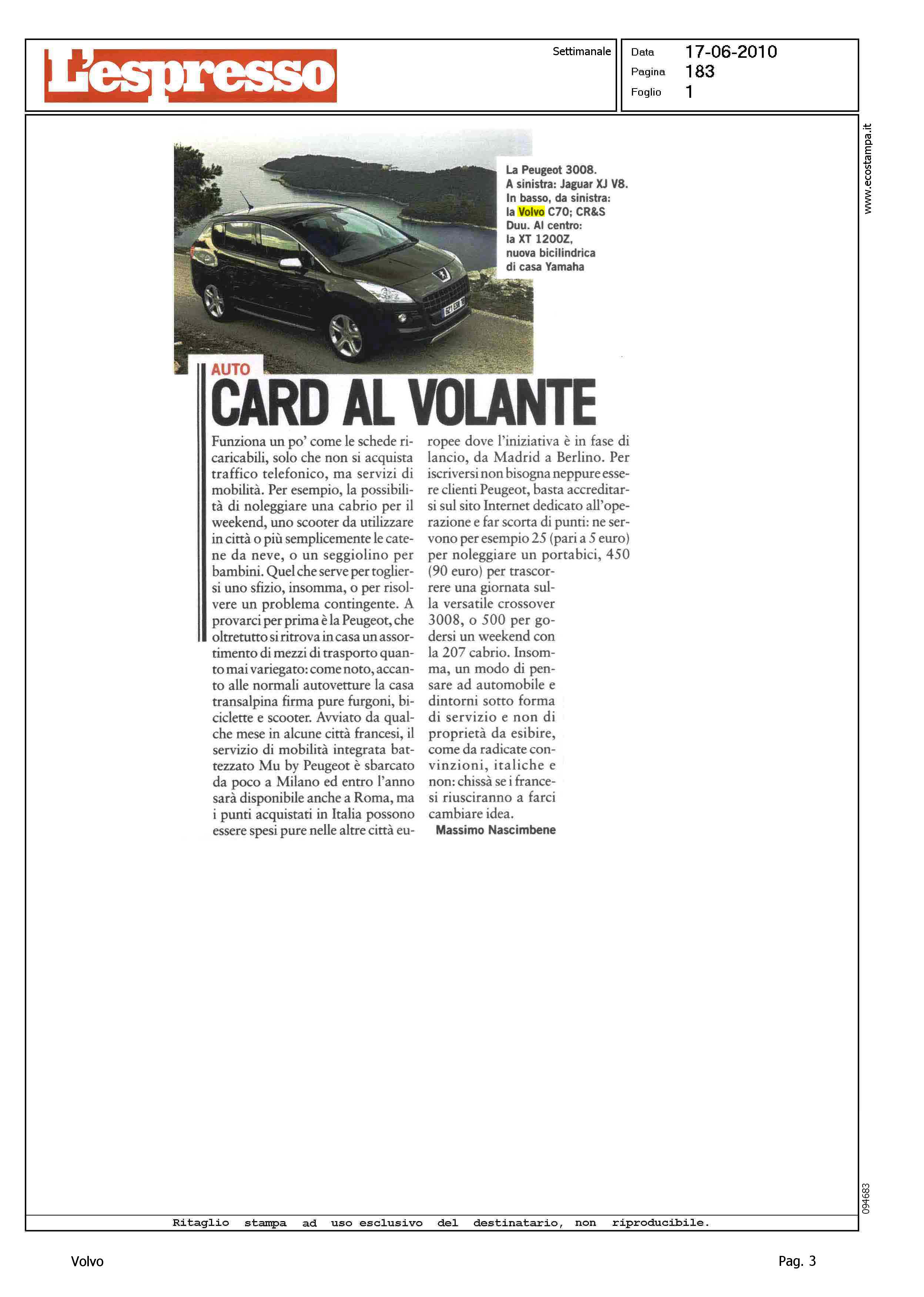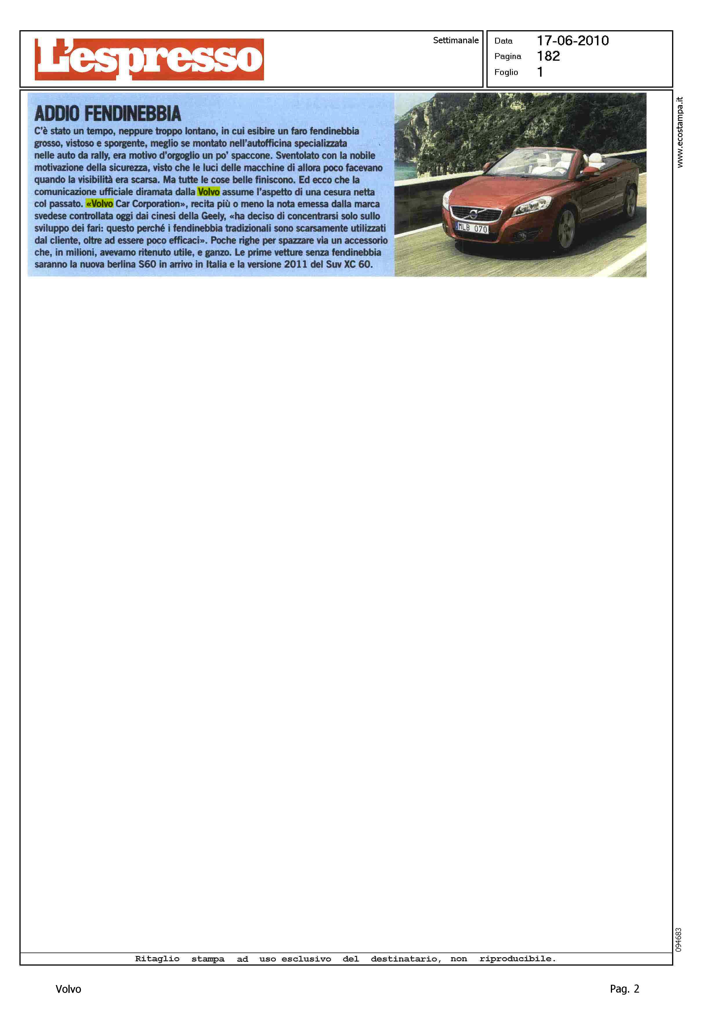 Author: Line: Corporate Model: Volvo C70 Convertible Subject: - Title: ADDIO FENDINEBBIAHighlight: SICUREZZA - FENDINEBBIA - S60 - XC60