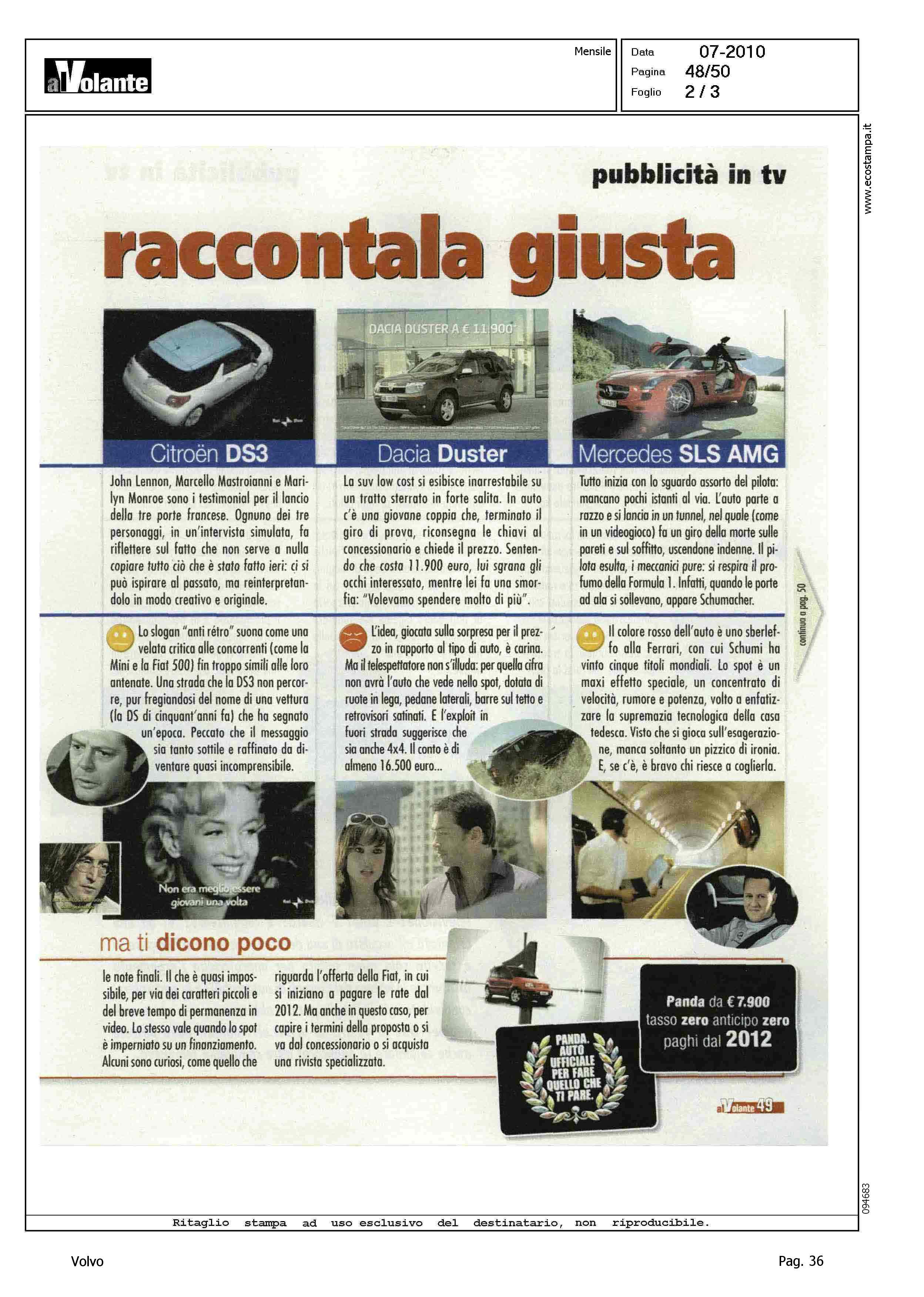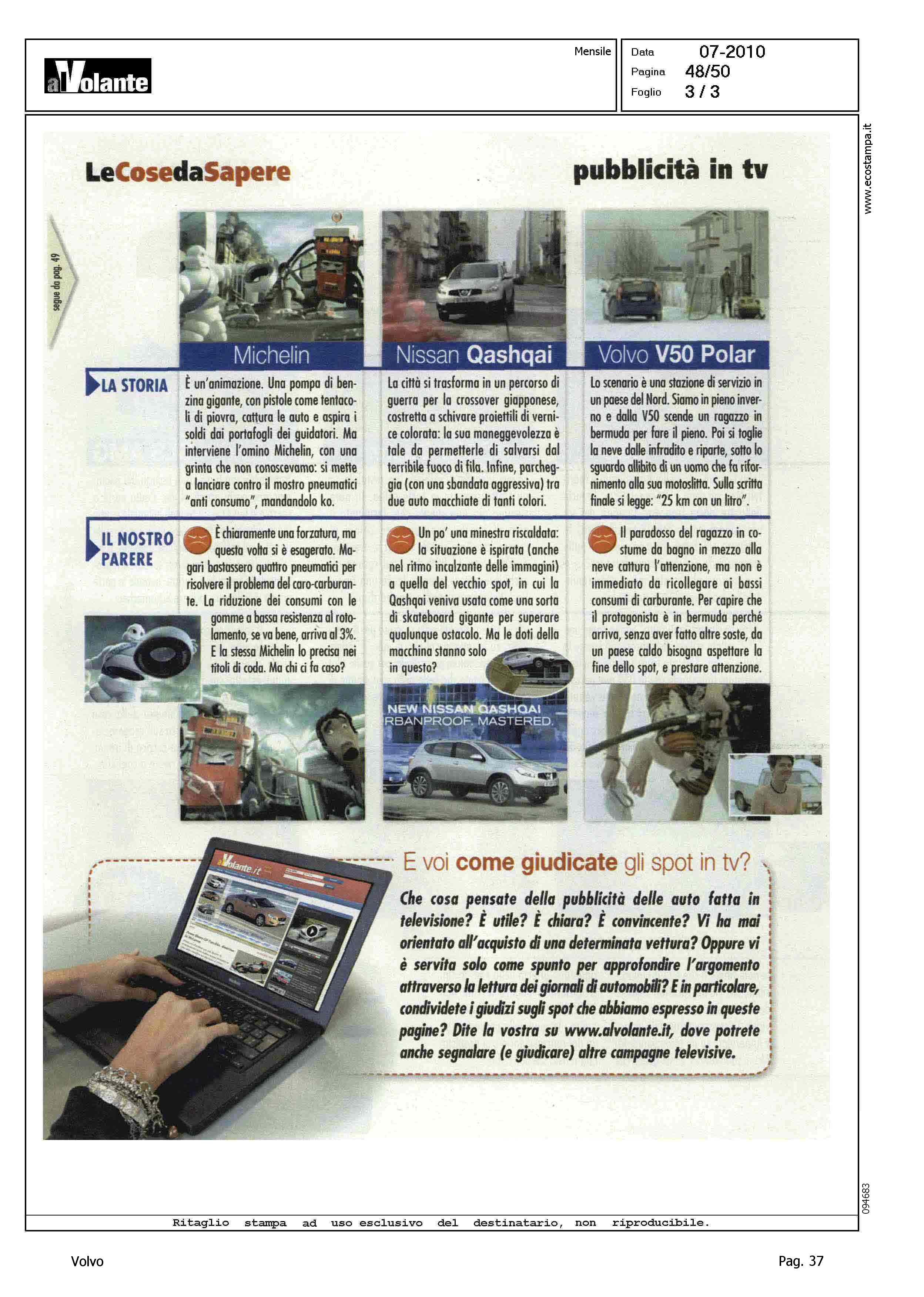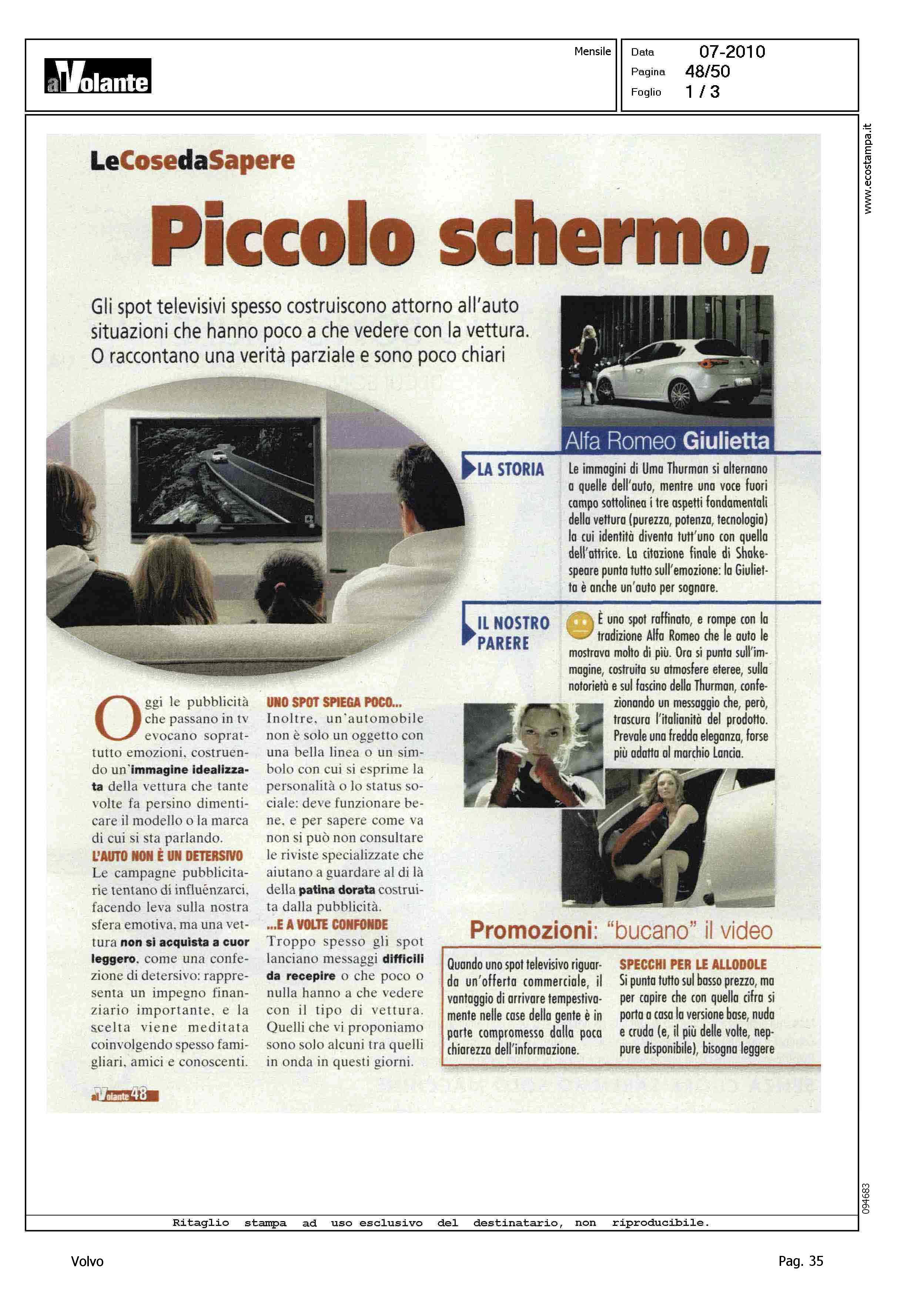 Author: Line: Corporate Model: Corporate Subject: - Title: PICCOLO SCHERMO, RACCONTALA GIUSTAHighlight: SPOT TV VOLVO V50 - PARERE DI AL VOLANTE, NEGATIVO: NON IMMEDIATO IL COLLEGAMENTO CON IL RISPARMIO DI CARBURANTE
