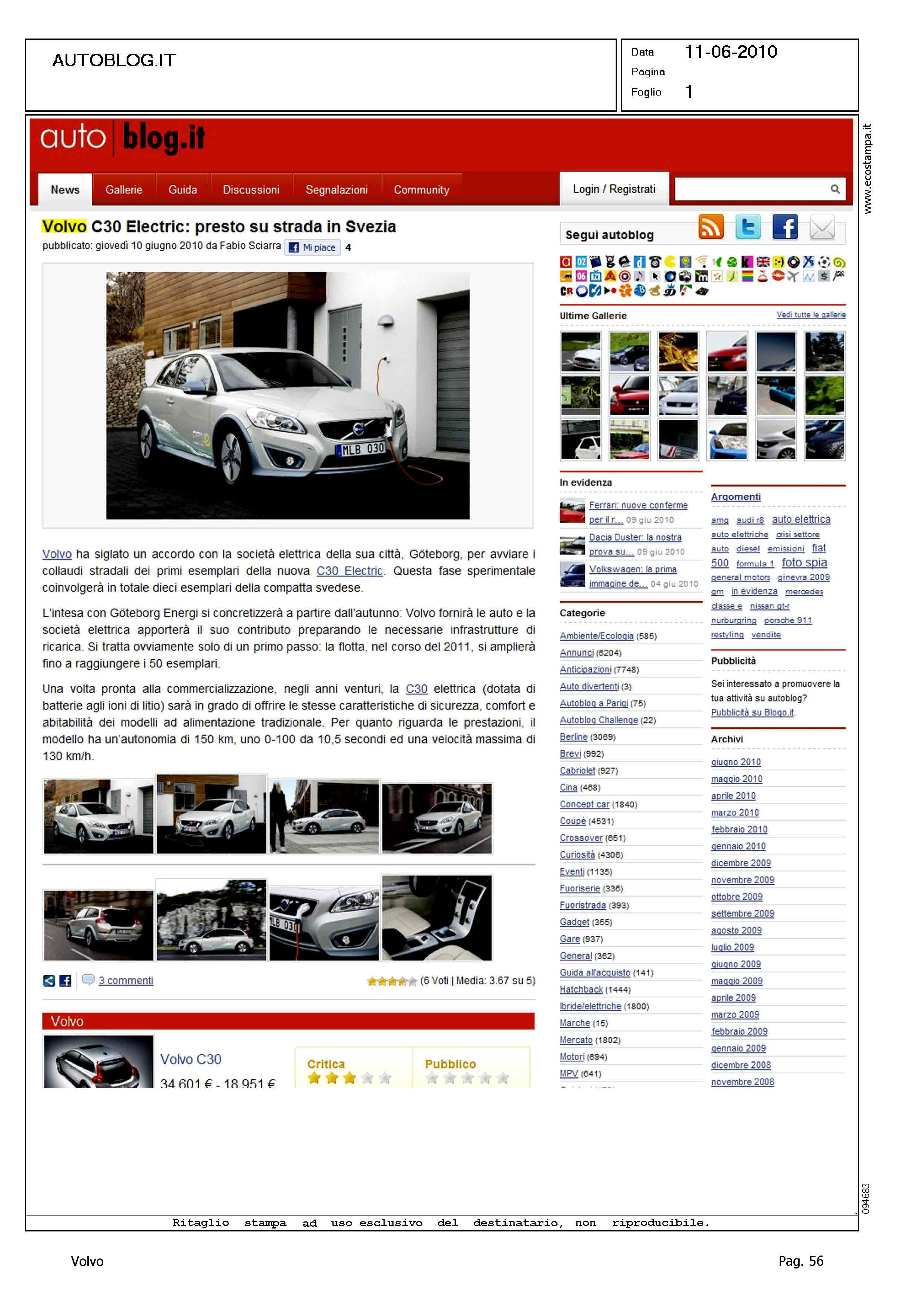 Author: Line: Corporate Model: Volvo C30 Subject: - Title: VOLVO C30 ELECTRIC: PRESTO SU STRADA IN SVEZIAHighlight: INIZIO COLLAUDI STRADALI - SICUREZZA - ABITABILITA' - CONFORT - PRESTAZIONI - AUTONOMIA