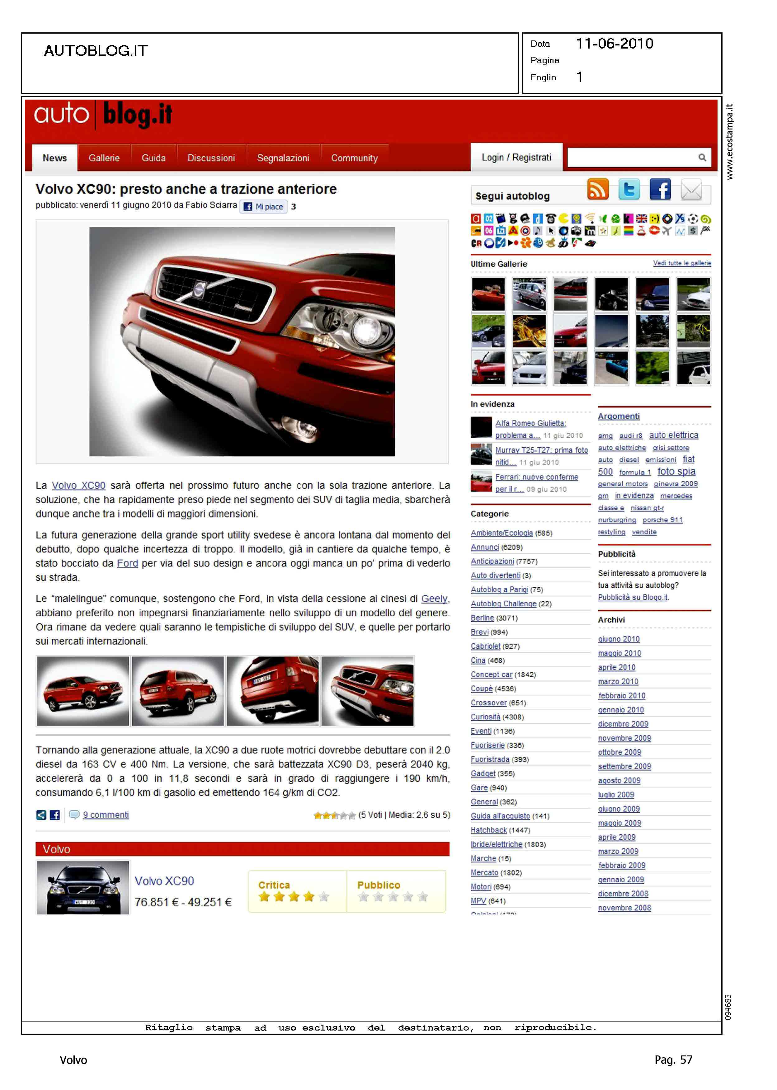 Author: Line: Corporate Model: Volvo XC90 Subject: - Title: VOLVO XC90: PRESTO ANCHE A TRAZIONE ANTERIOREHighlight: TRAZIONE ANTERIORE - MOTORE - PRESTAZIONI - CONSUMI