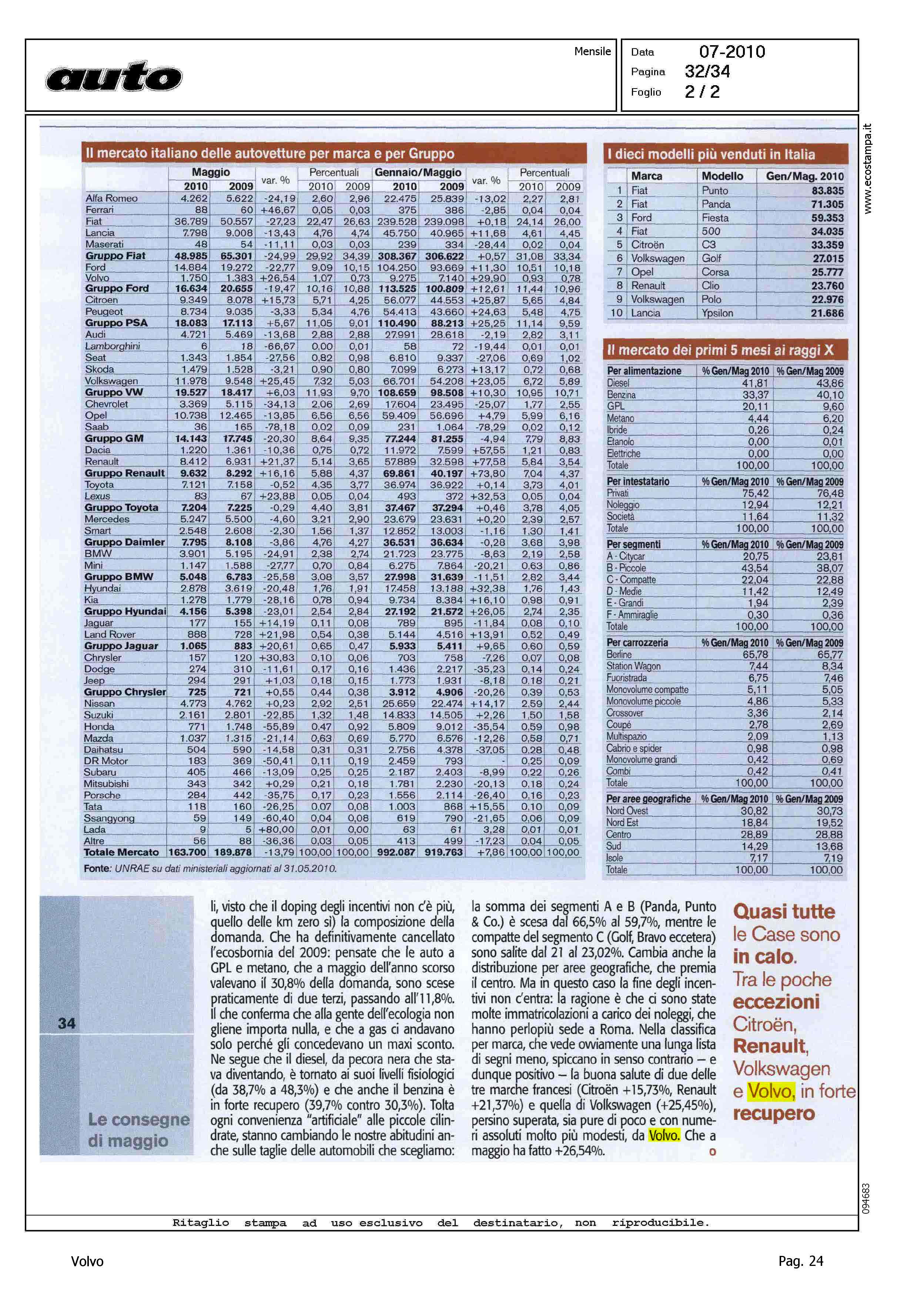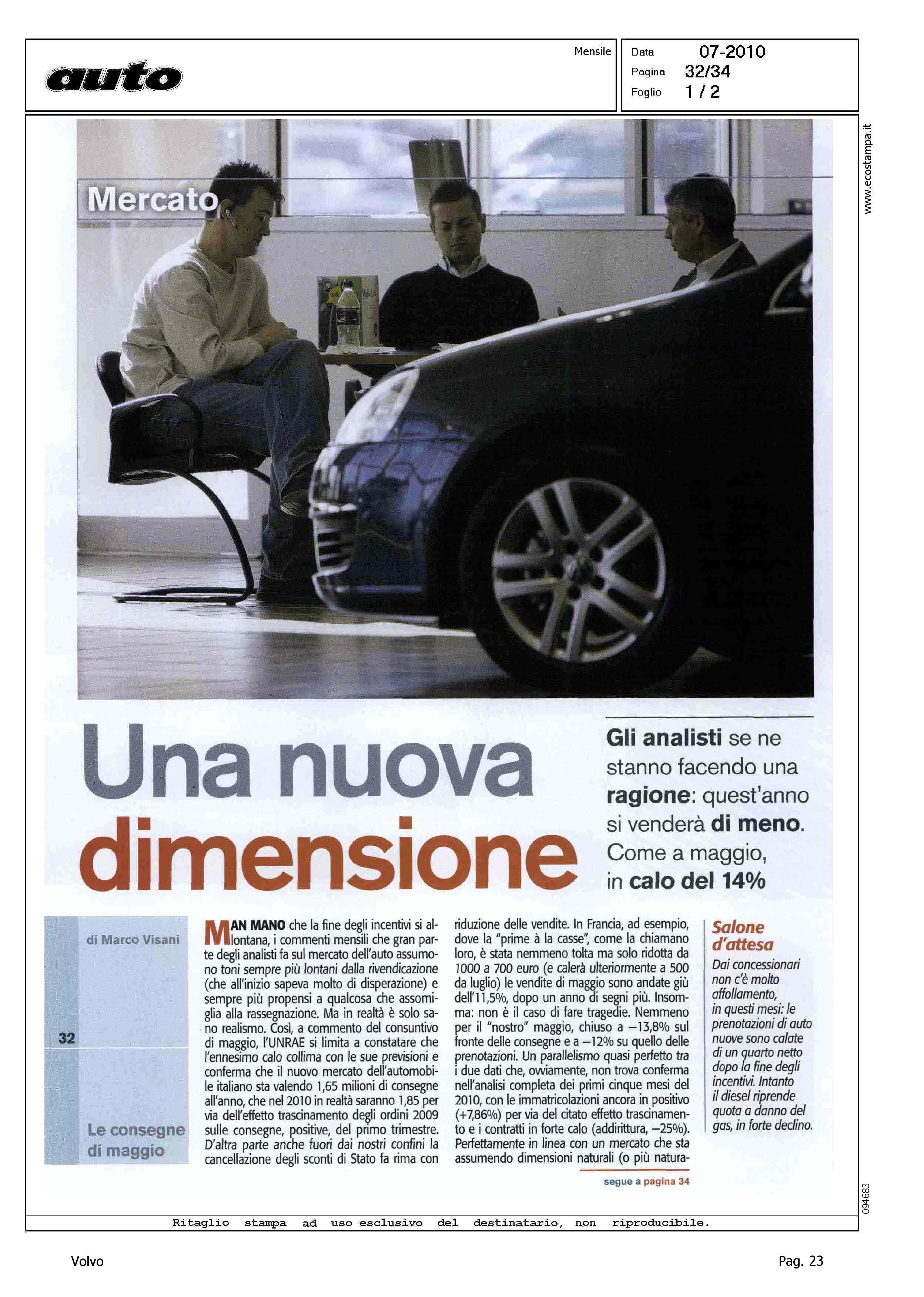 Author: VISANI, MARCOLine: Corporate Model: Corporate Subject: - Title: UNA NUOVA DIMENSIONEHighlight: TABELLE MERCATO ITALIA - "...VOLVO IN FORTE RECUPERO"