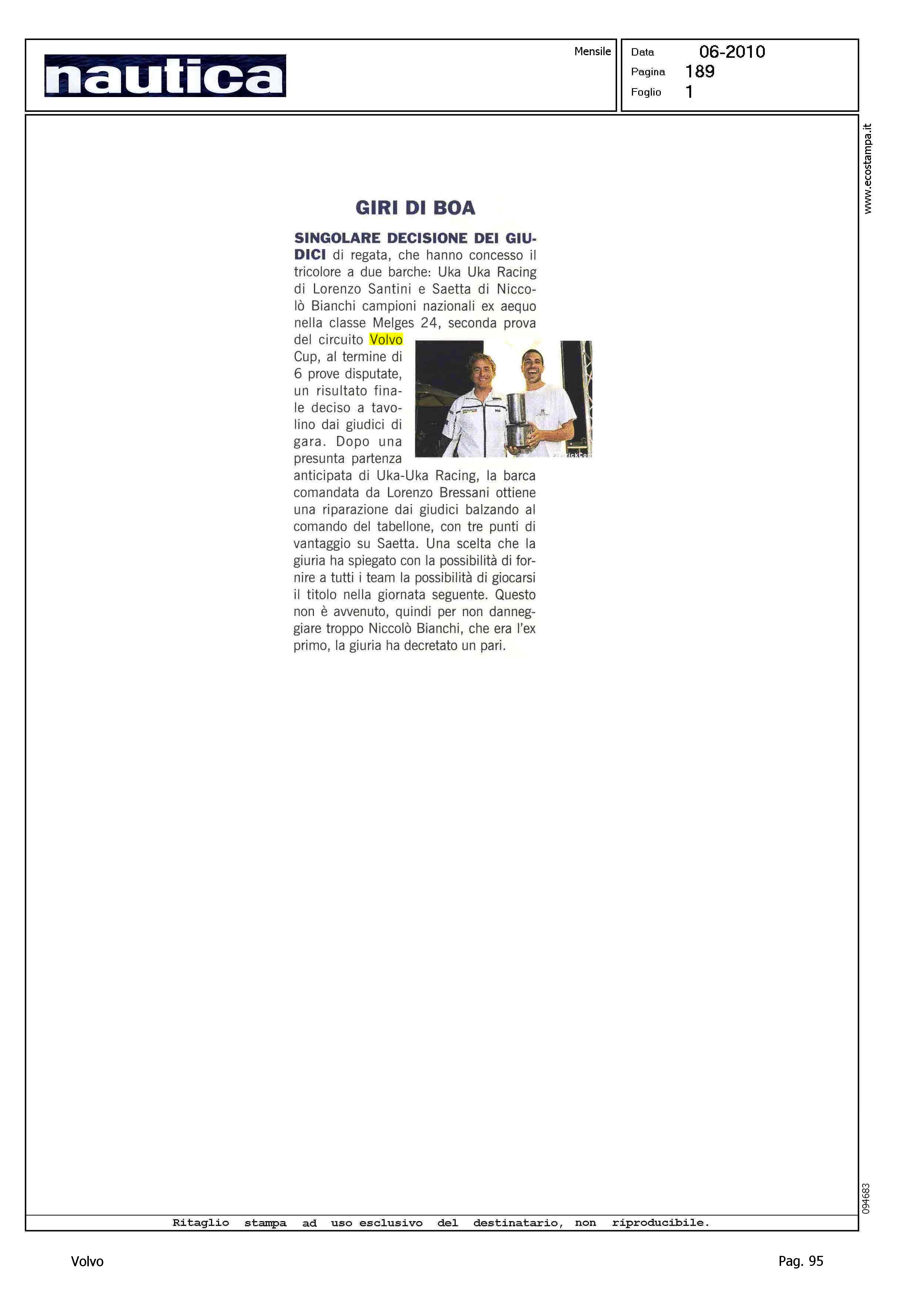 Author: Line: Corporate Model: Corporate Subject: Volvo Cup Title: GIRI DI BOAHighlight: UKA UKA RACING VS SAETTA