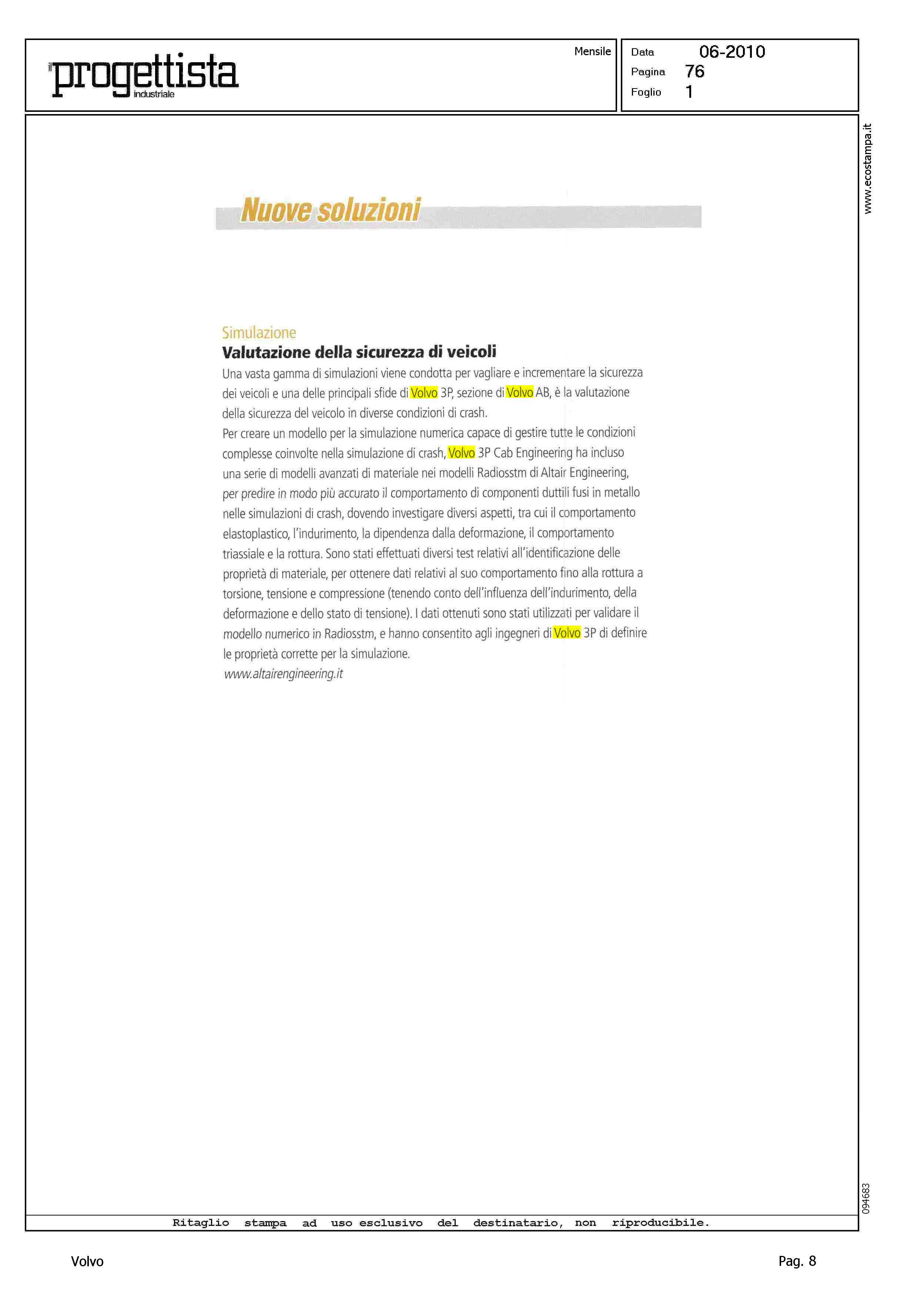 Author: Line: Corporate Model: Corporate Subject: - Title: NUOVE SOLUZIONI - SIMULAZIONE - VALUTAZIONE DELLA SICUREZZA DEI VEICOLIHighlight: SICUREZZA