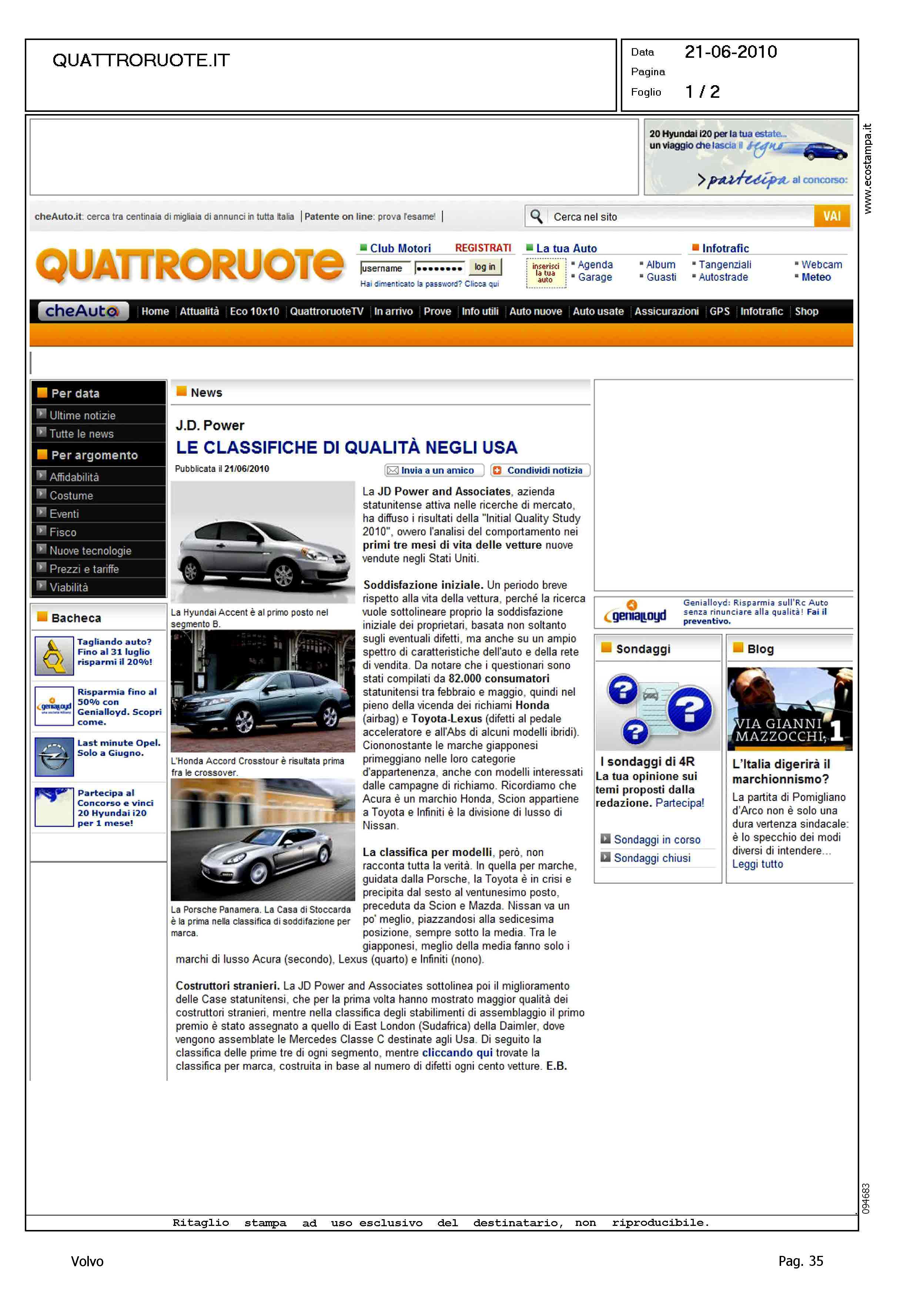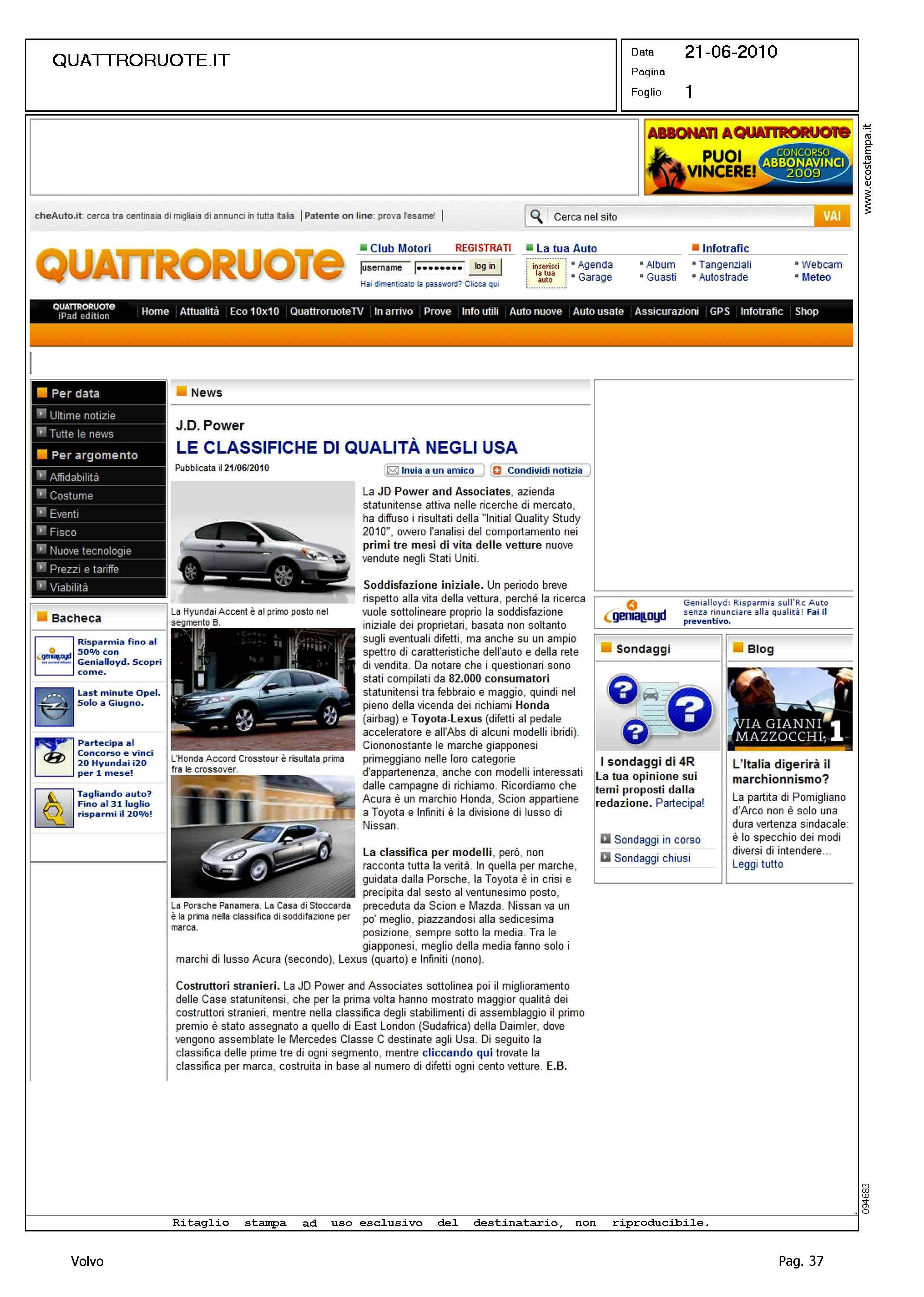 Title: JD POWER - LE CLASSIFICHE DI QUALITA' NEGLI USA