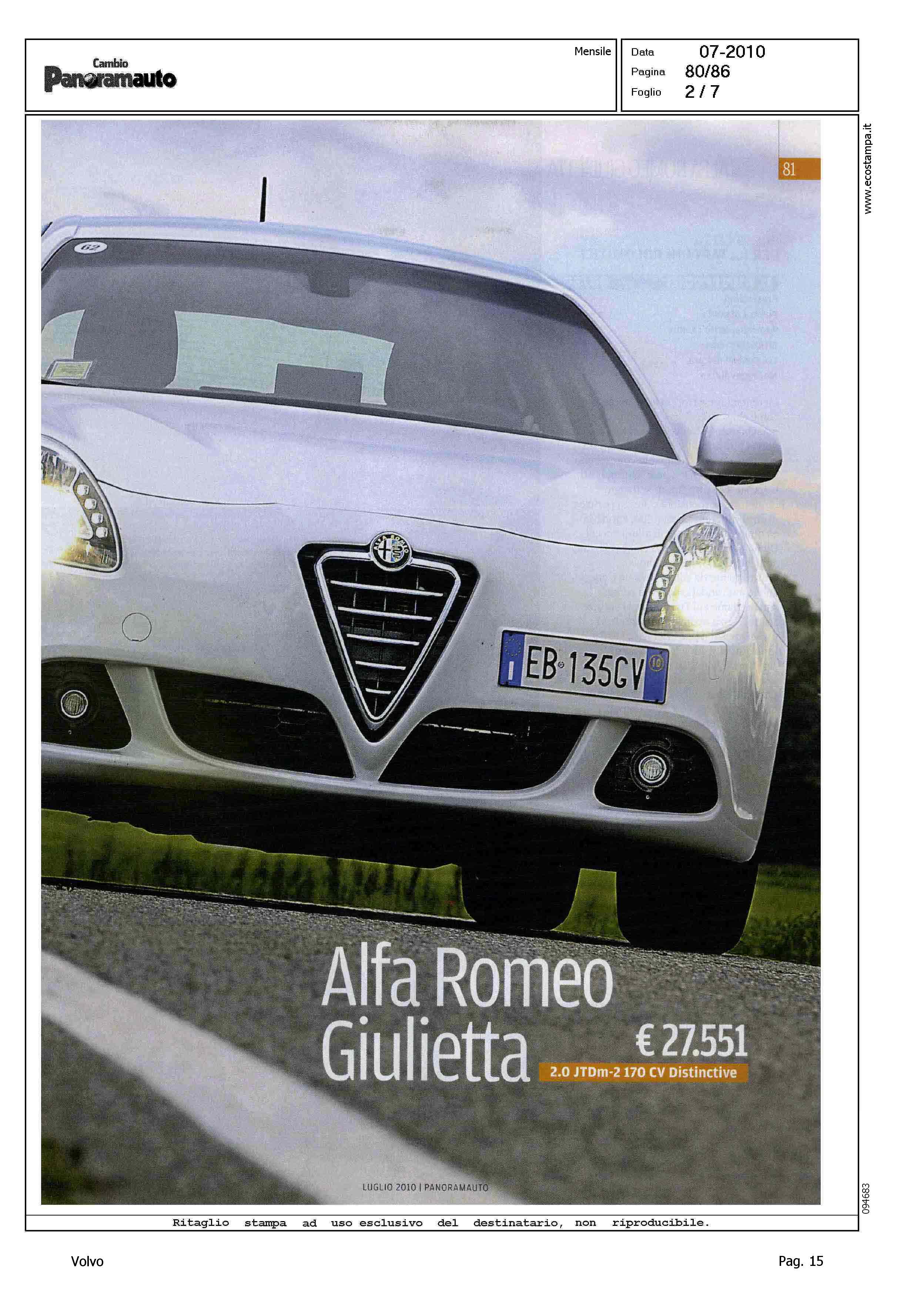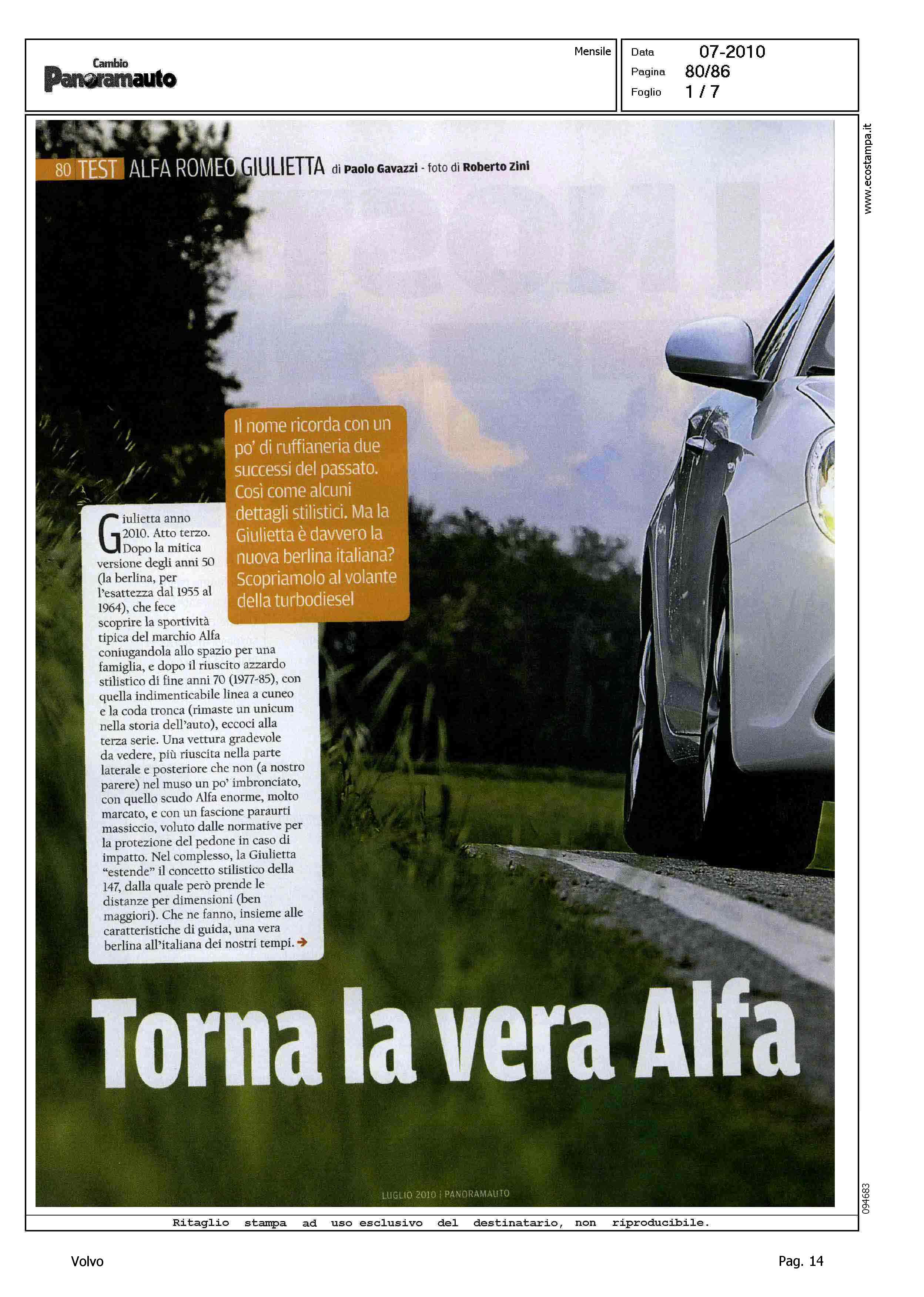 Highlight: LE RIVALI DI AR GIULIETTA - VOLVO C30 D5 MOMENTUM - BMW 120D ATTIVA 5P, VW GOLF GTD 5P - SCHEDA TECNICA SINTETICA - VOLVO C30 HA IN PIU' VS AR GIULIETTA: POTENZA SUPERIORE, COMPORTAMENTO SPORTIVO - IN MENO, CONSUMO ELEVATO, SOLO 4 POSTI