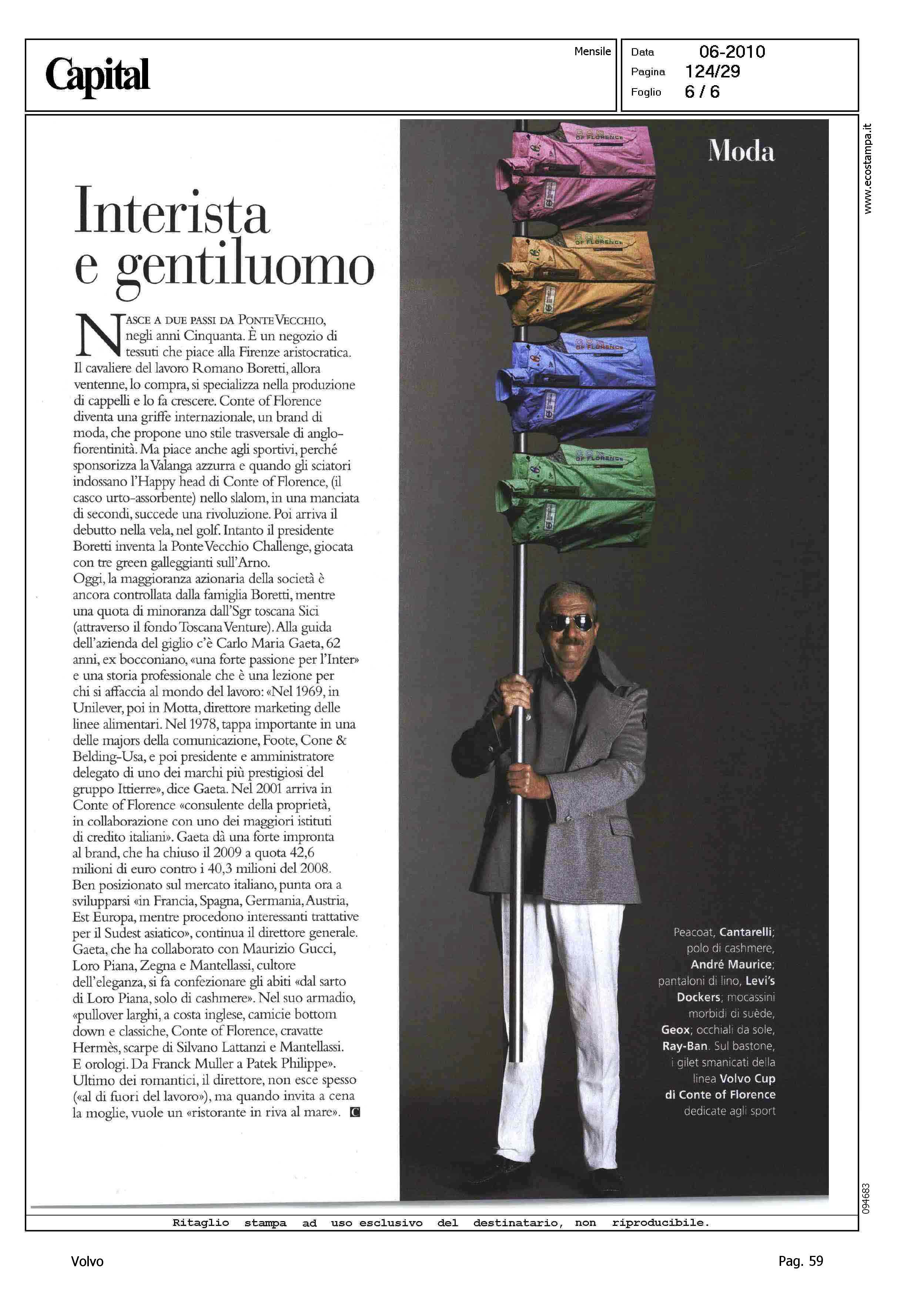 Author: GASTEL, GIOVANNILine: Corporate Model: Corporate Subject: Volvo Cup Title: DALLA TESTA AL GREENHighlight: PROFILO DI CARLO MARIA GAETA