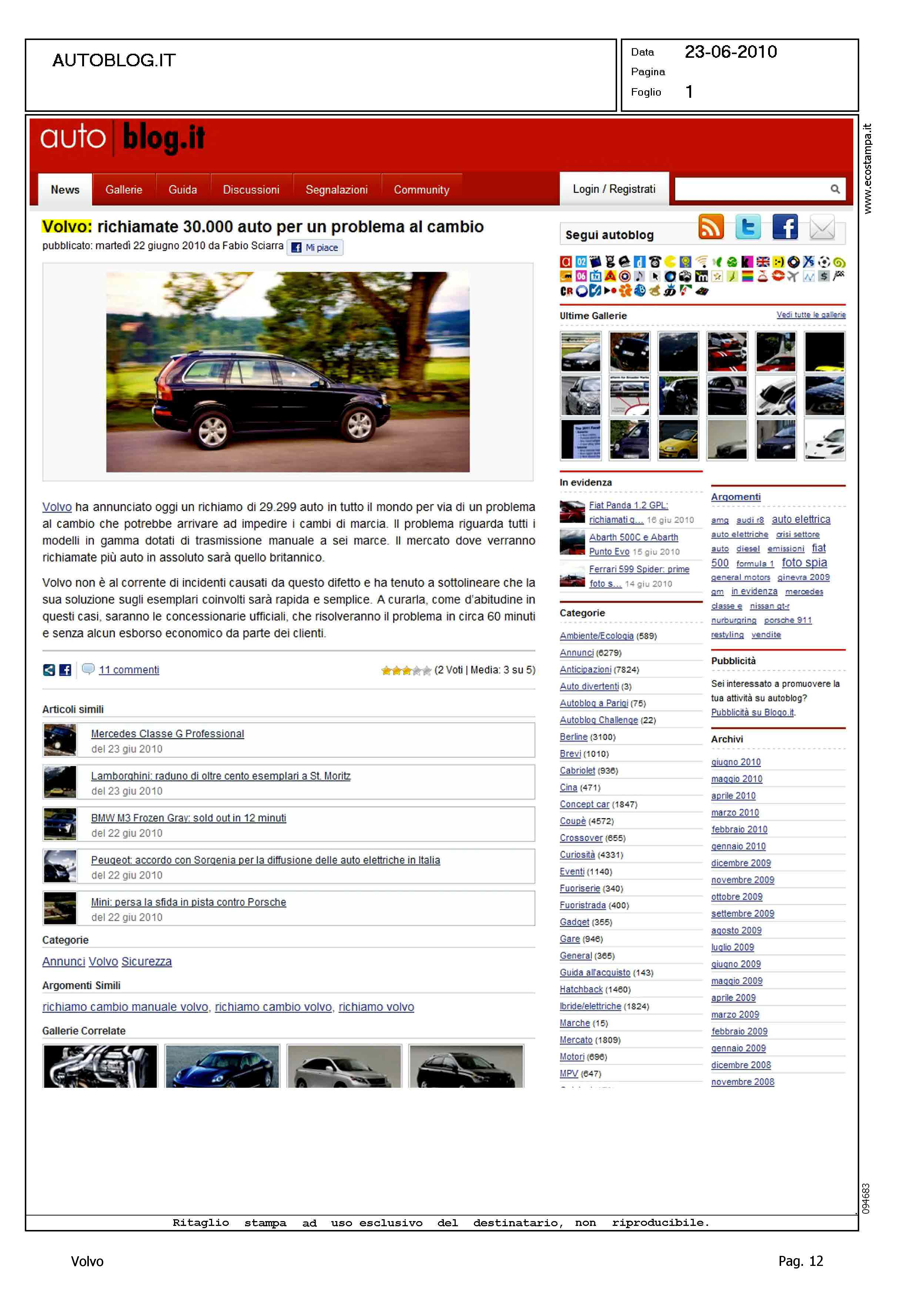 Title: VOLVO: RICHIAMATE 30.000 AUTO PER UN PROBLEMA AL CAMBIO