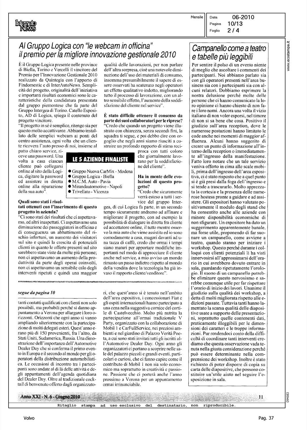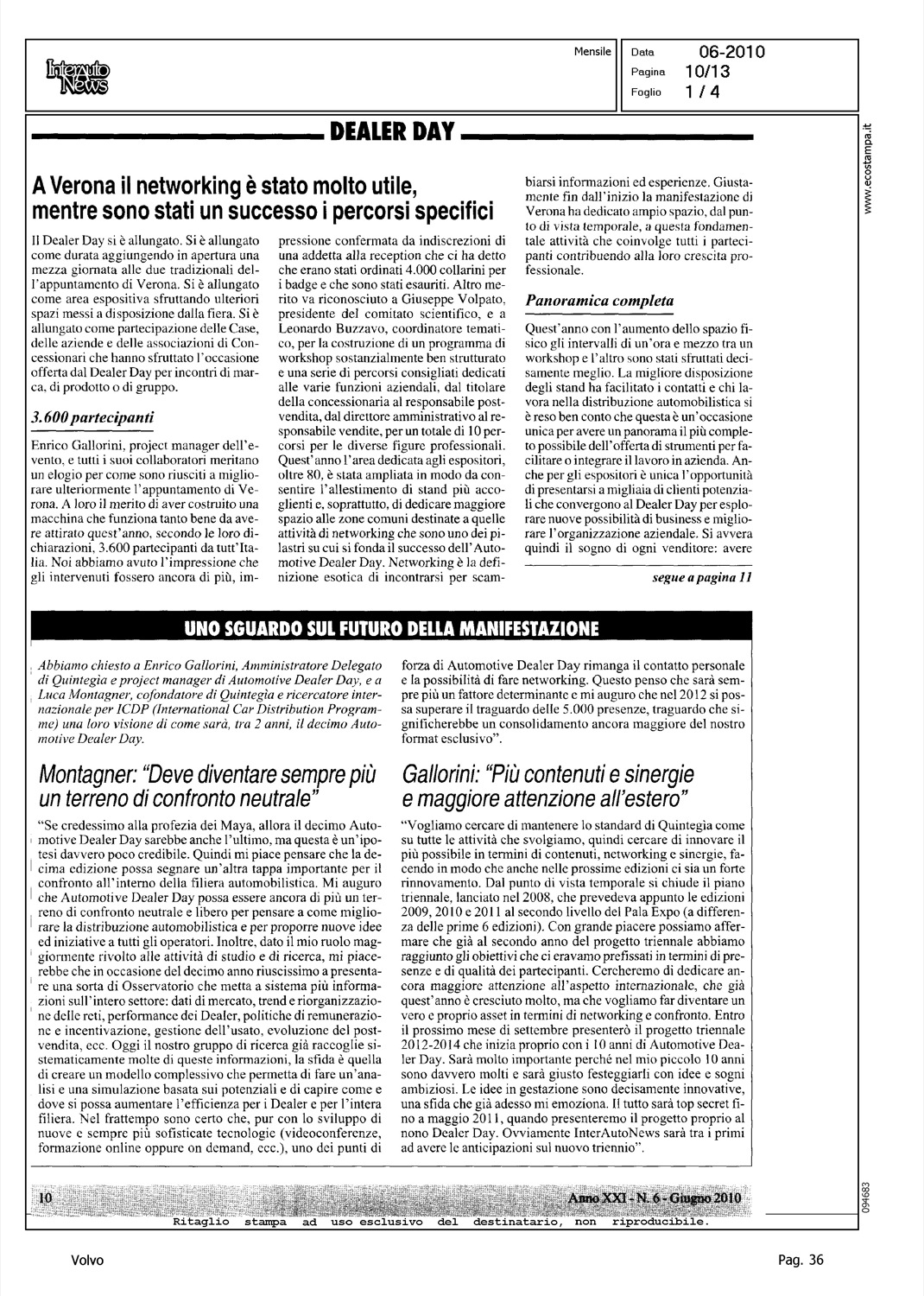 Author: Line: Corporate Model: Corporate Subject: - Title: DEALER DAY - A VERONA IL NETWORKING E' STATO MOLTO UTILE, MENTRE SONO STATI UN SUCCESSO I PERCORSI SPECIFICIHighlight: TABELLE POSIZIONE VOLVO