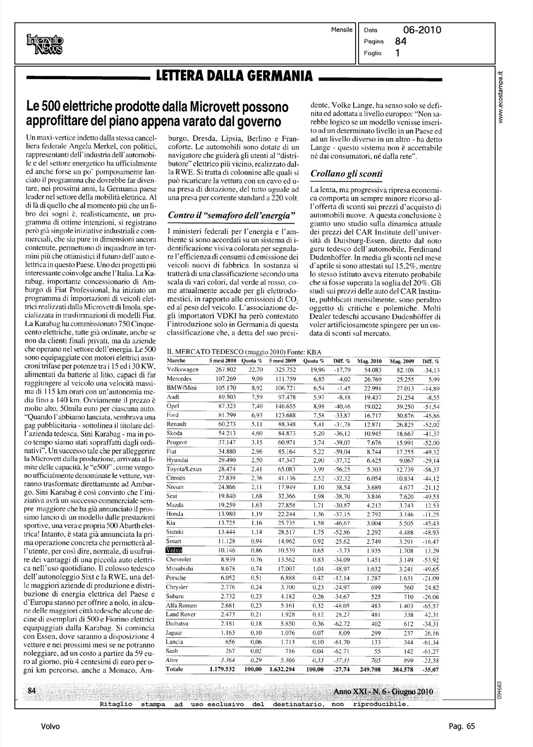 Title: LETTERA DALLA GERMANIA LE 500 ELETTRICHE PRODOTTE DALLA MICROVETT POSSONO APPROFITTARE DEL PIANO APPENA VARATO DAL GOVERNO