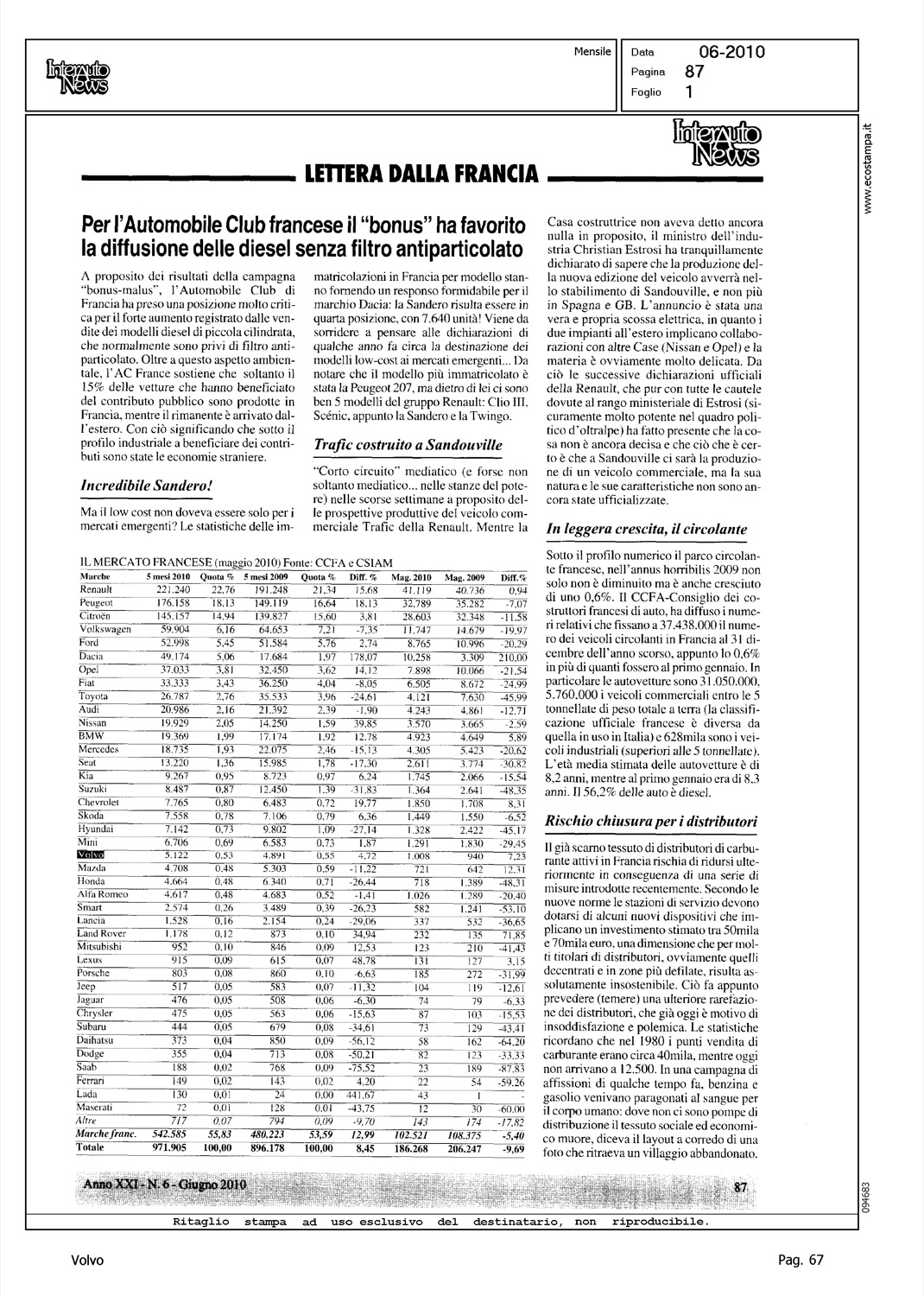 Title: LETTERA DALLA FRANCIA - PER L'AUTOMOBILE CLUB FRANCESE IL "BONUS" HA FAVORITO LA DIFFUSIONE DELLE DIESEL SENZA FILTRO ANTIPARTICOLATO