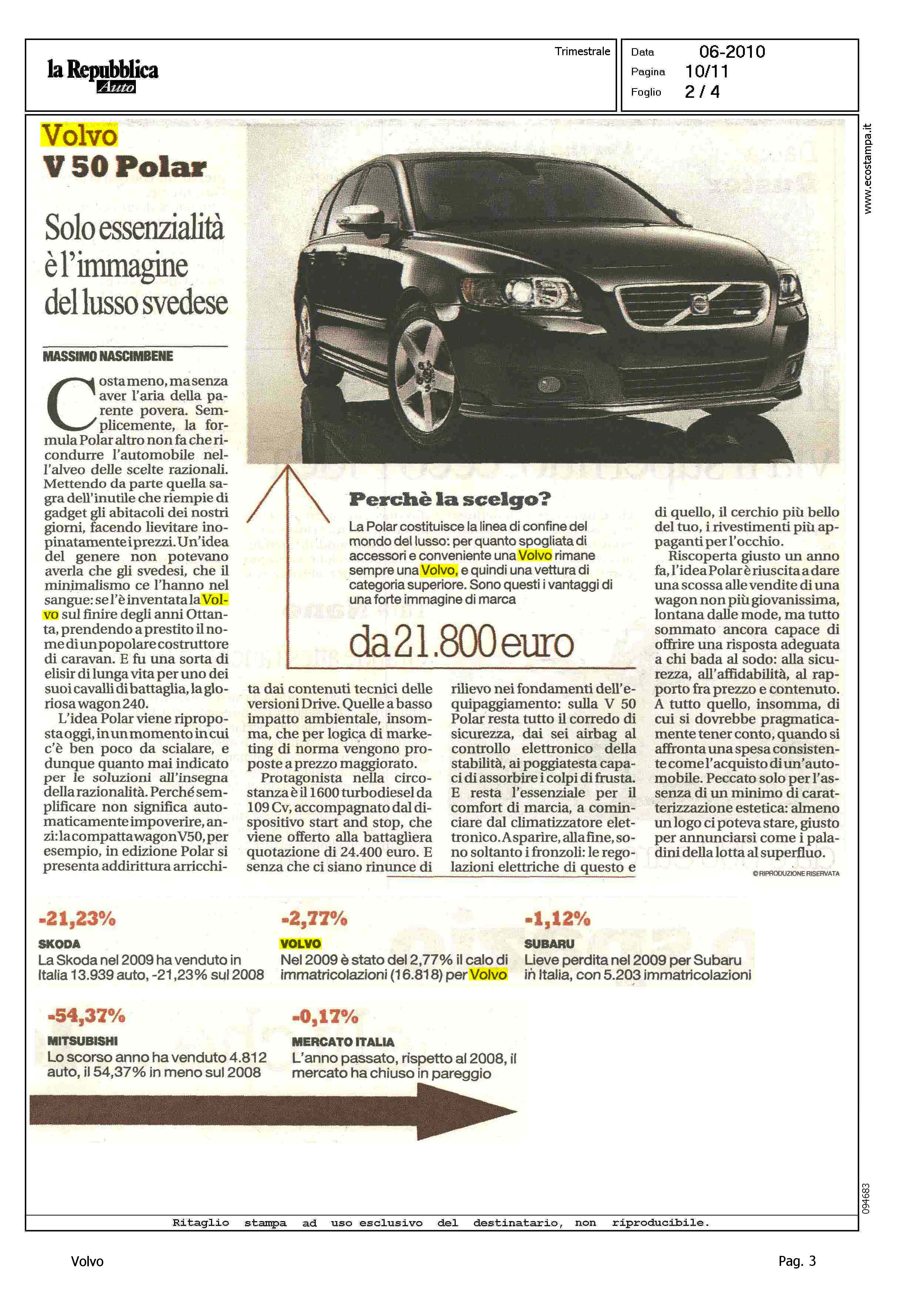 Highlight: POLAR - PROFILO DI MISSIONE - PREZZO - VALORE VOLVO - DESIGN - IMMATRICOLAZIONI 2009 - IDEA POLAR - VERSIONI DRIVE - MOTORE - ACCESSORI - SICUREZZA - MANCANZA DI LOGO POLAR