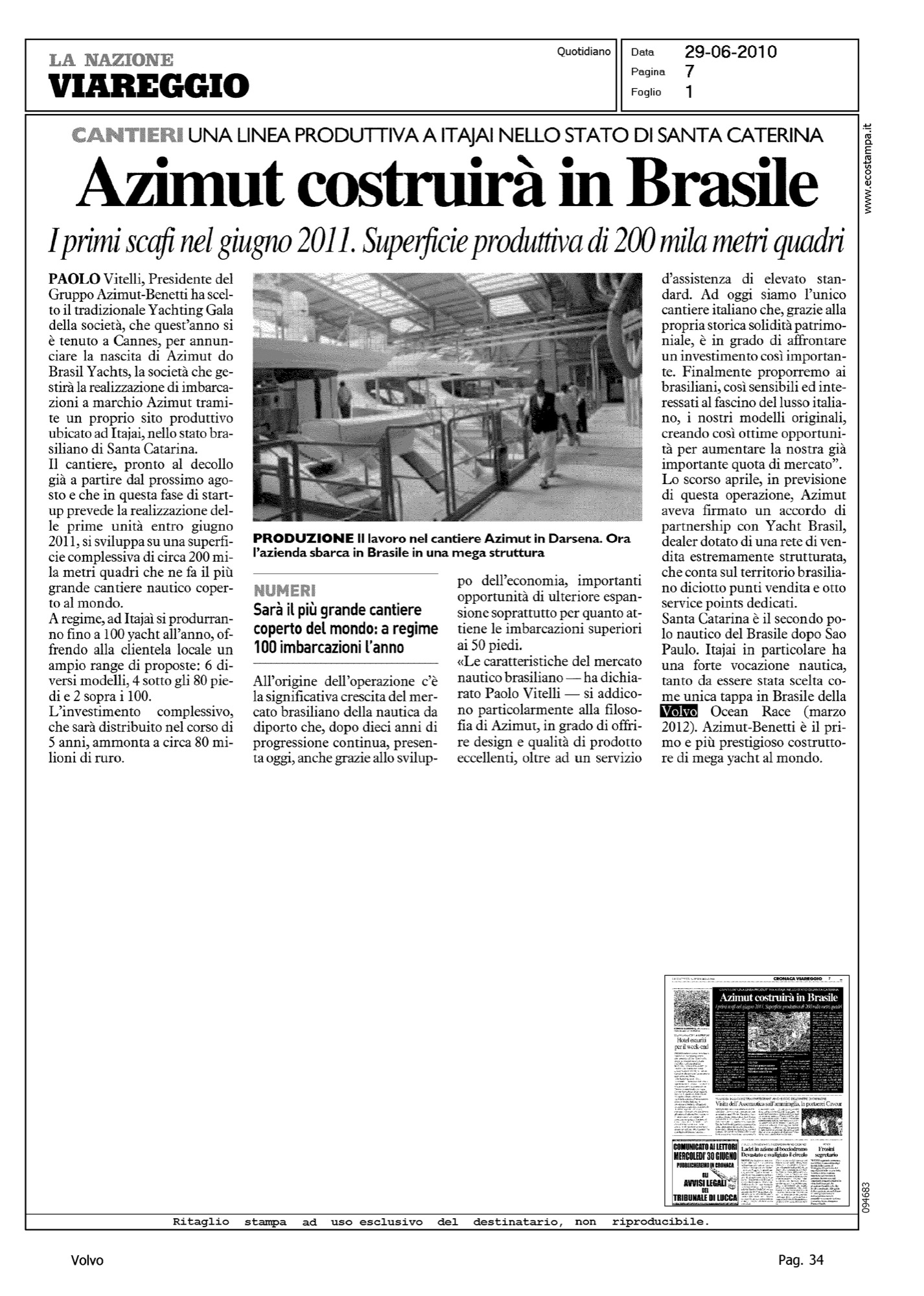 Author: Line: Corporate Model: Corporate Subject: Volvo Ocean Race Title: AZIMUT COSTRUIRA' IN BRASILEHighlight: (EDIZIONE VIAREGGIO) - AZIMUT IN BRASILE, ITAJAI TAPPA VOR 2011-2012