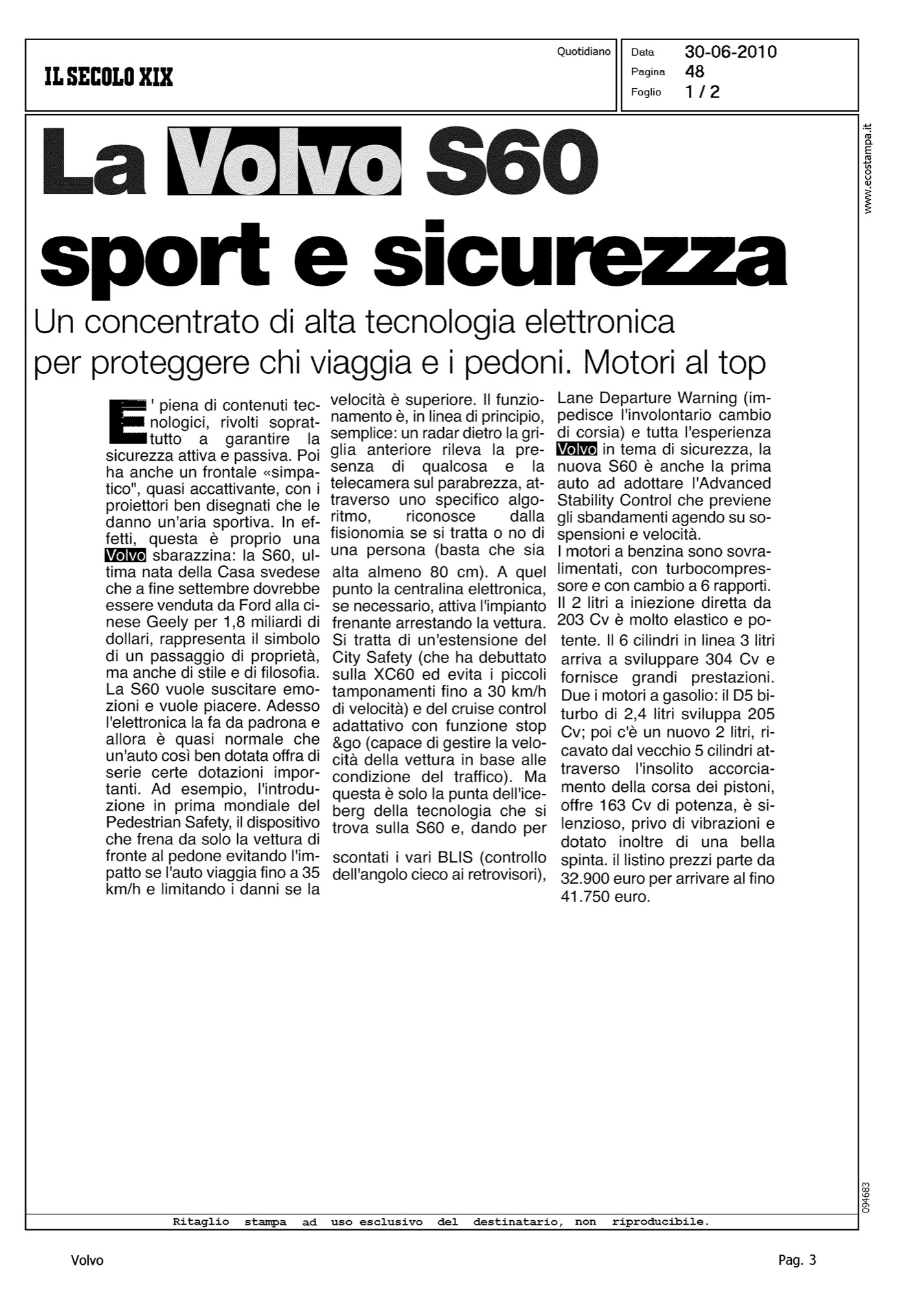 Highlight: PROFILO PRODOTTO - VALORE VOLVO - DESIGN - GEELY - SICUREZZA - PEDESTRIAN DETECTION - DESCRIZIONE FUNZIONAMENTO - CITY SAFETY - DISPOSITIVI SICUREZZA ATTIVA - DINAMICA DI MARCIA - MOTORI - POTENZE - PREZZI
