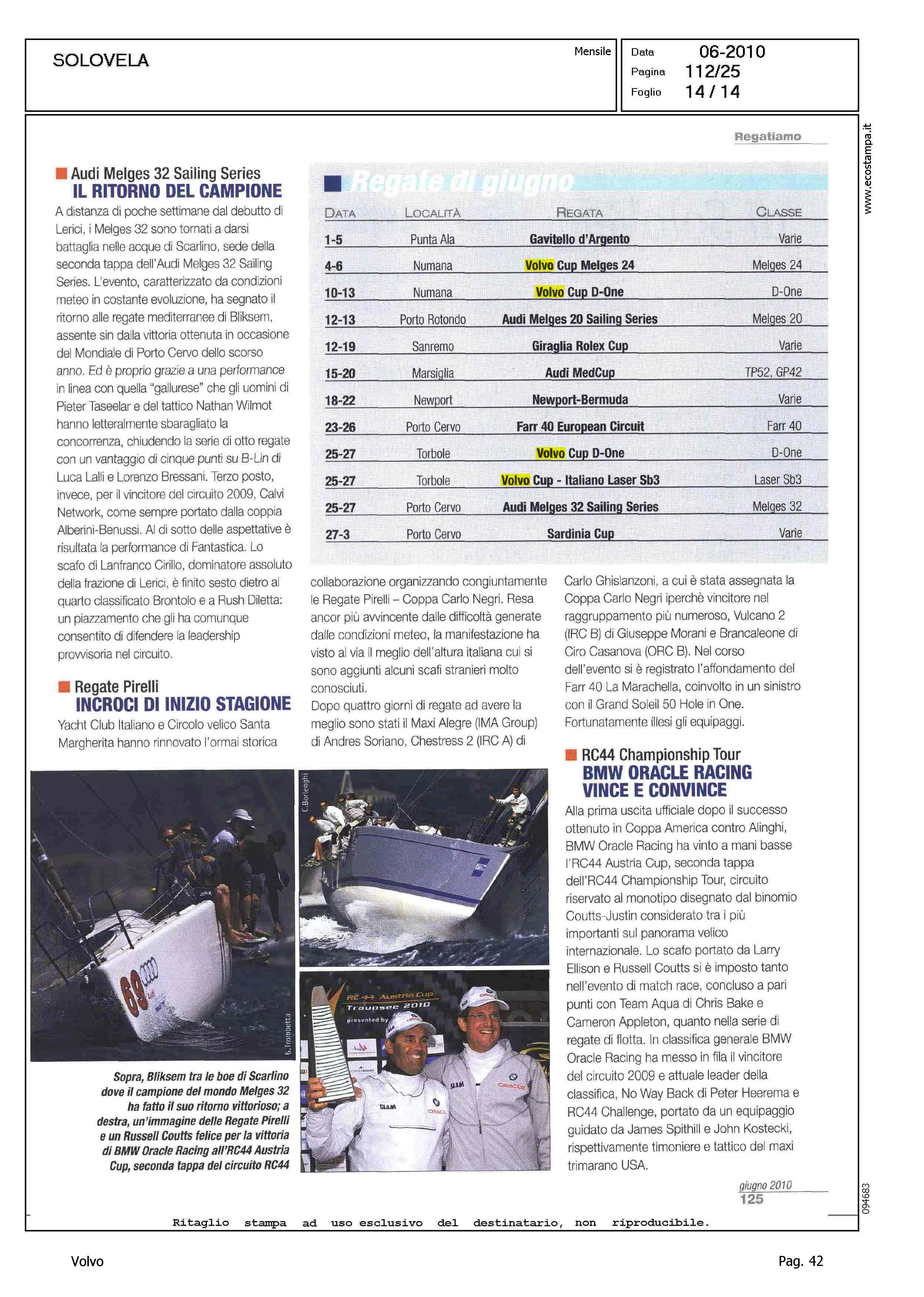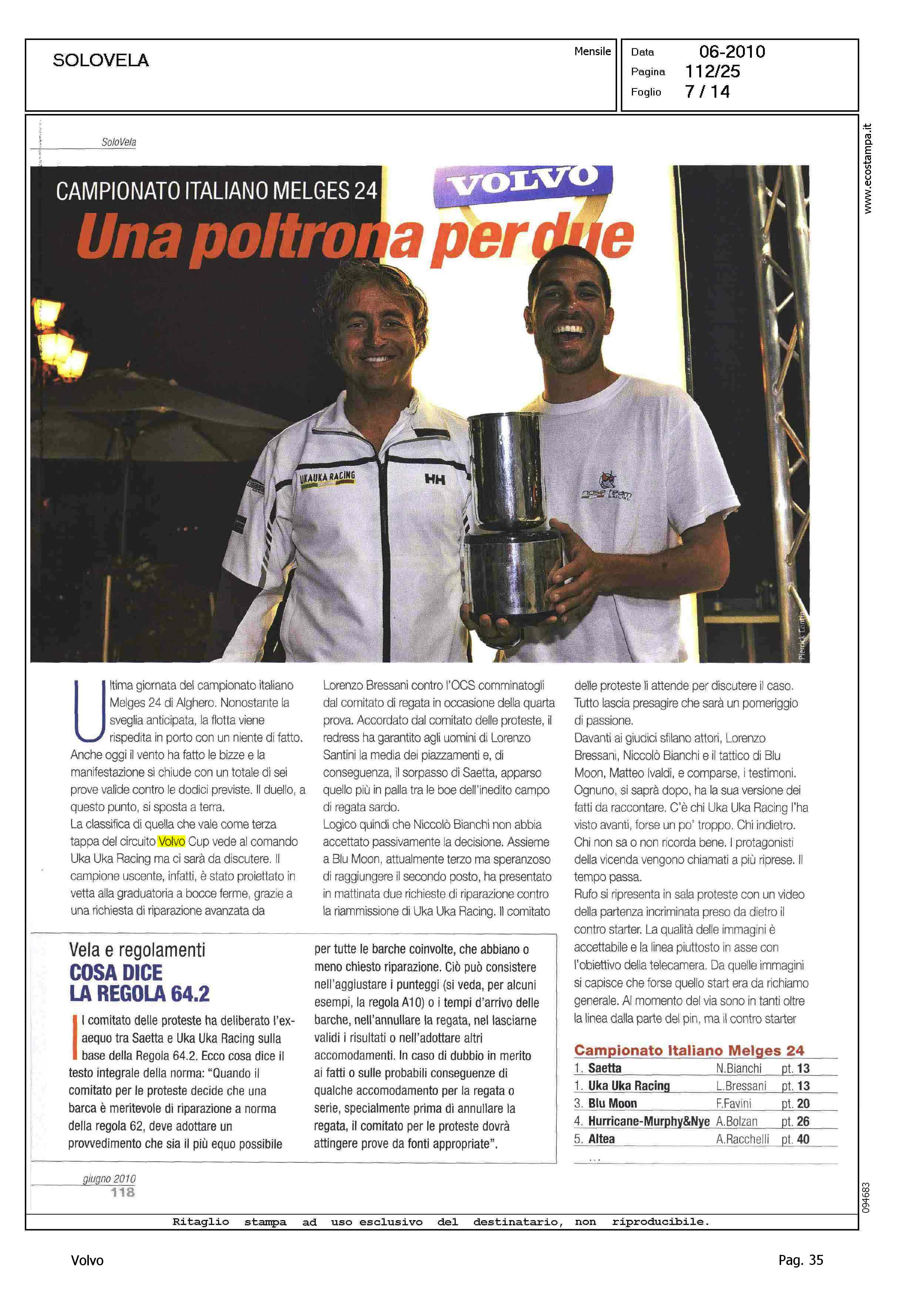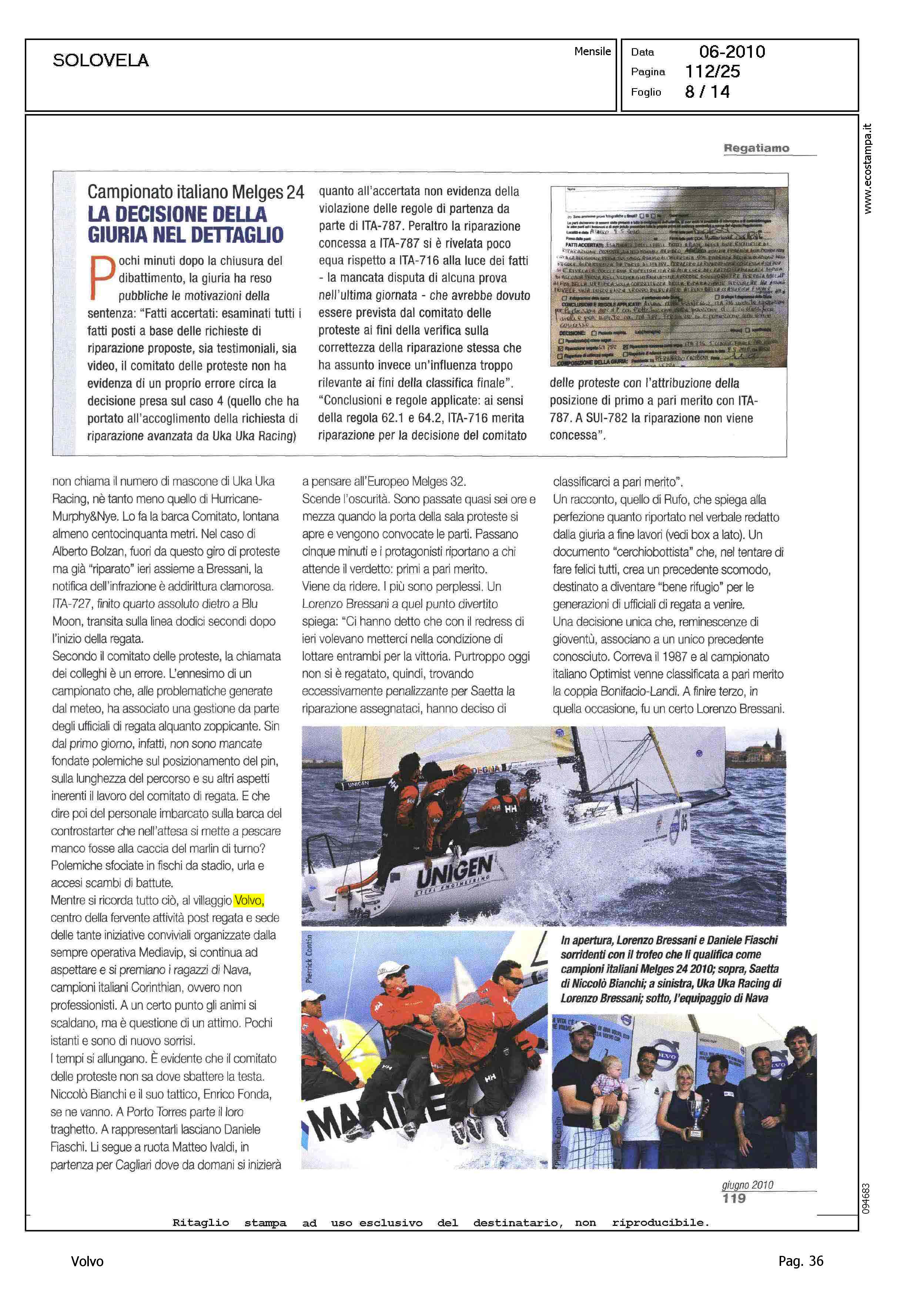 Author: MELANDRI, MAUROLine: Corporate Model: Corporate Subject: Volvo Cup Title: REGATIAMOHighlight: REGATE, ALGHERO (MELGES 24) - NUMANA (LASER SB-3) - FOLLONICA (D-ONE)