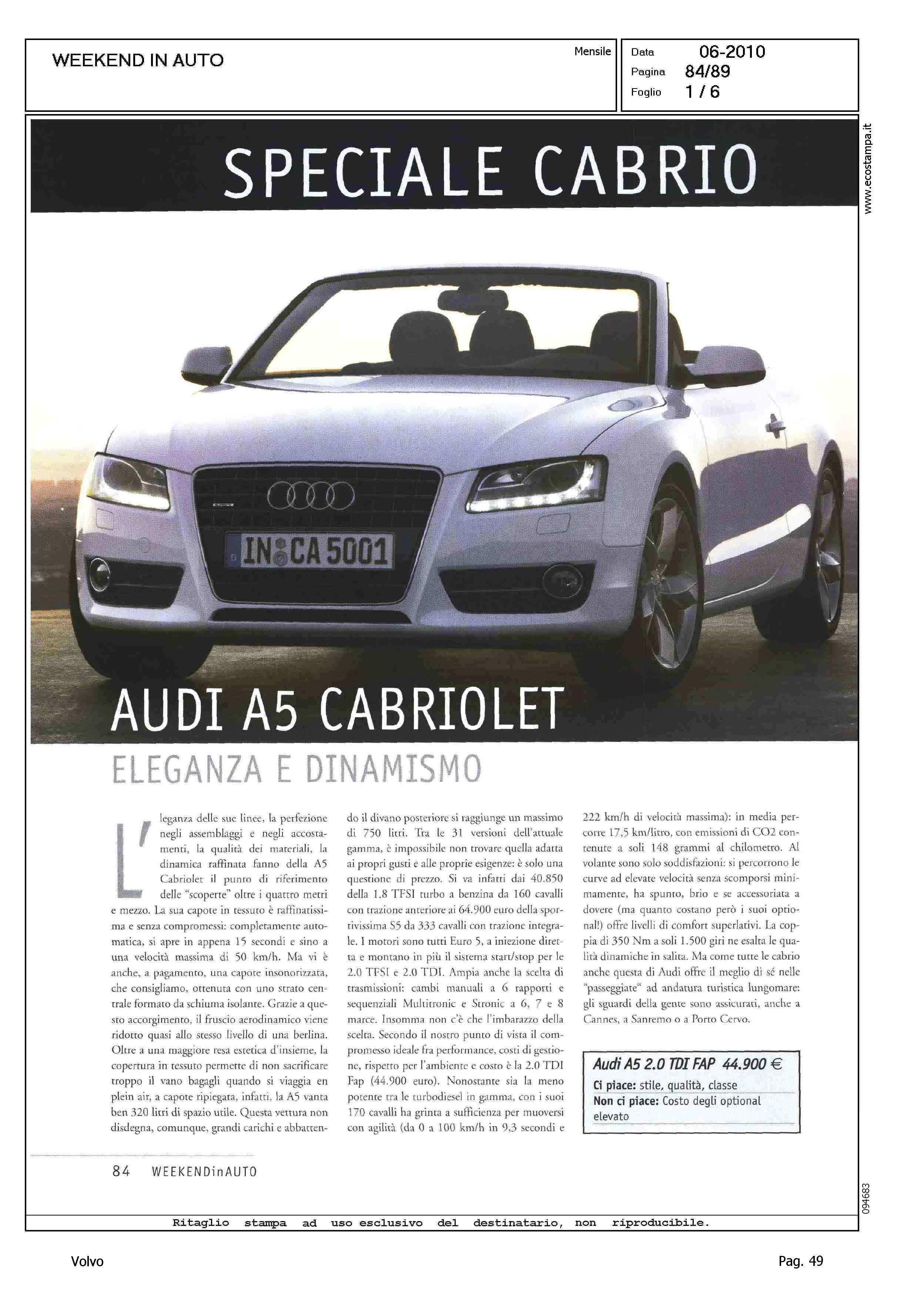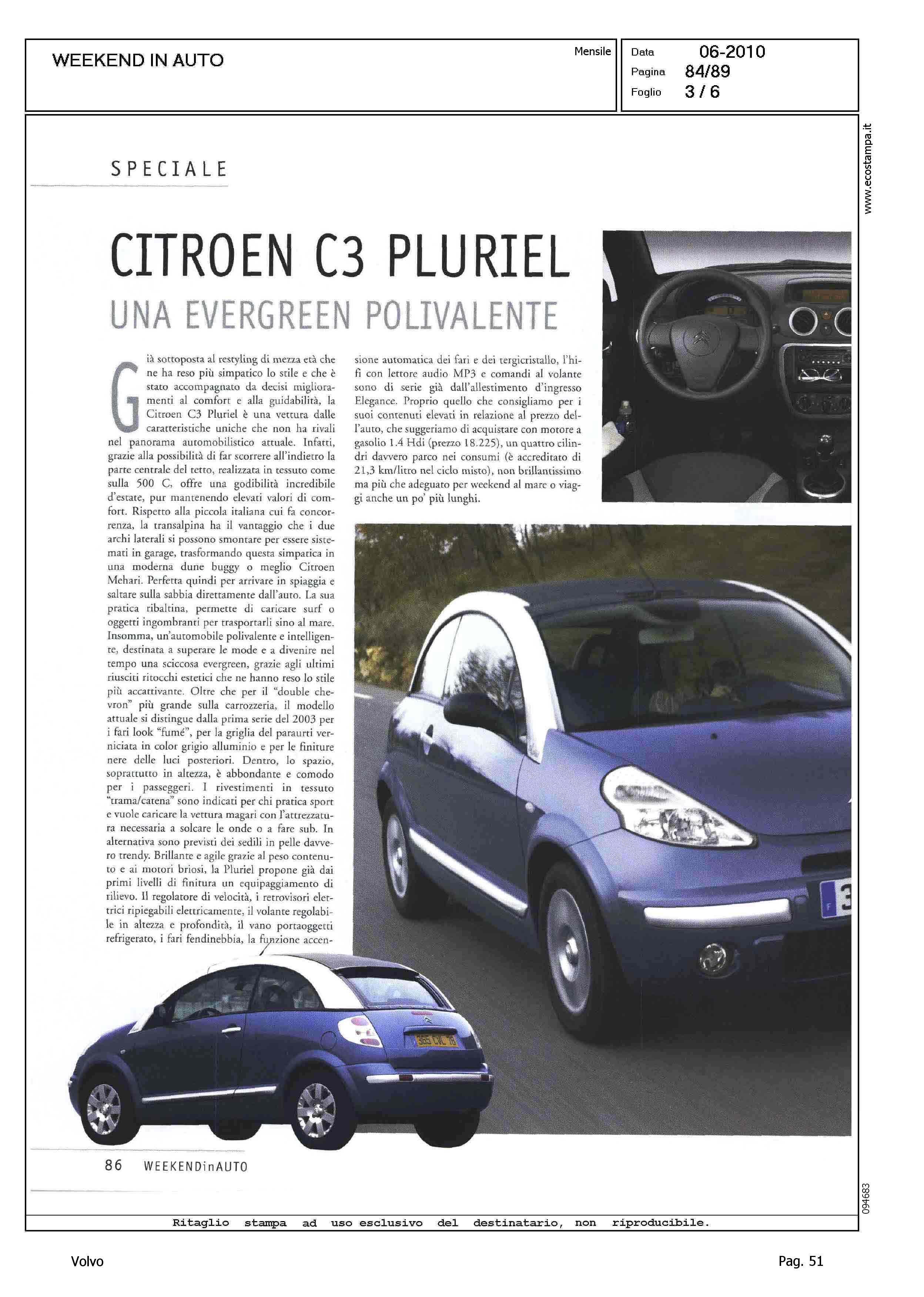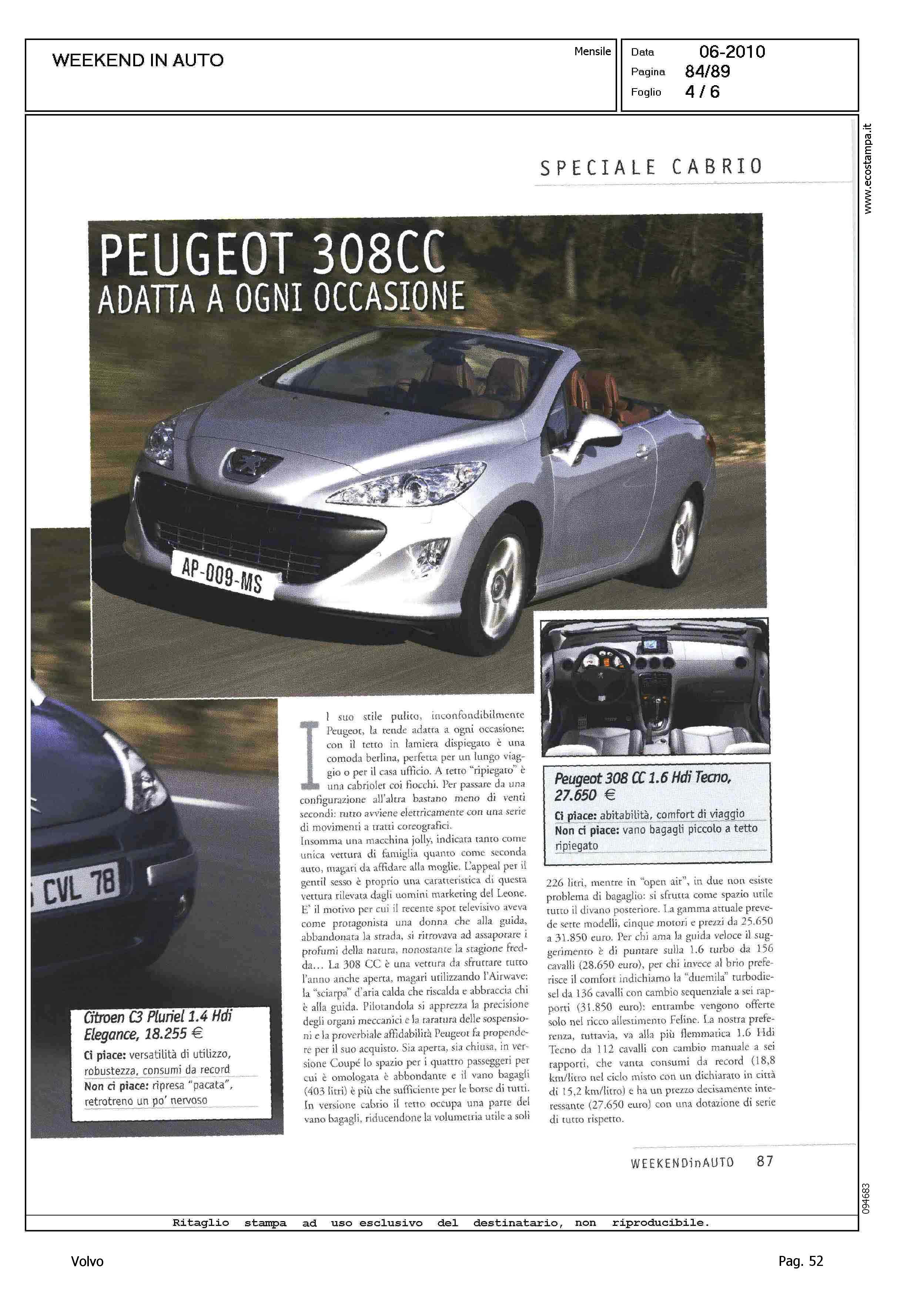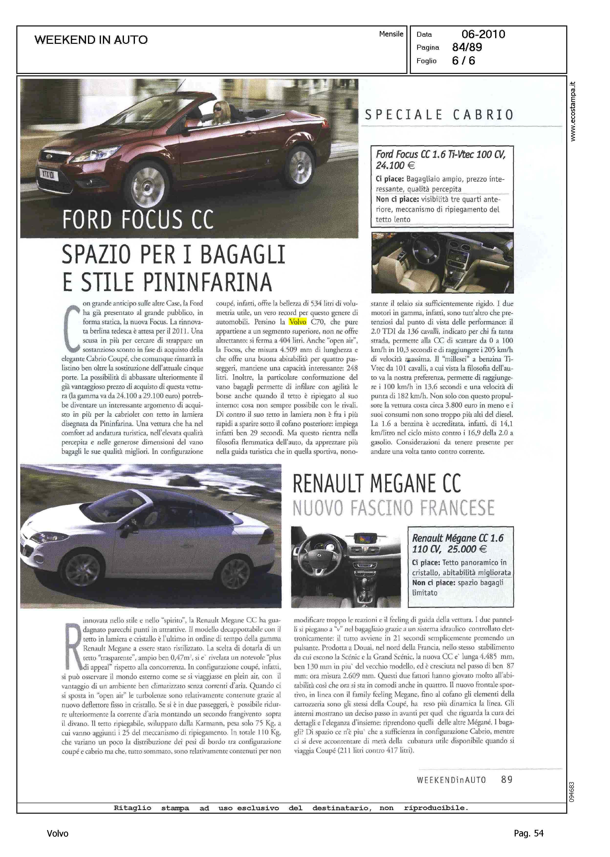 Highlight: CITAZIONE VOLVO C70 CONVERTIBLE IN SCHEDA FORD FOCUS CC - BAGAGLIAIO VOLVO CUBATURA INFERIORE