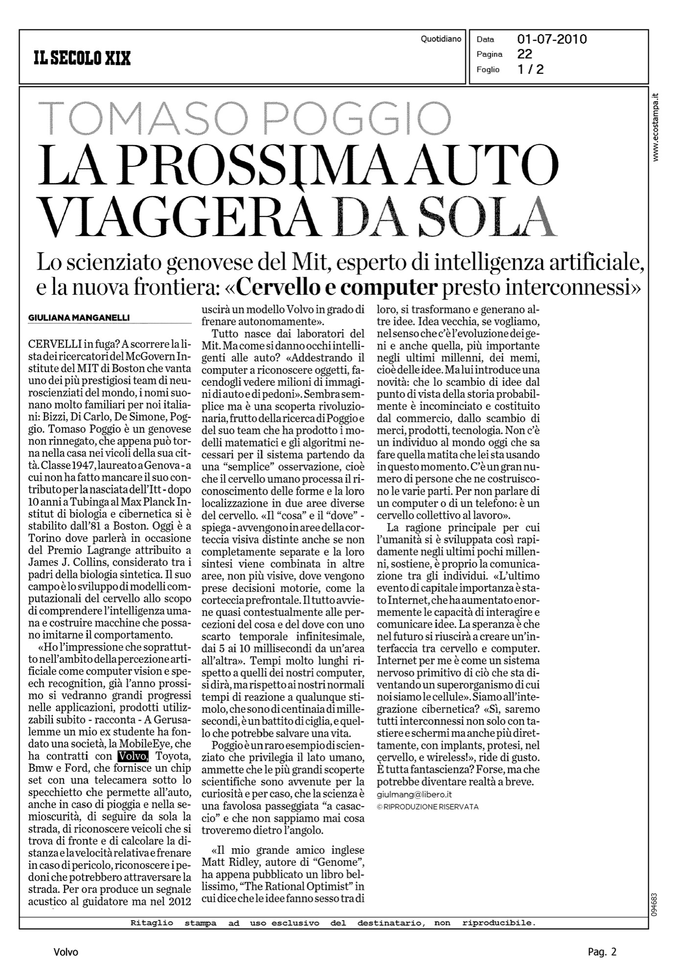 Author: MANGANELLI, GIULIANALine: Corporate Model: Corporate Subject: - Title: TOMMASO POGGIO - LA PROSSIMA AUTO VIAGGERA DA SOLAHighlight: CITAZIONE - INTERVISTA TOMMASO POGGIO, MIT - MOBILEYE - COSTRUTTORI AUTO