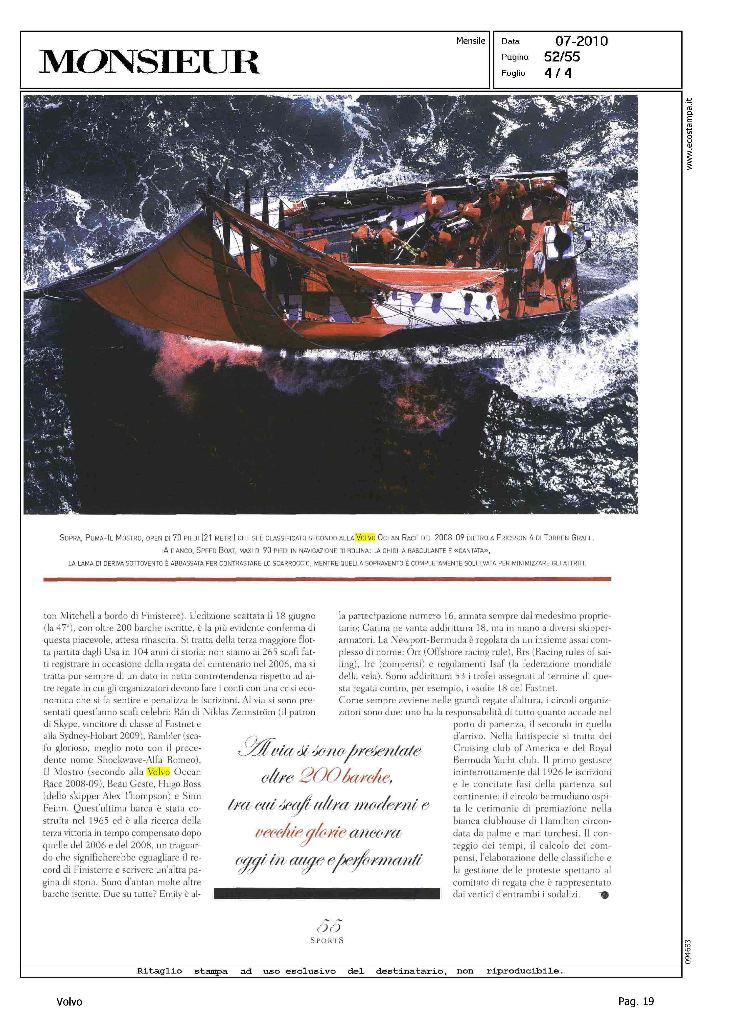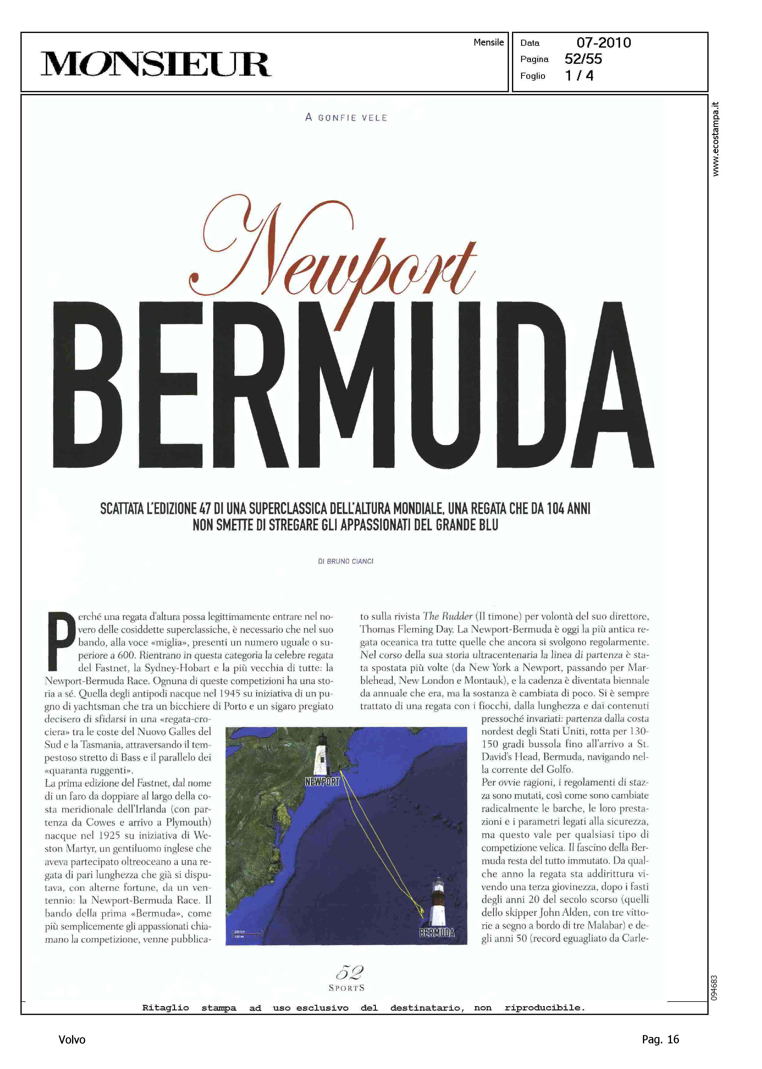 Author: CIANCI, BRUNOLine: Corporate Model: Corporate Subject: Volvo Ocean Race Title: NEWPORT BERMUDAHighlight: CITAZIONE - REGATA VOLVO OCEAN RACE 2008