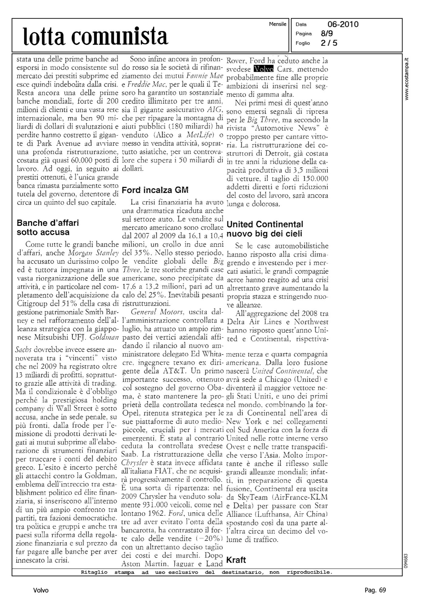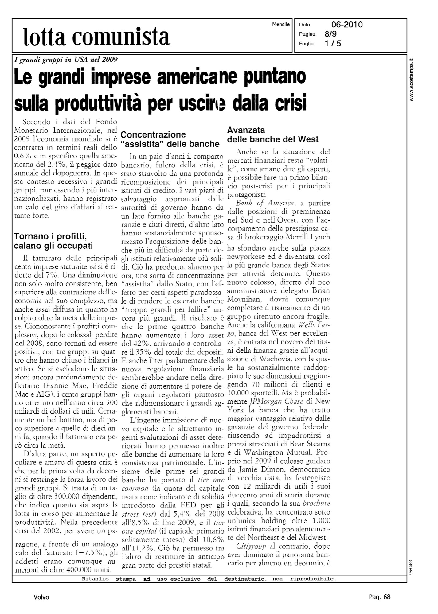Author: Line: Corporate Model: Corporate Subject: - Title: LE GRANDI IMPRESE AMERICANE PUNTANO SULLA PRODUTTIVITA' PER USCIRE DALLA CRISIHighlight: VENDITA VOLVO ALLA GEELY