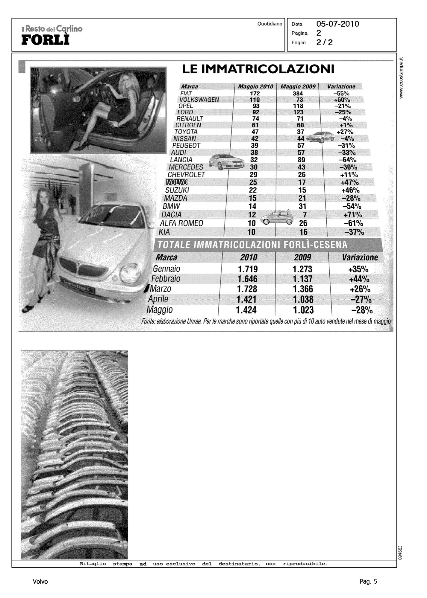Author: GAVELLI, FABIOLine: Corporate Model: Corporate Subject: - Title: IL MERCATO DELL'AUTO SCALA LE MARCEHighlight: (EDIZIONE FORLI') - MERCATO ITALIA, TABELLA, IMMATRICOLAZIONI MAGGIO